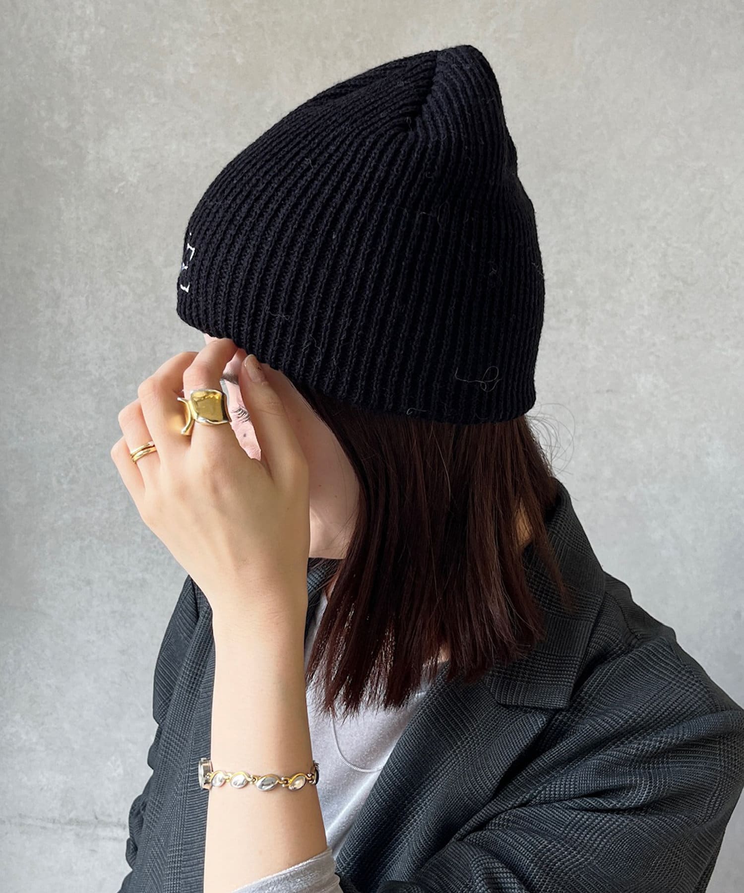 シンプルなスタイルにニット帽は、コーデを一気に垢抜けさせてくれるプラスワンアイテムに。