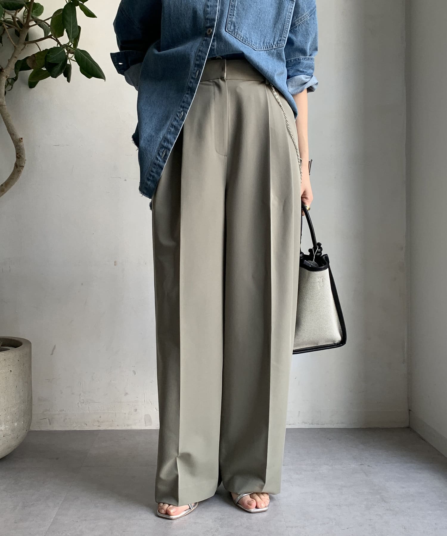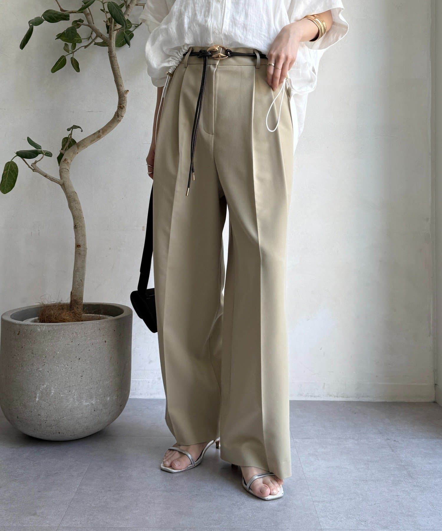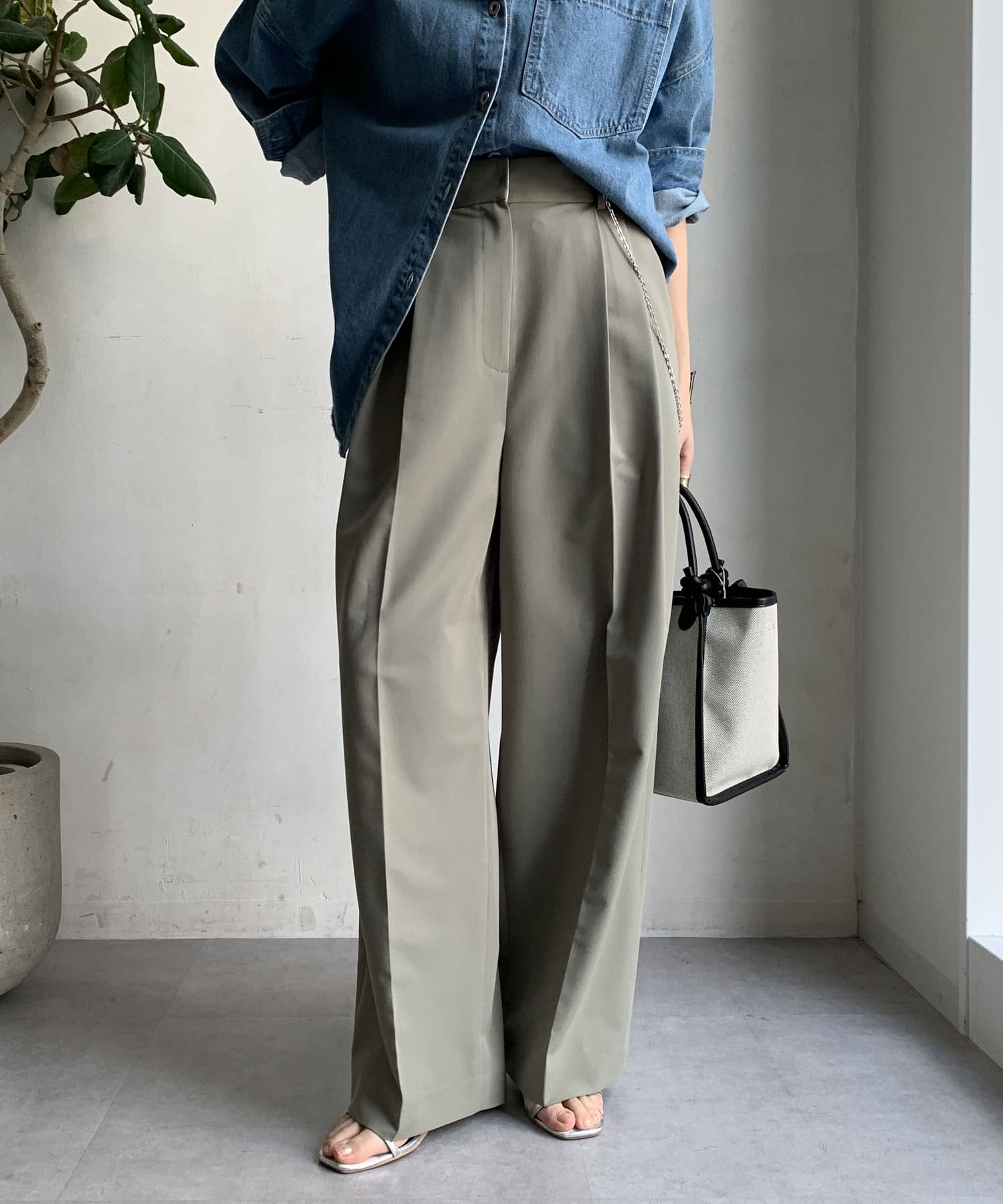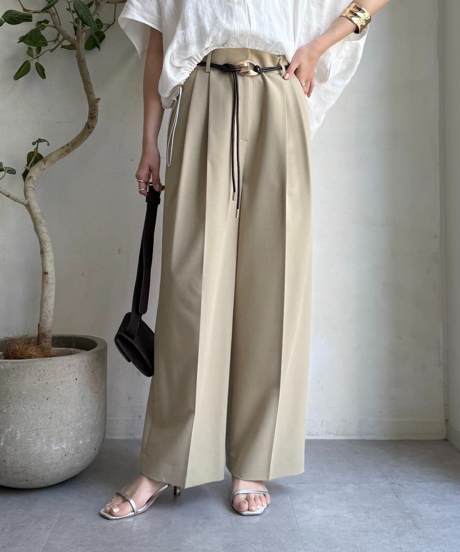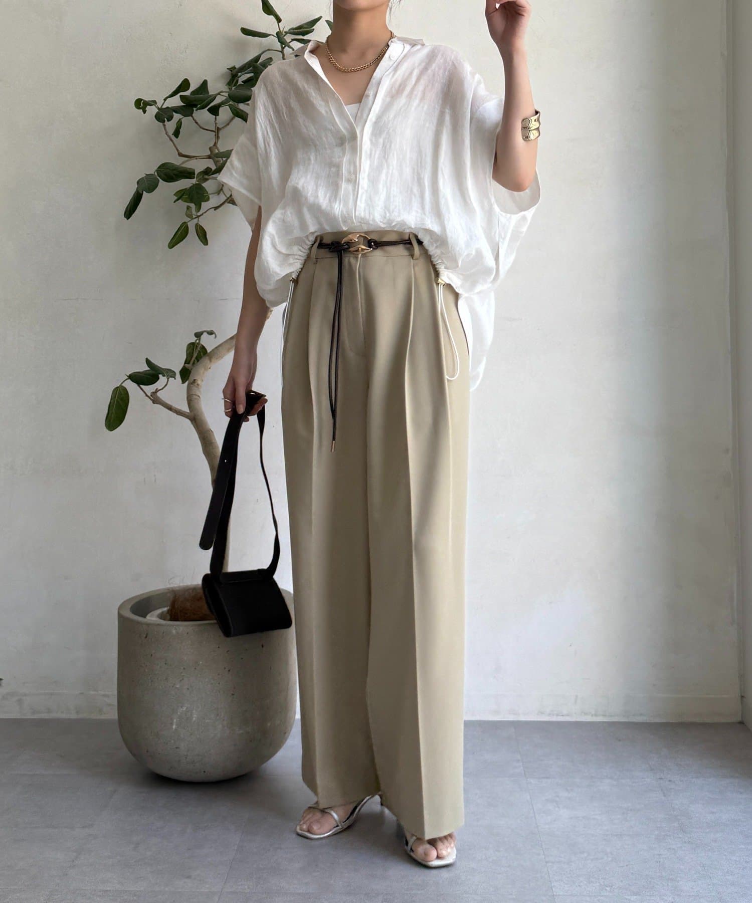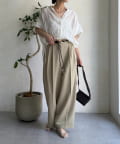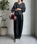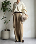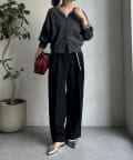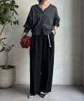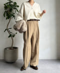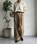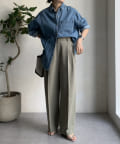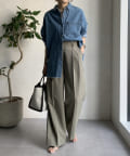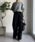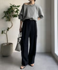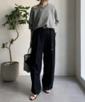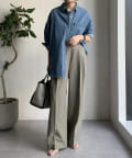 ゆるっとルーズなサイズ感でありながらも、センタープレスなどきちんと感のあるポイントを押さえることで、こなれ感のある印象に。