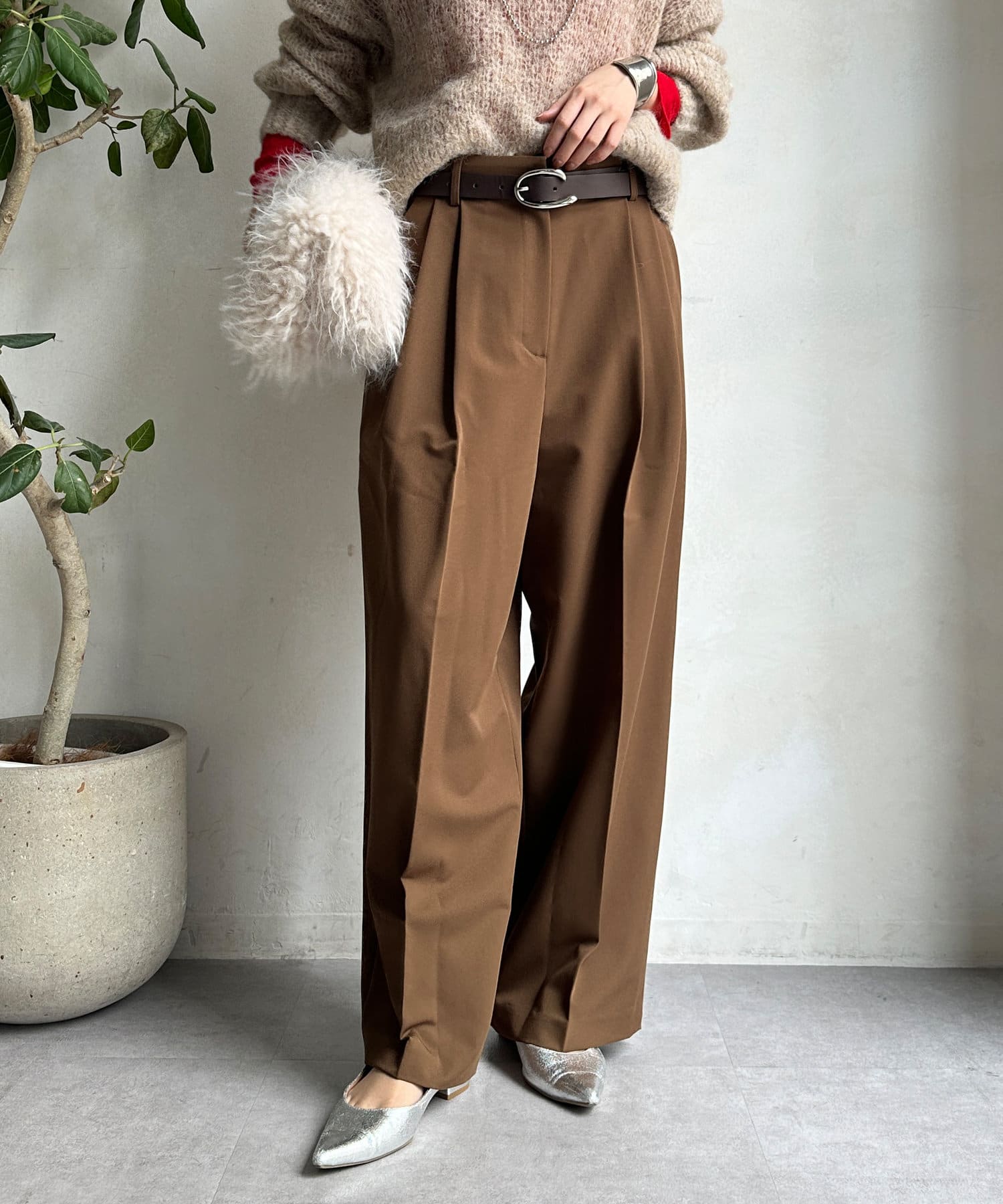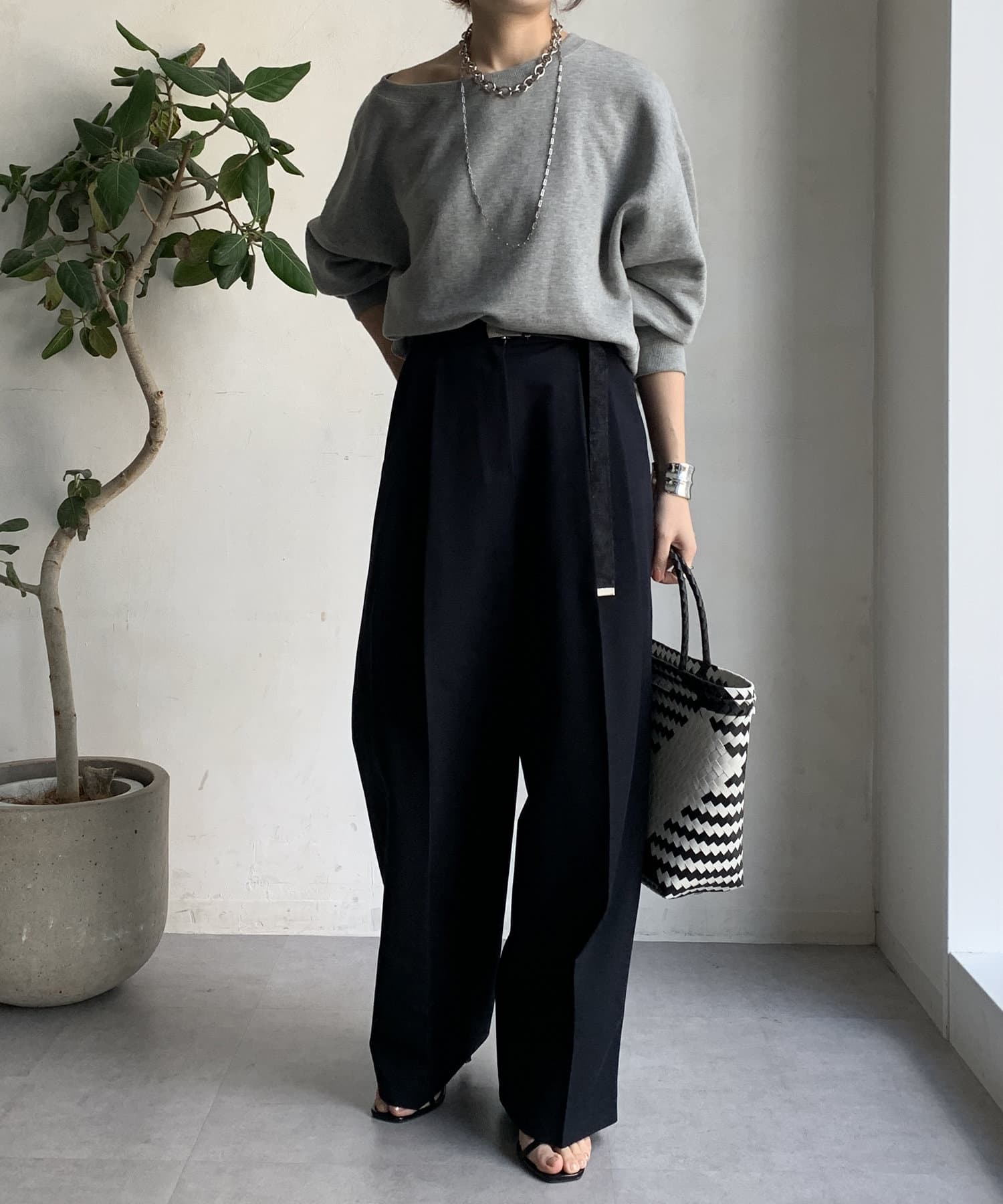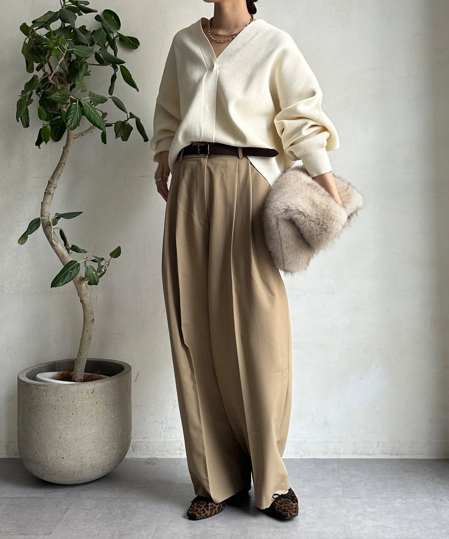 シンプルなトップスとスタイリングした際も、しっかりとおしゃれ見えしてくれるシルエットです。