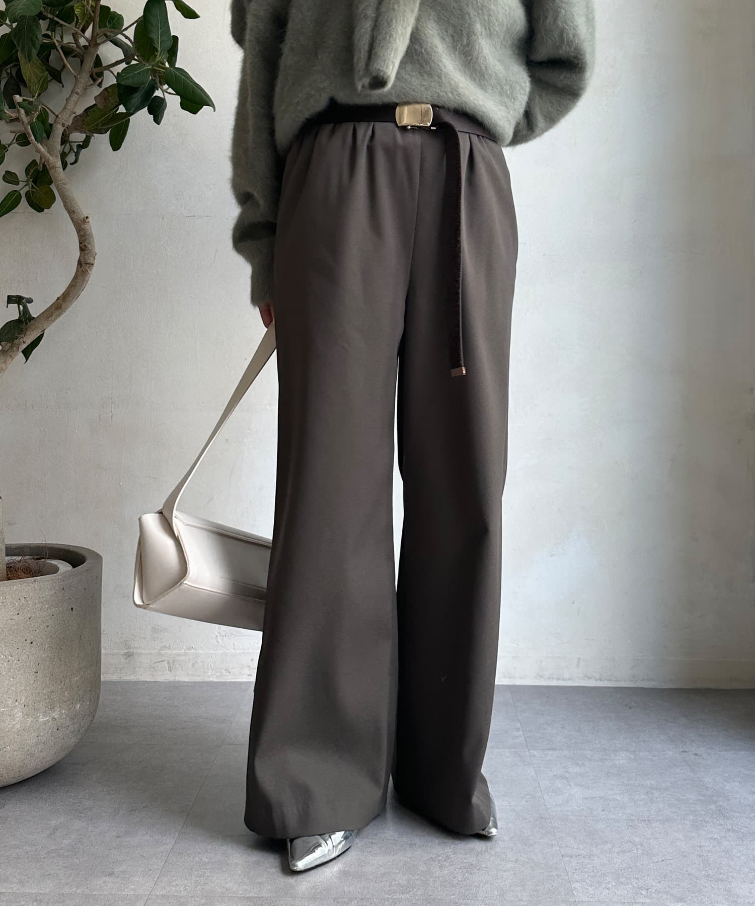 【脚長効果/あったか/イージー/キレイ見えの神パンツ!】裏起毛エラスティックパンツ