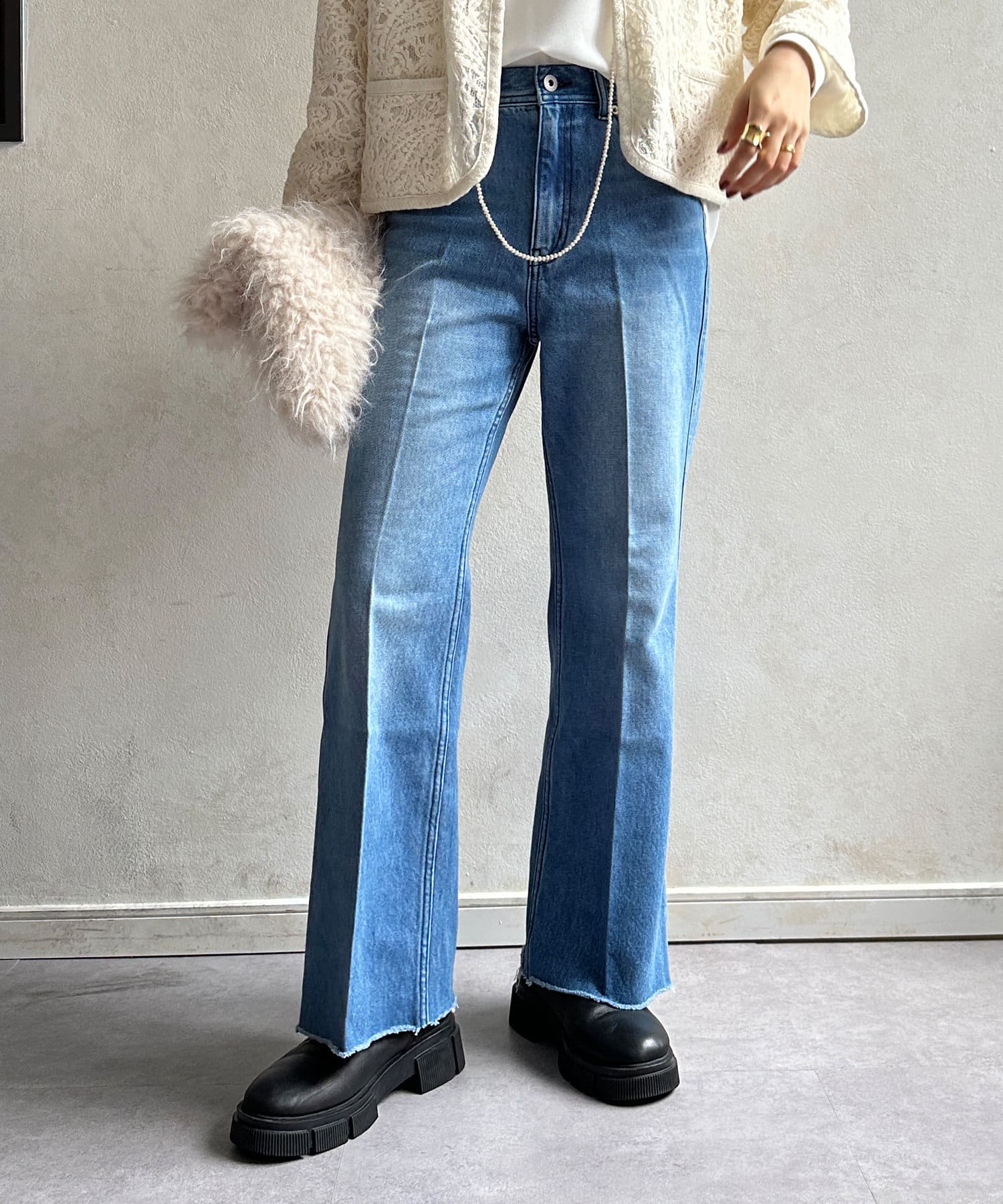 レディライク且つヘルシーに決まるセミフレアデニム