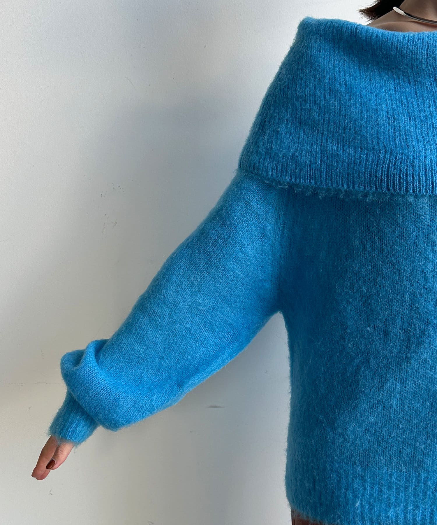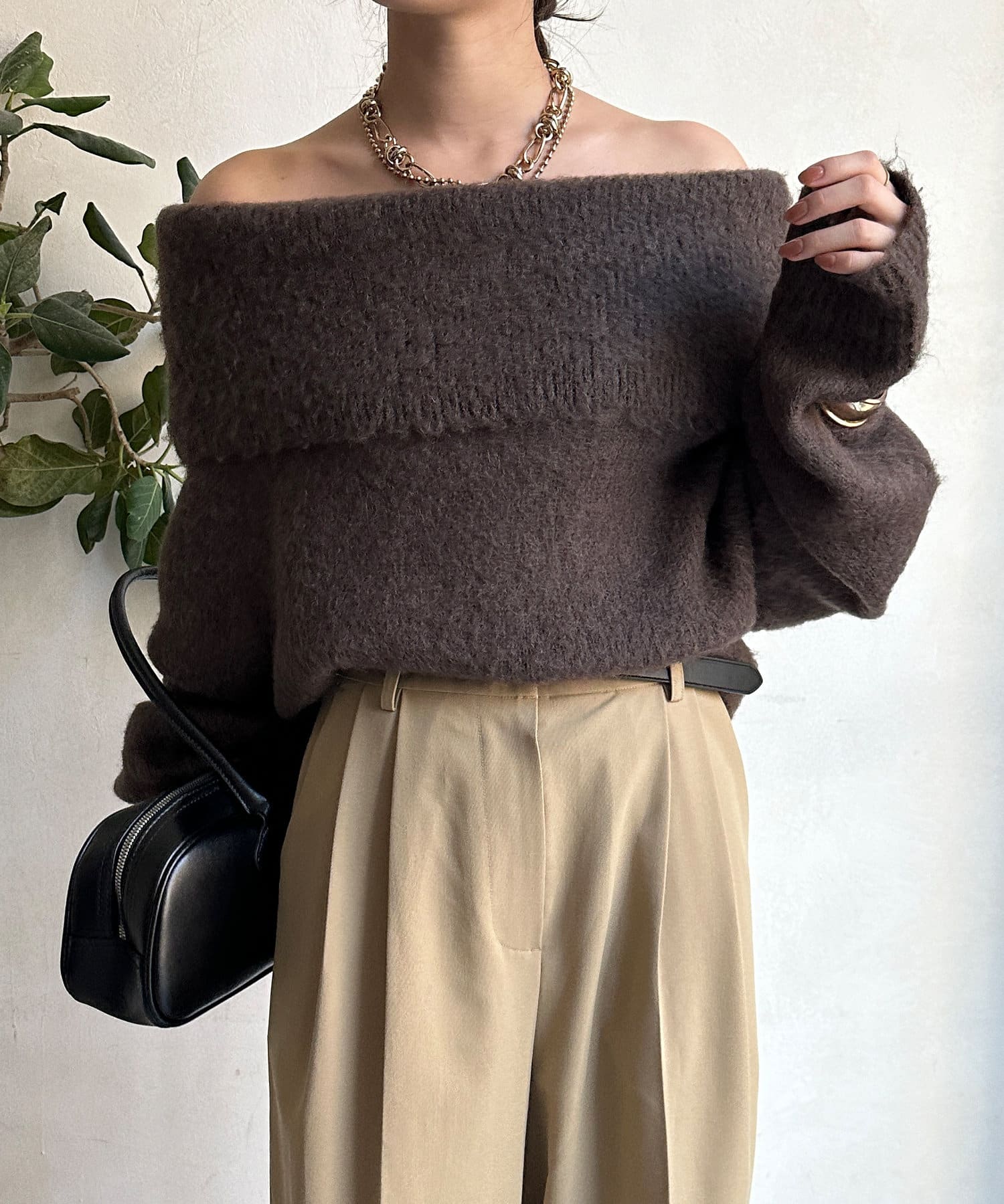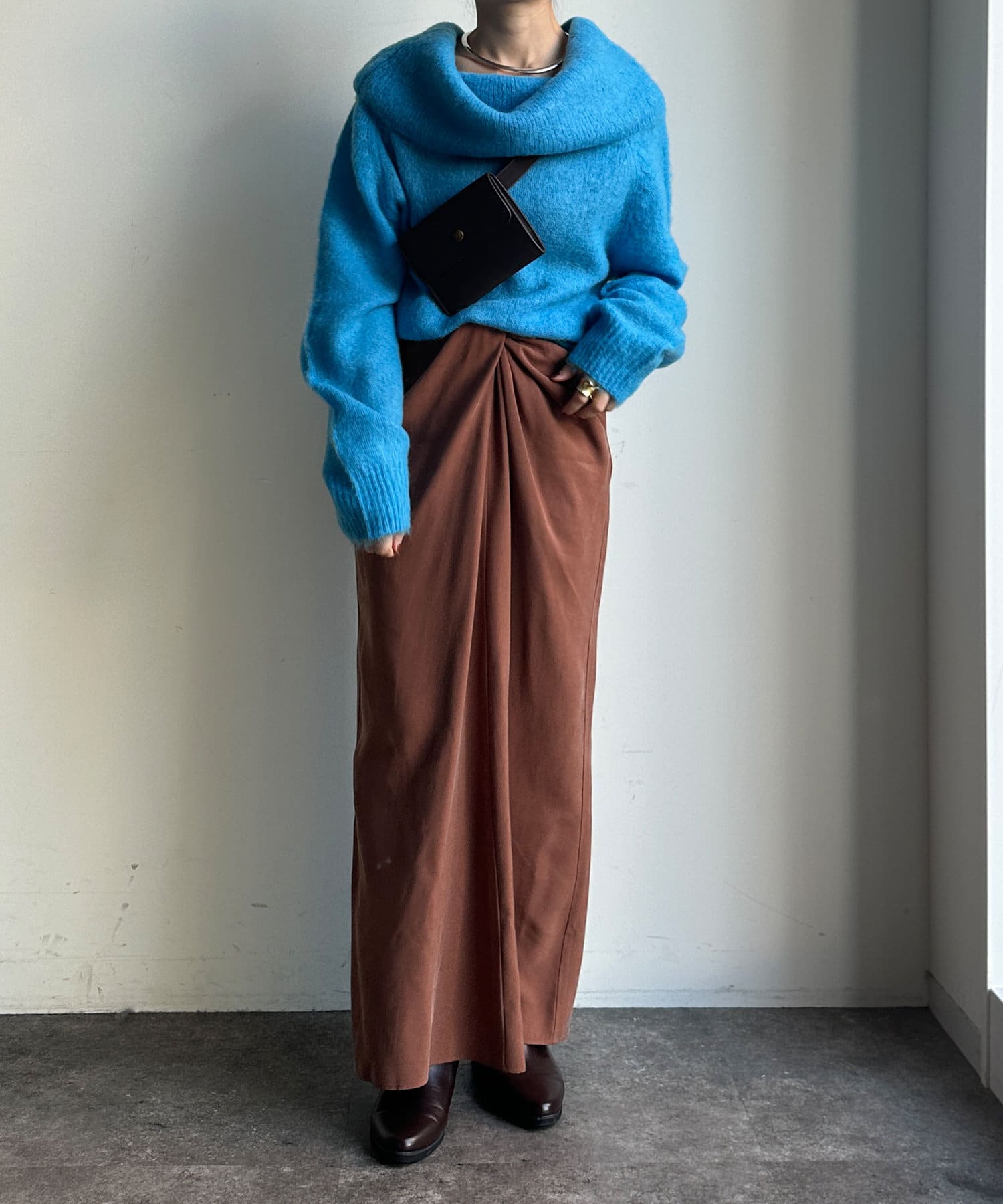 また、オフタートルとして着るとゆるっとお顔まわりに存在感をプラスしてくれるため、小顔効果も期待大。