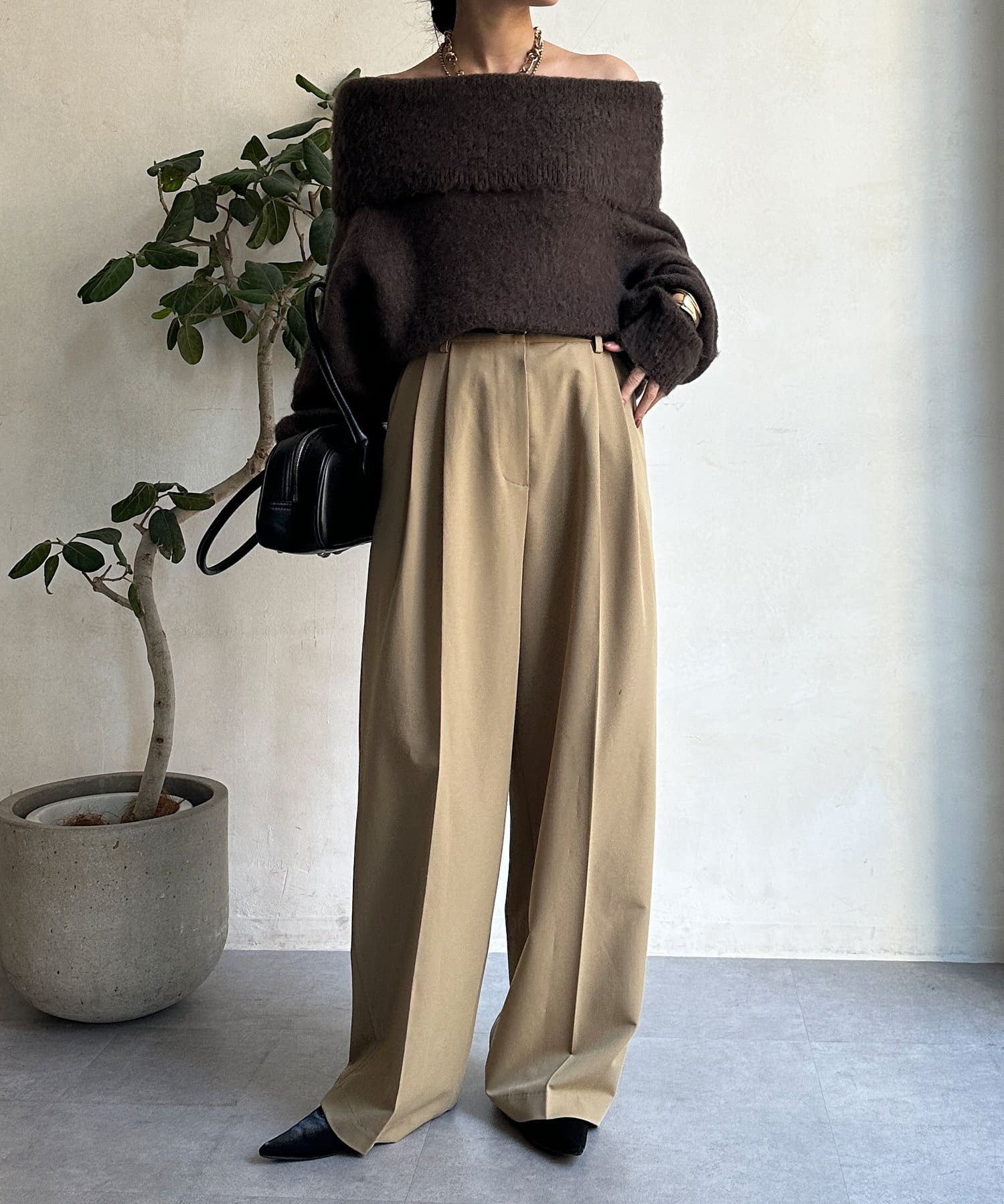 スカート合わせ・パンツ合わせどちらとも相性がよく、それぞれ印象を変えてくれるのもうれしいポイント。