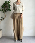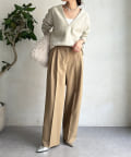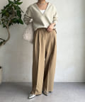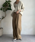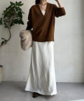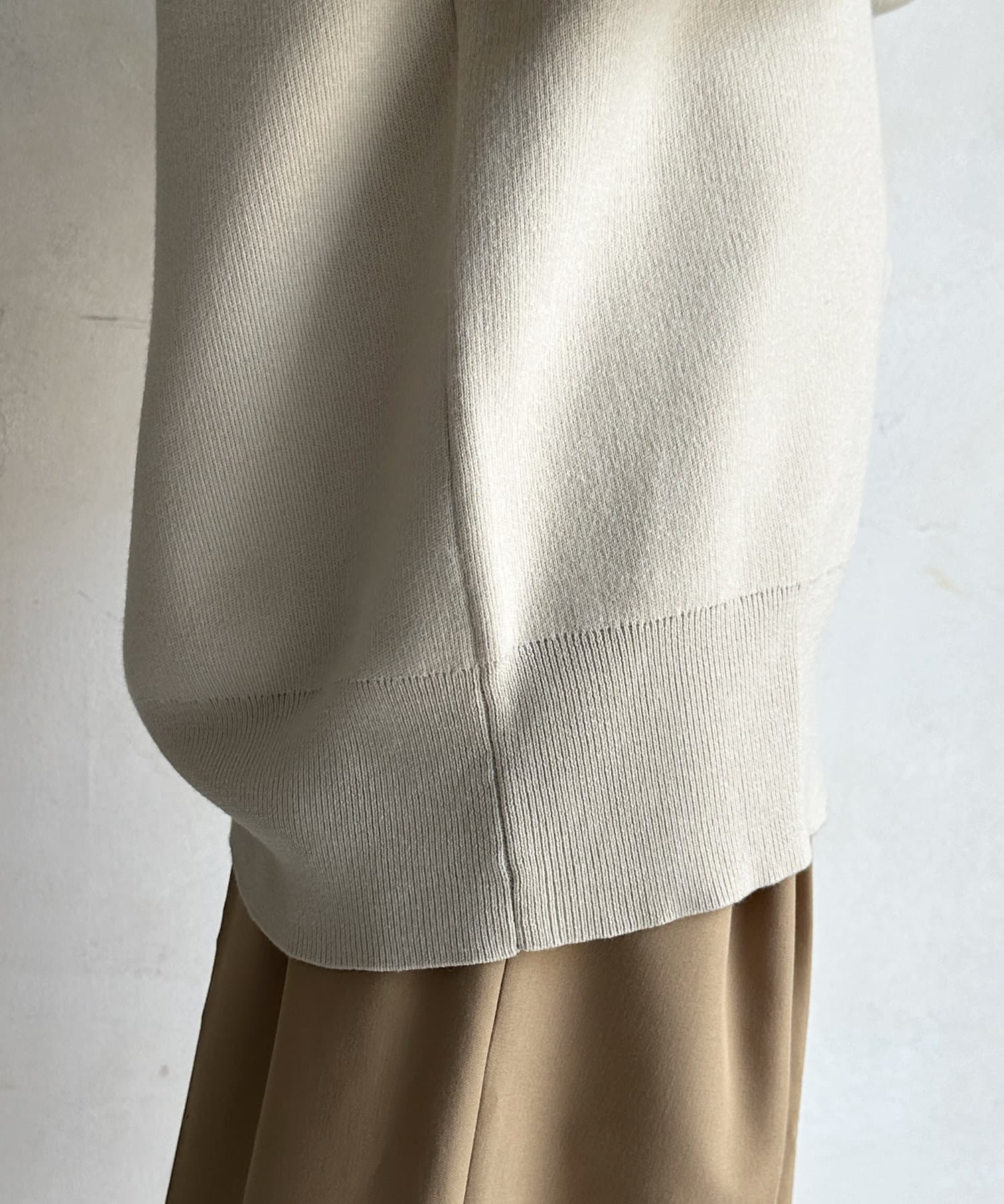 ネックラインは顔周りをすっきりと見せてくれるVネックデザインに仕上げ、シルエットはシンプルで着回しの効くデザインに落とし込みました。