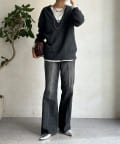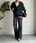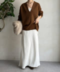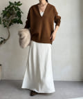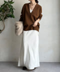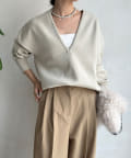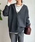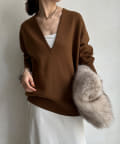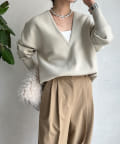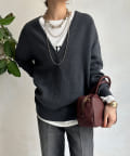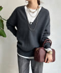 【Vネックで着瘦せ効果!】Vネックオーバーニット