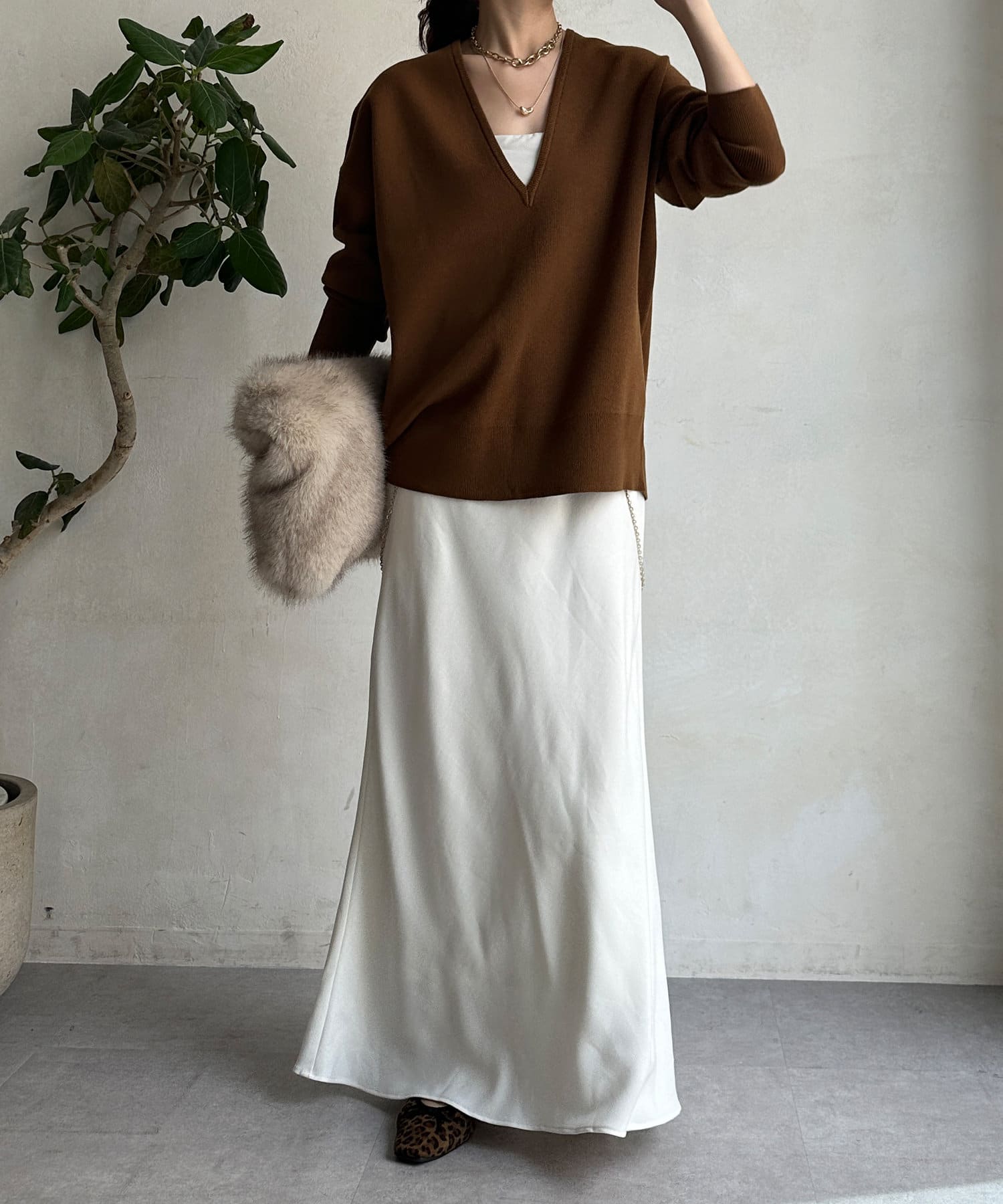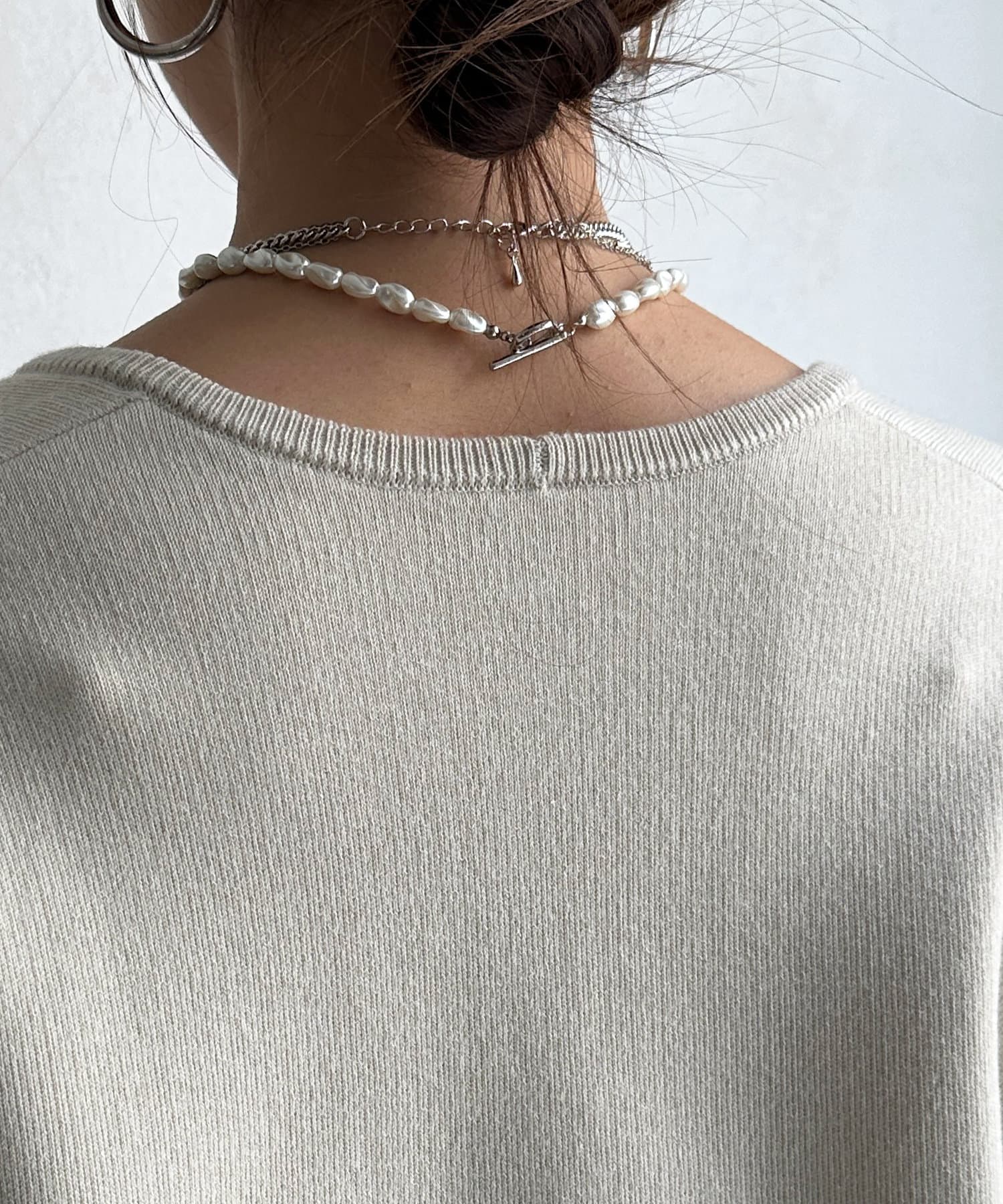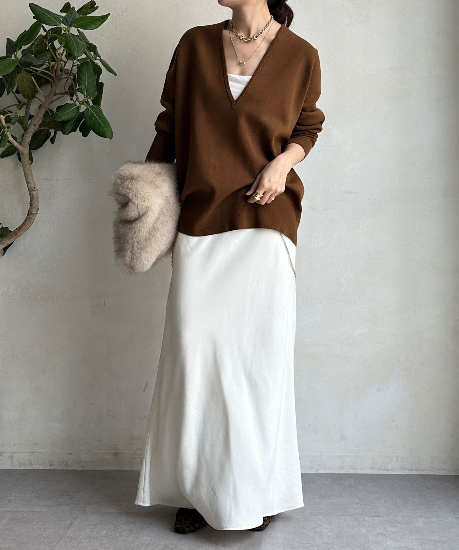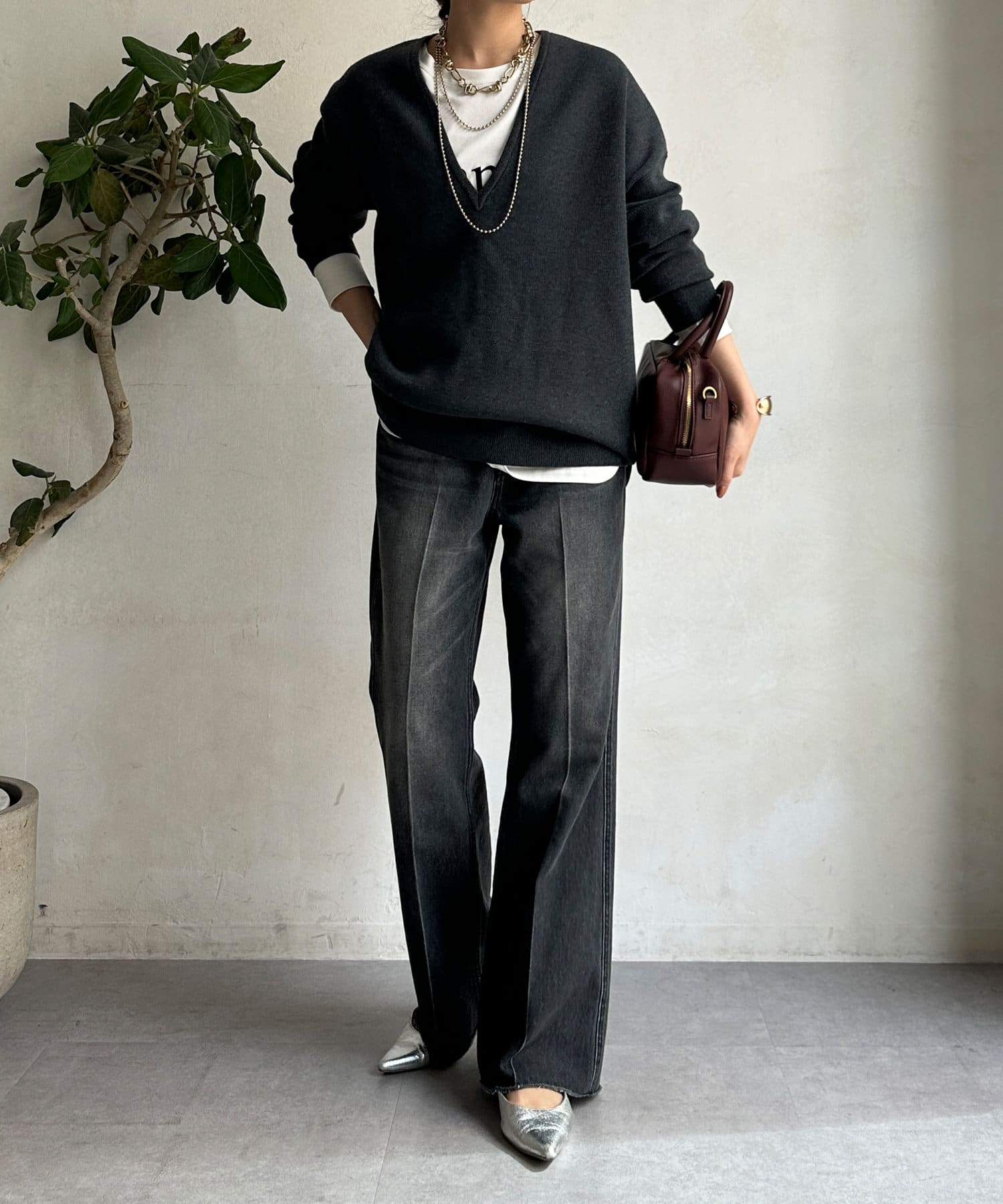 レイヤード映えする深Vネック。