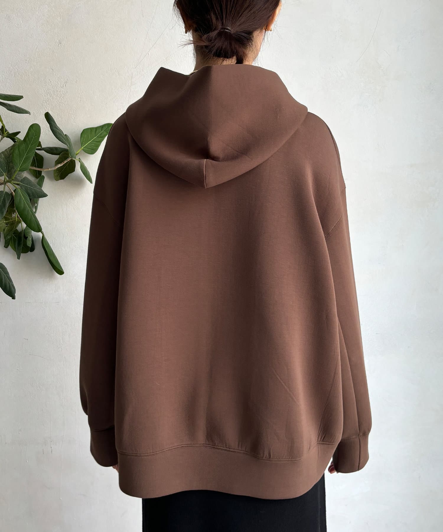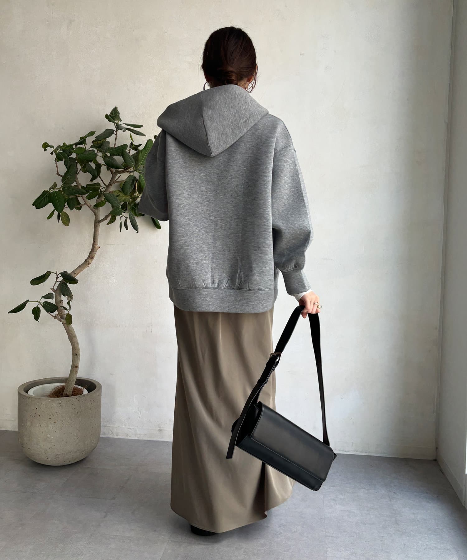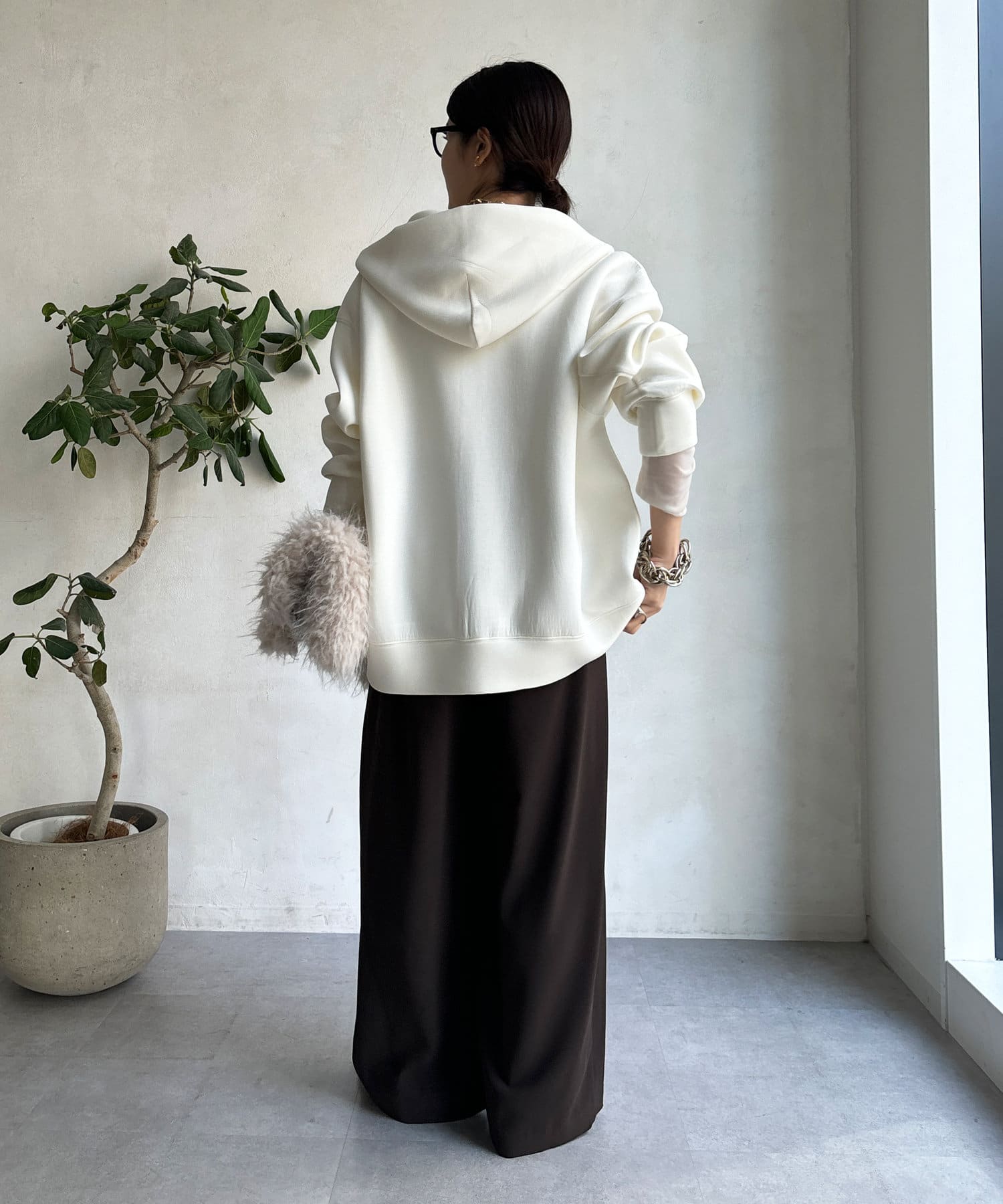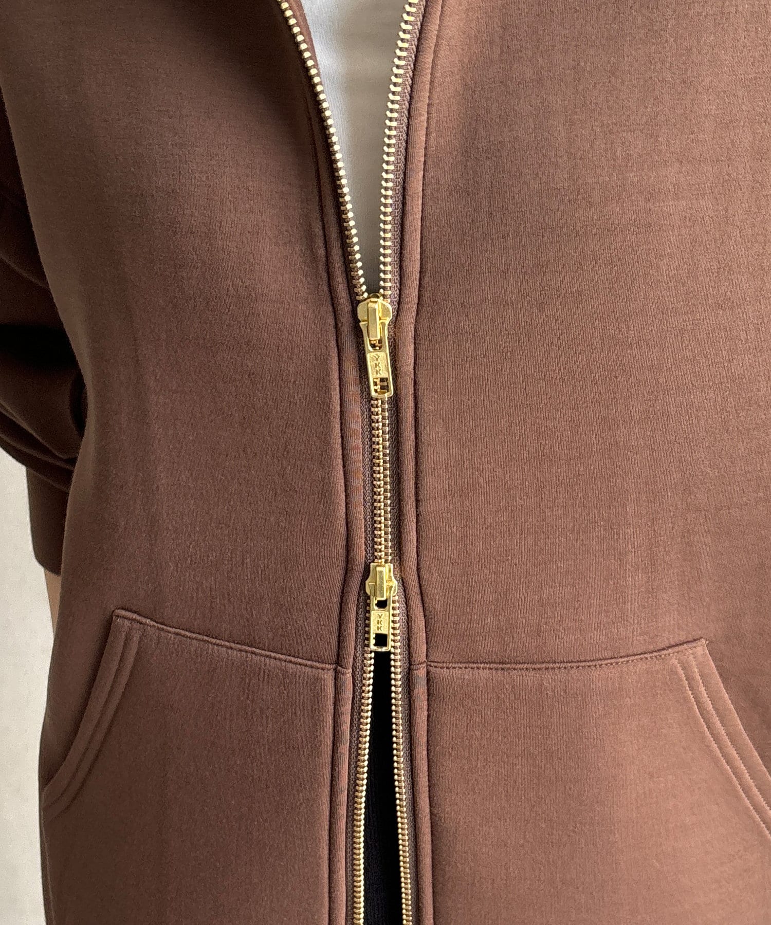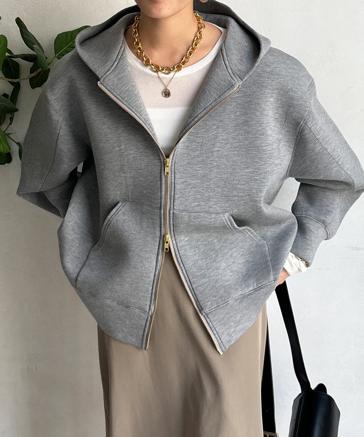 フラットな表面感でカジュアルになりすぎないジップアップパーカーが登場!