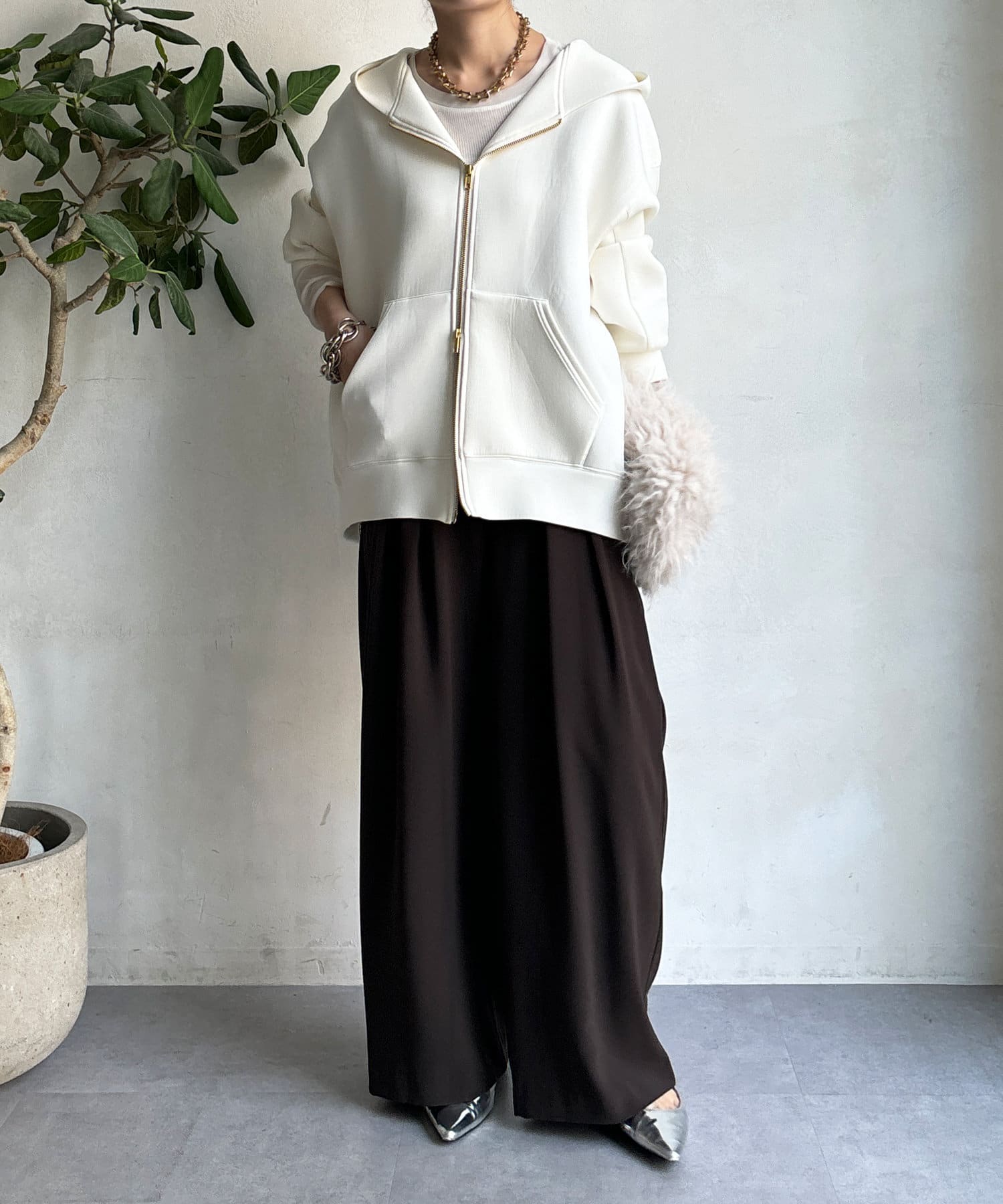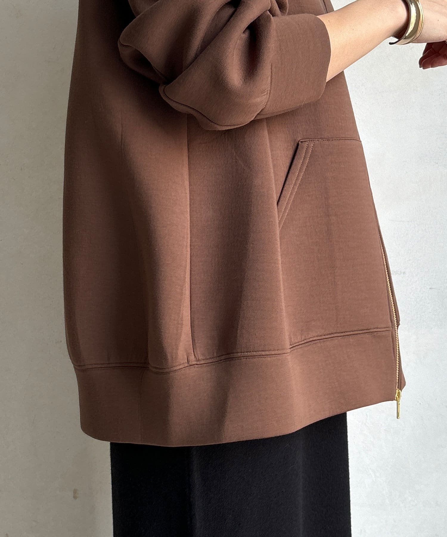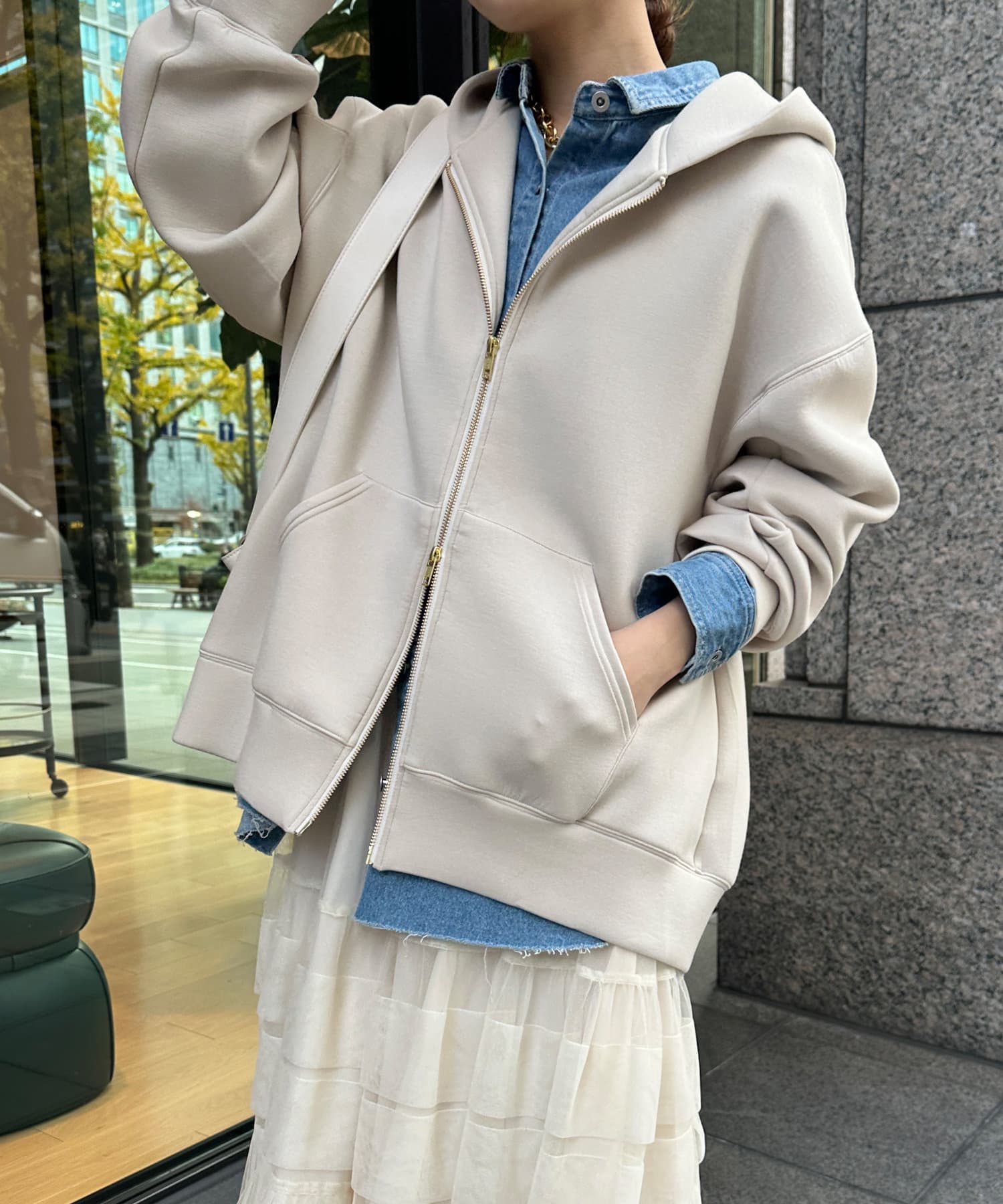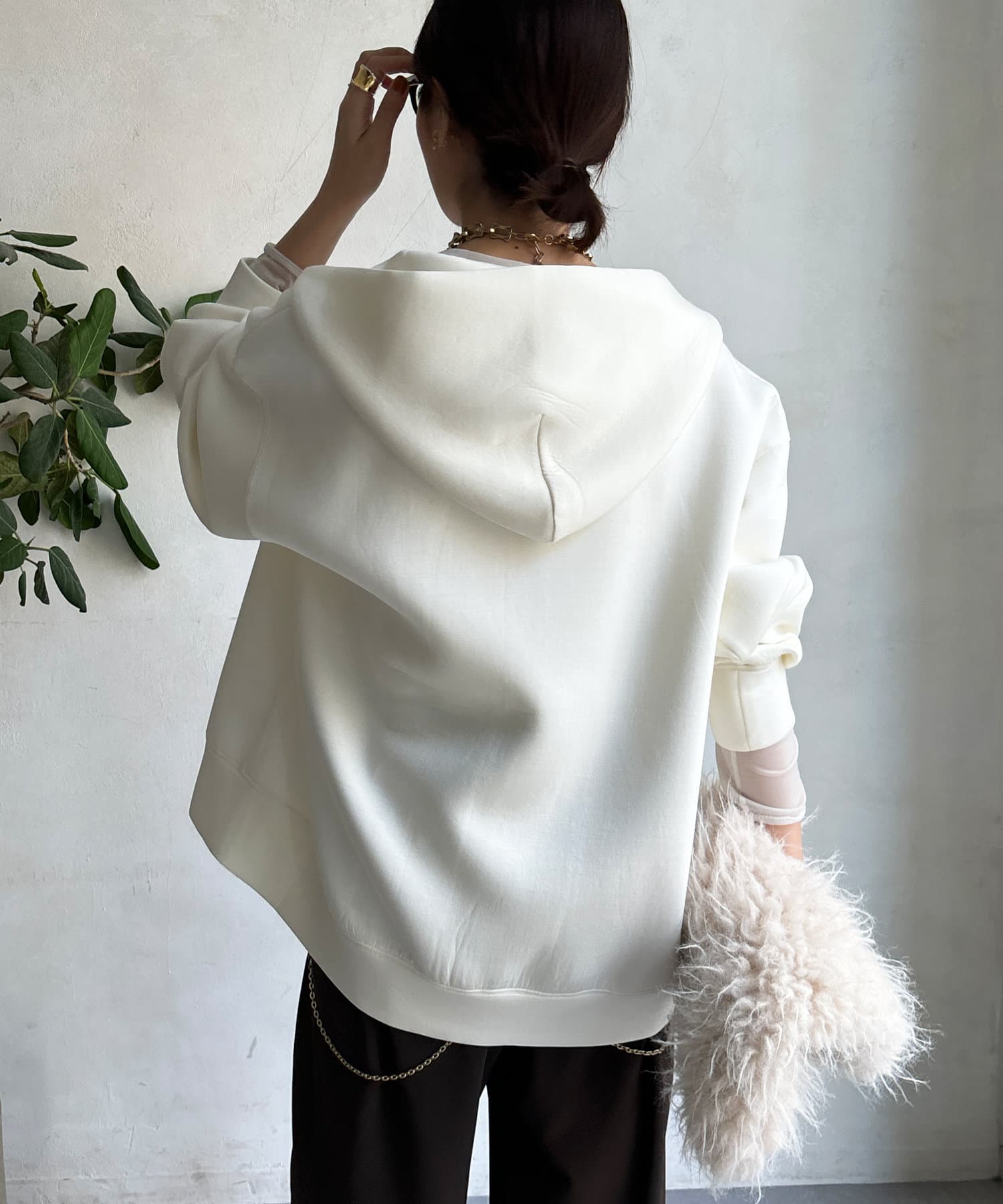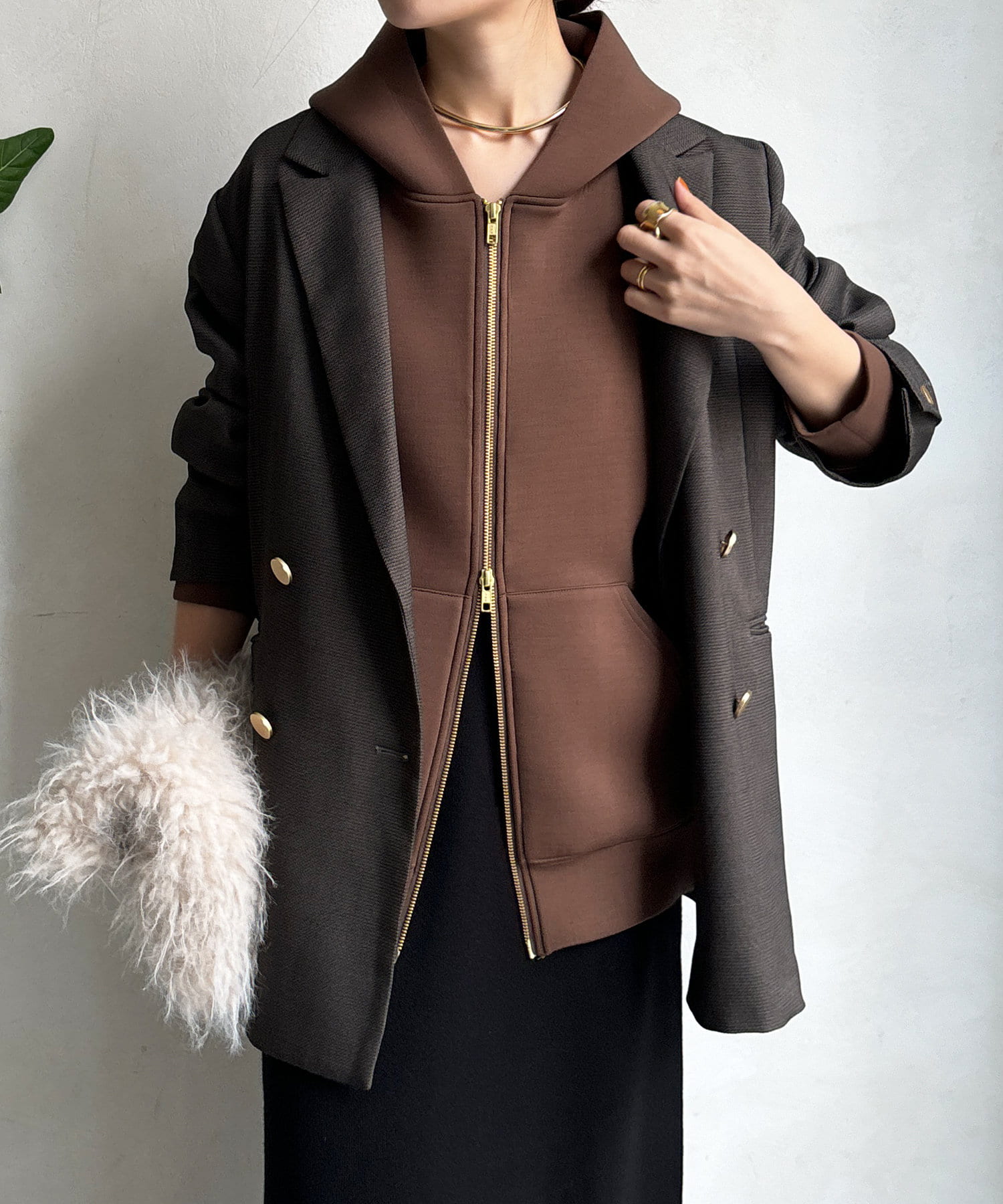 フラットな表面感でカジュアルになりすぎないジップアップパーカーが登場!