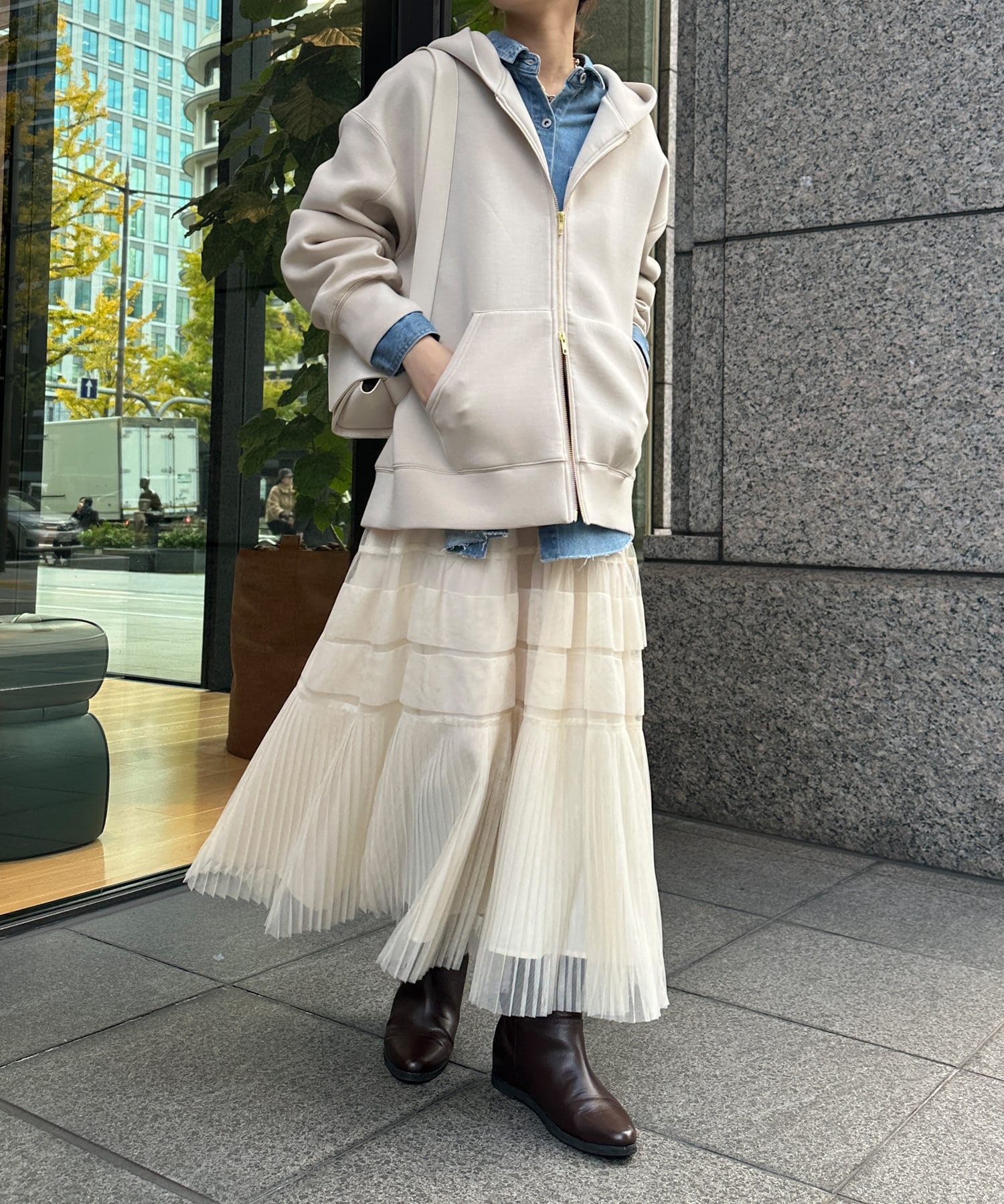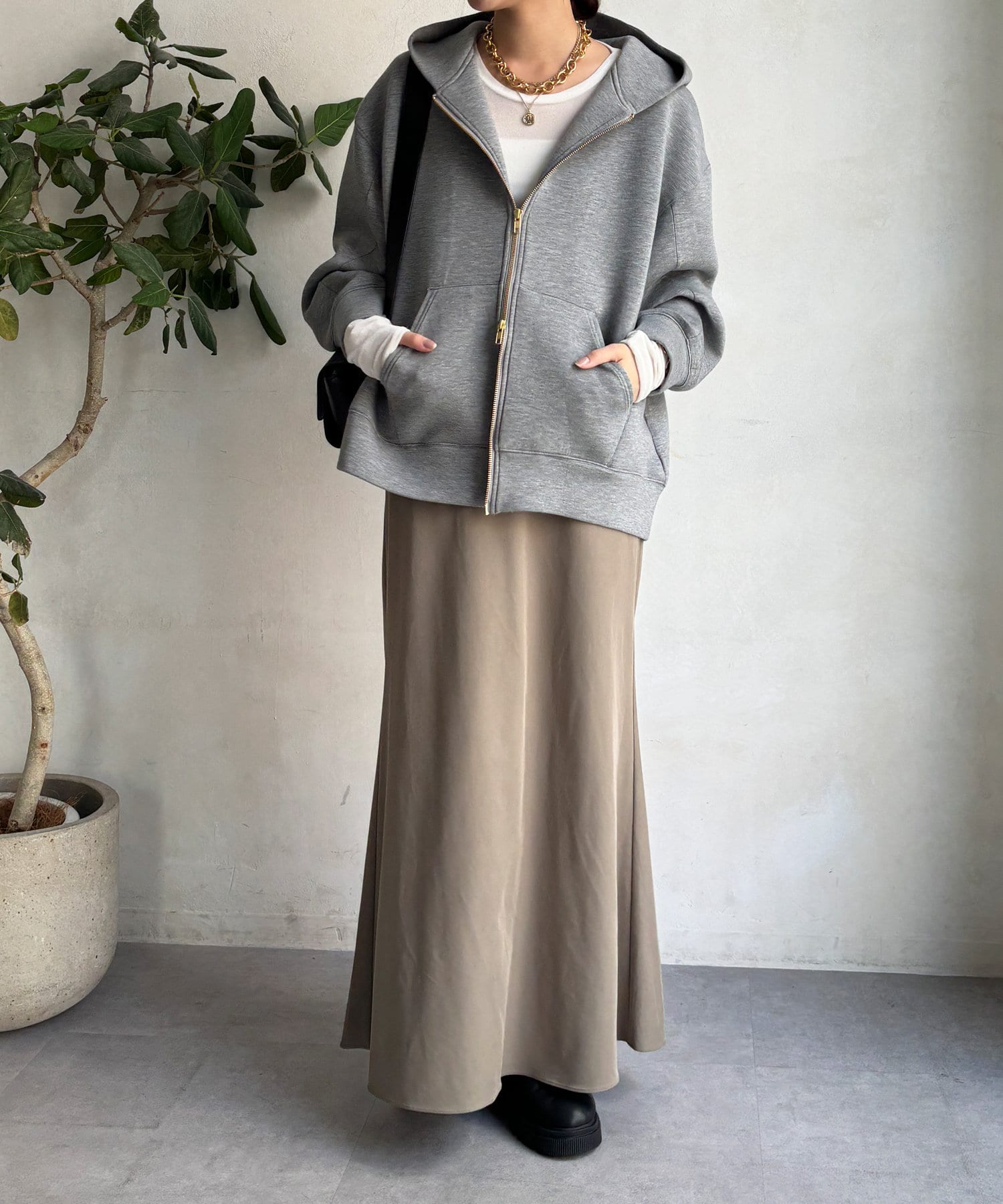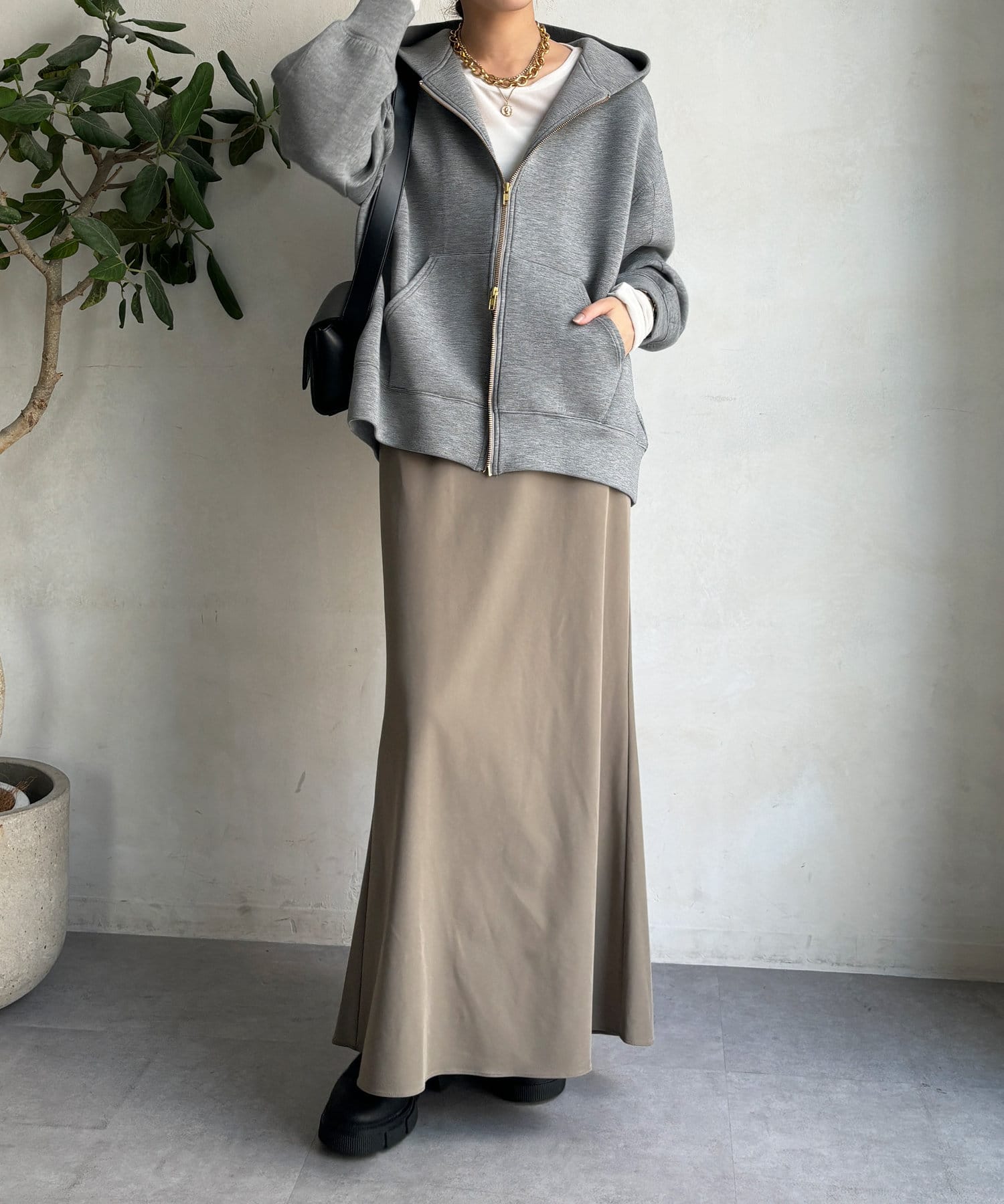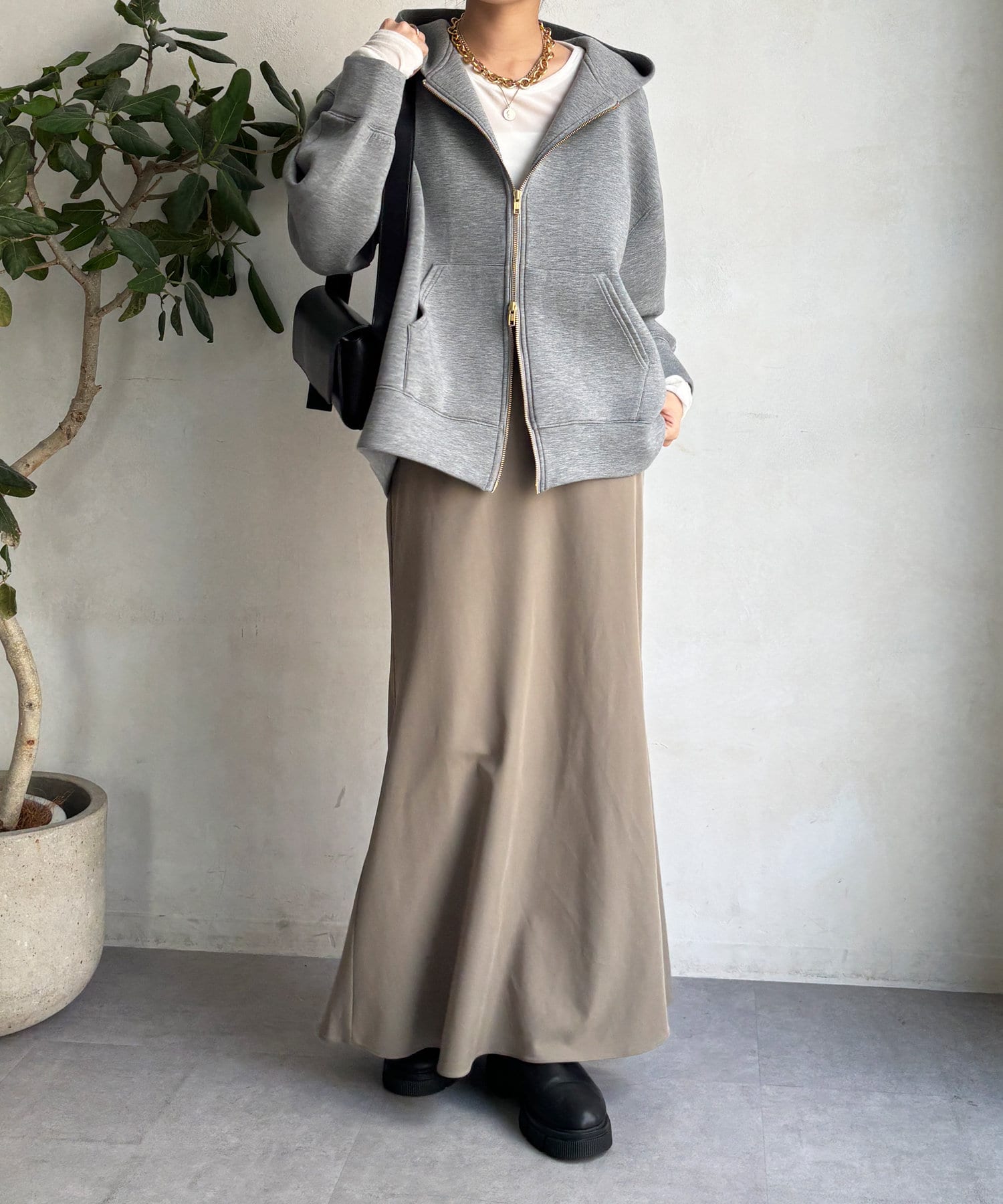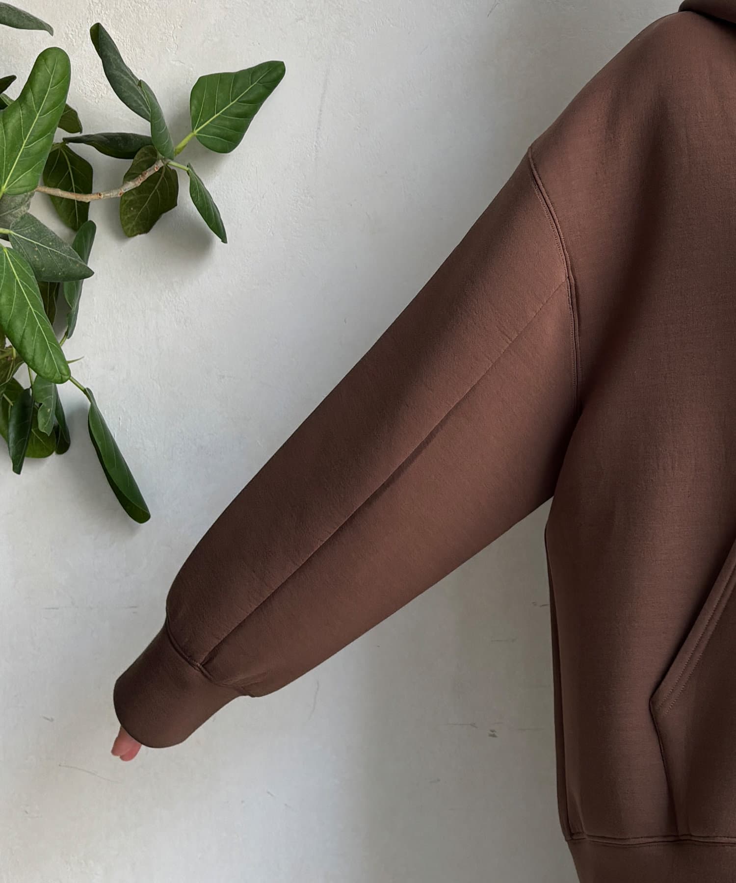 フラットな表面感でカジュアルになりすぎないジップアップパーカーが登場!