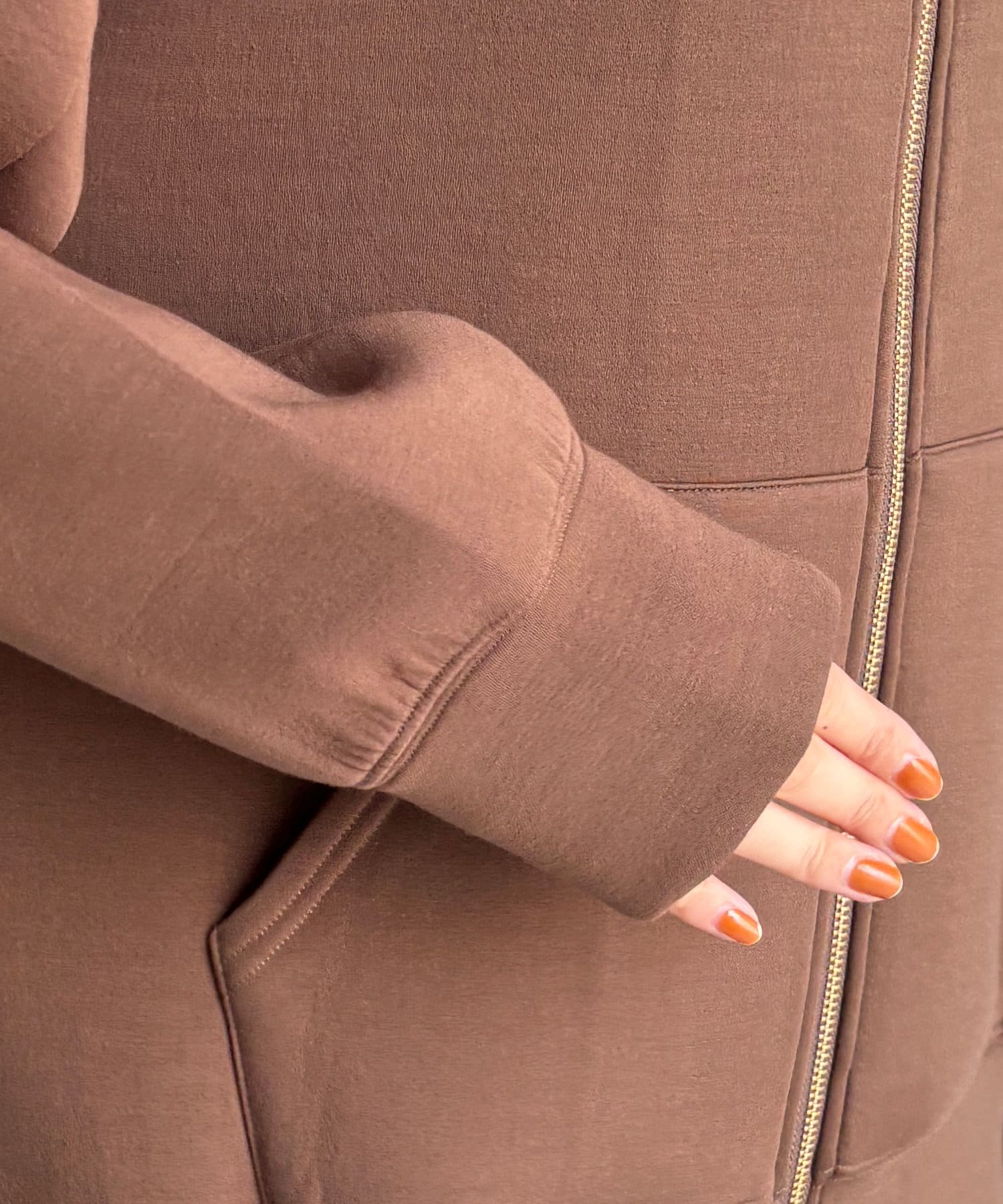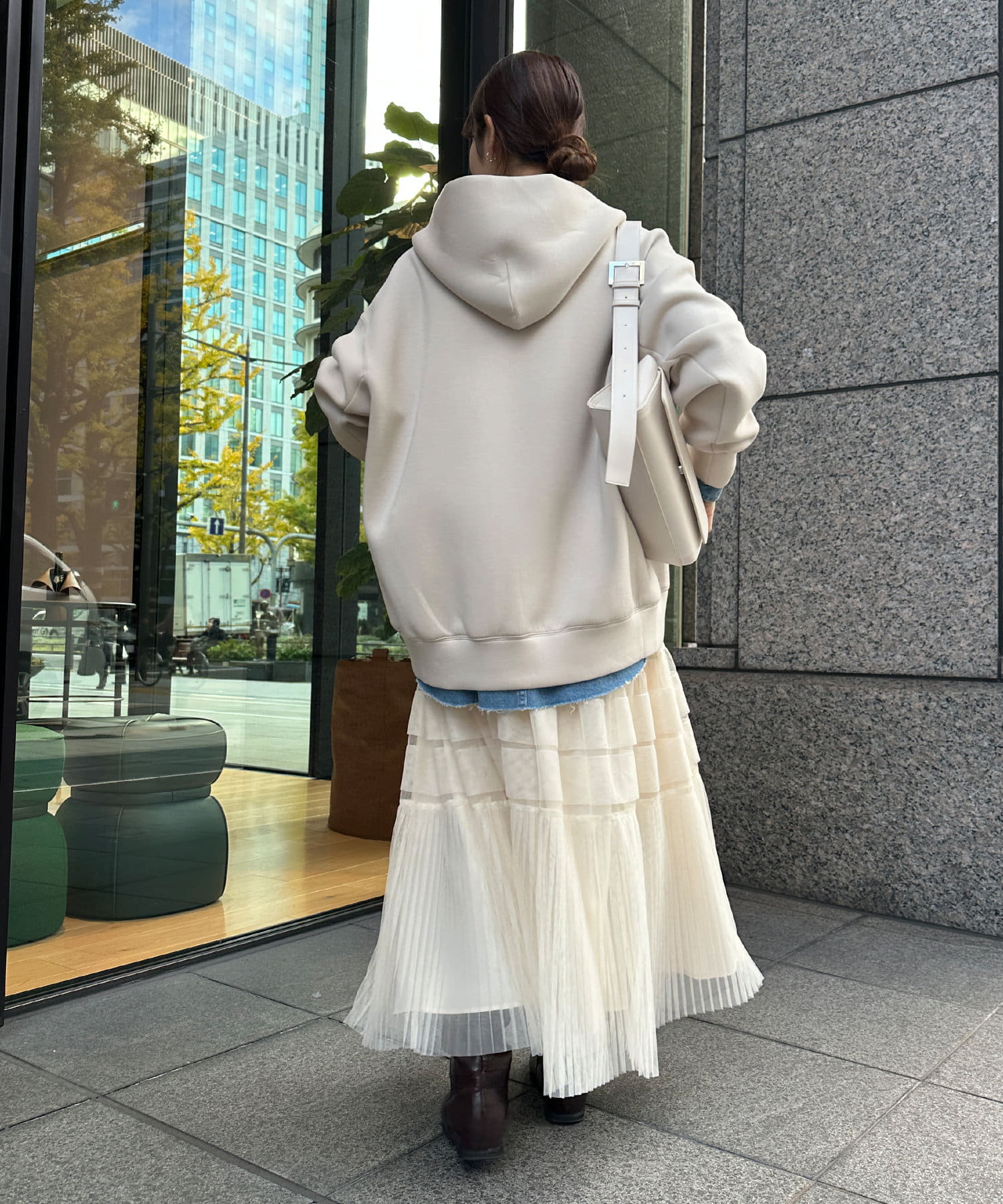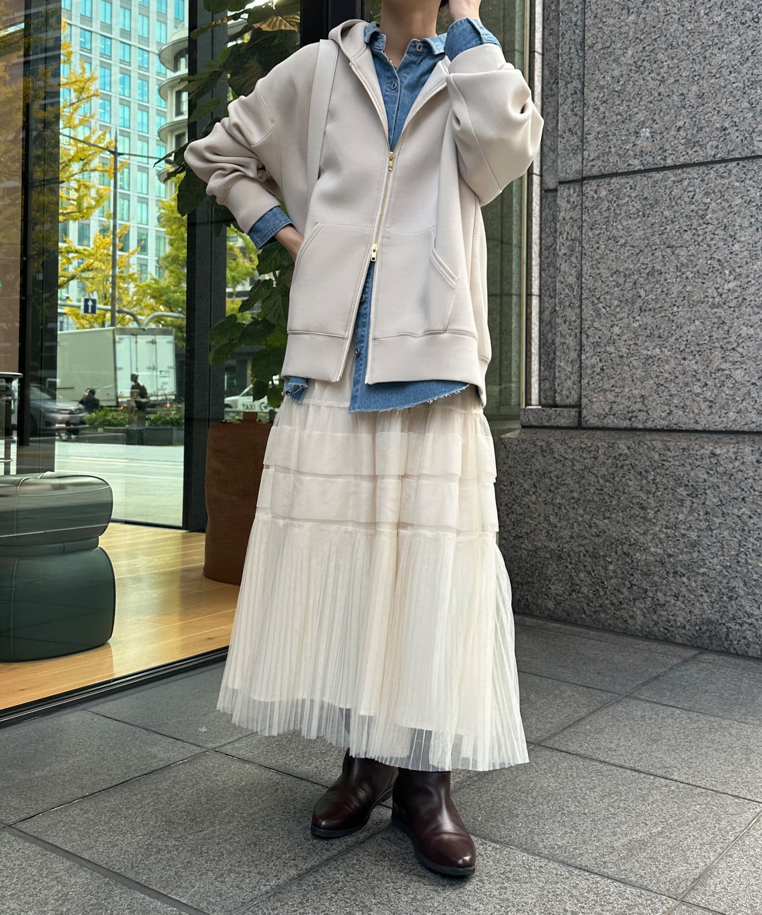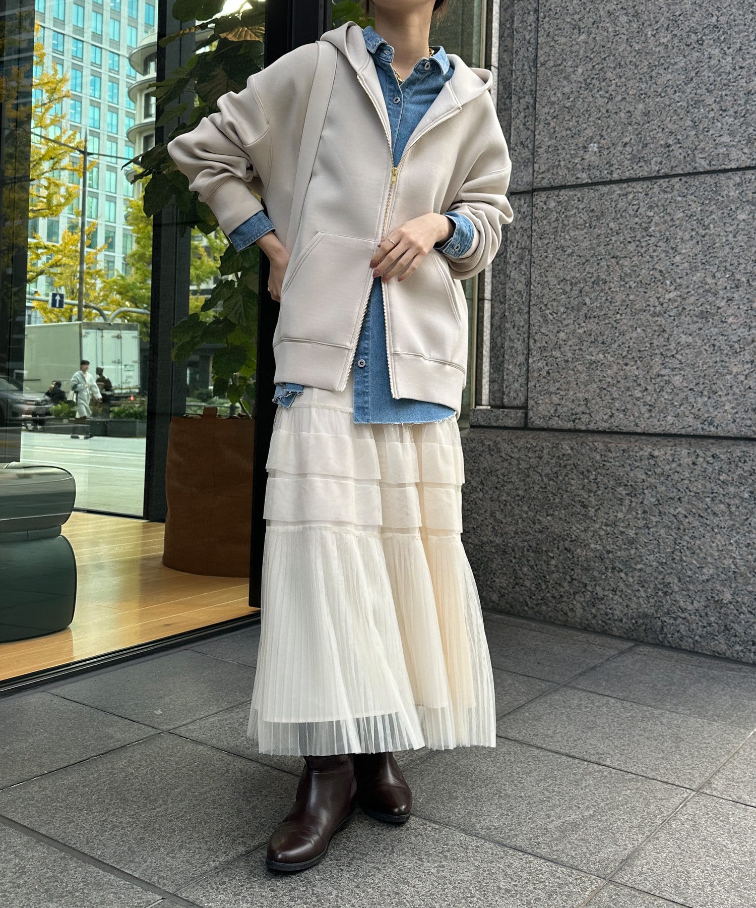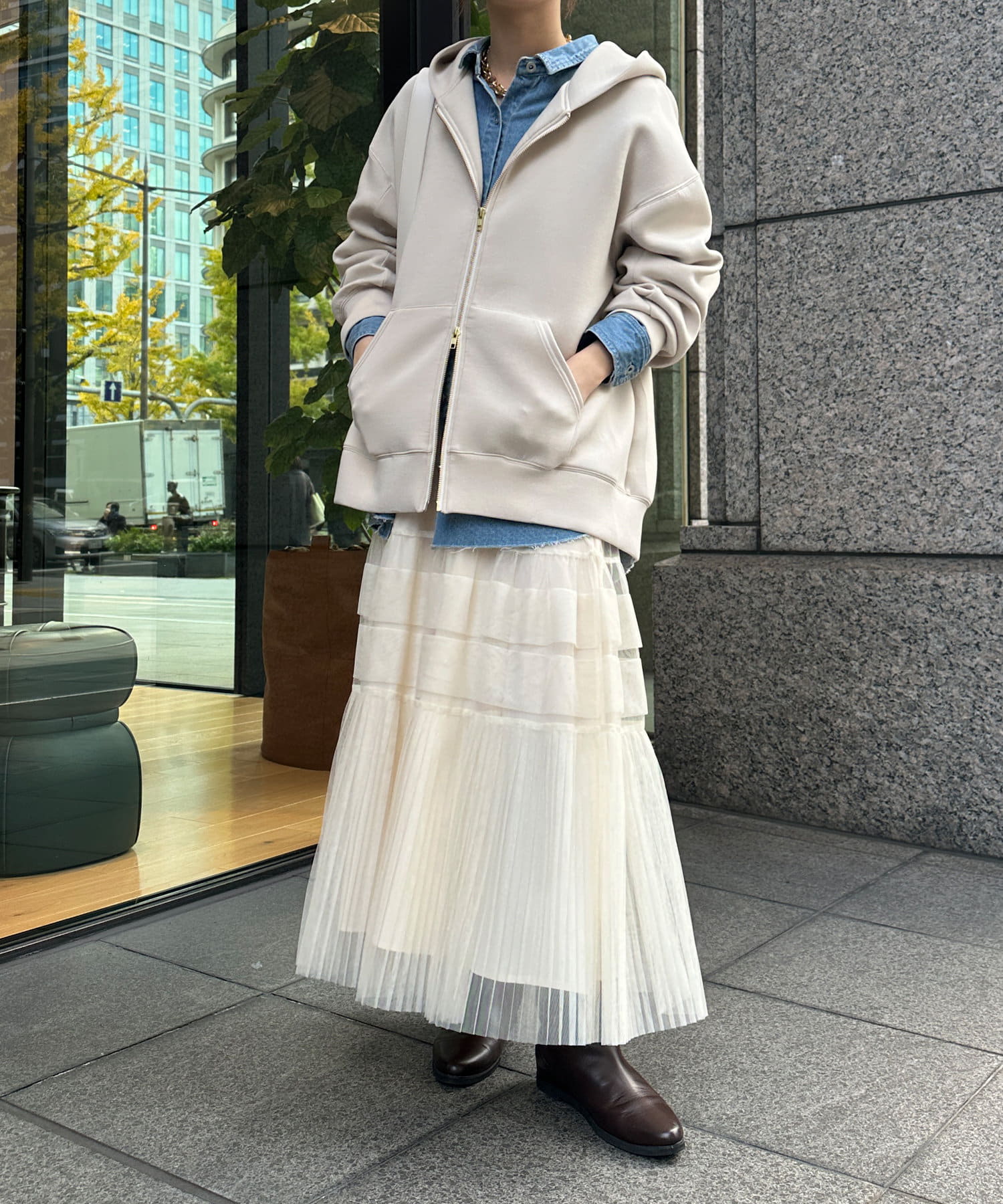 フラットな表面感でカジュアルになりすぎないジップアップパーカーが登場!