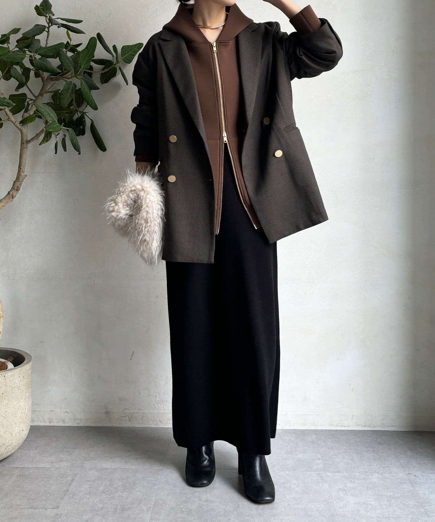 シャツなどの羽織りとしてや、ジャケットなど羽織りアイテムとのレイヤードなど、とにかく万能に着まわしていただけますよ。