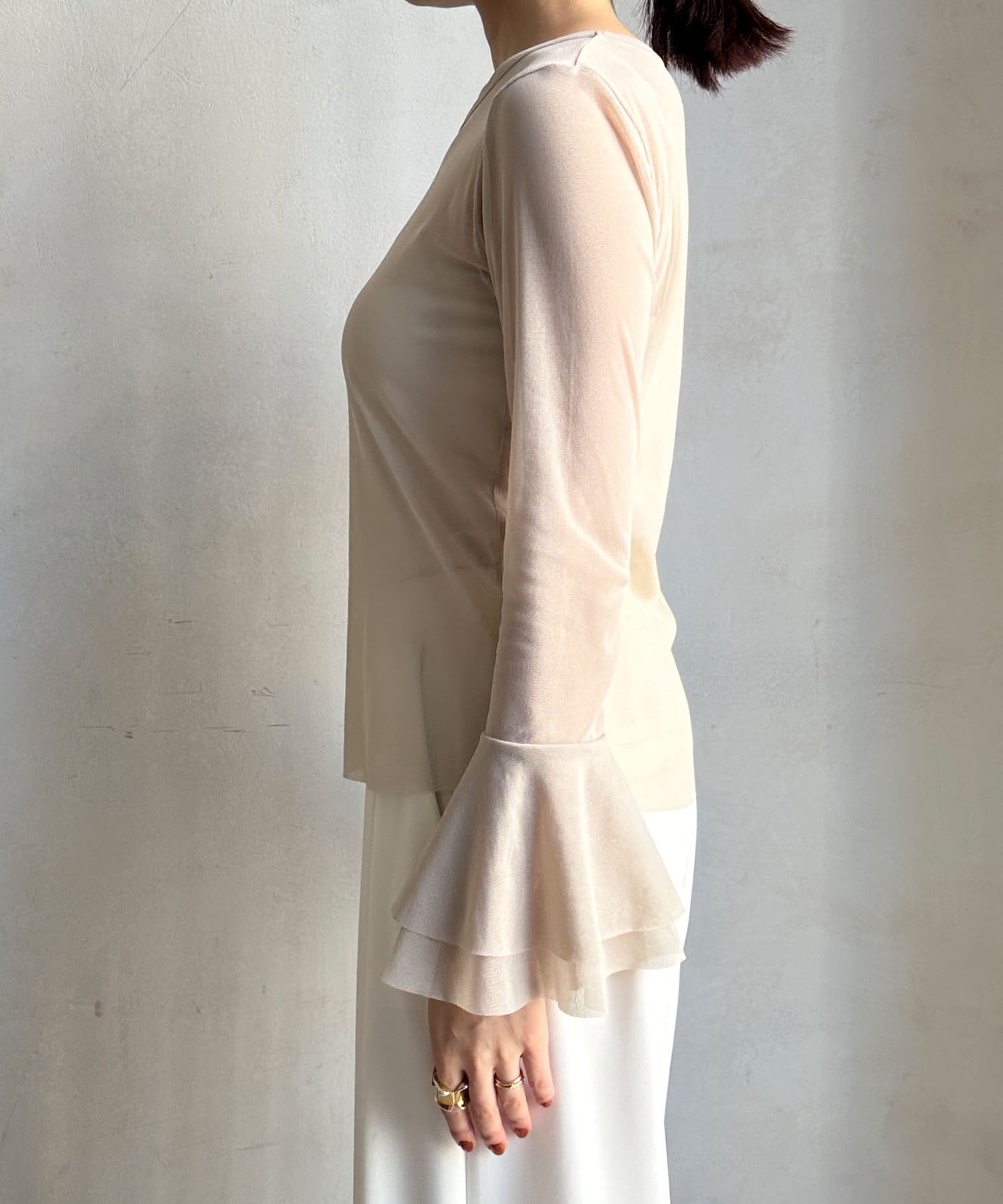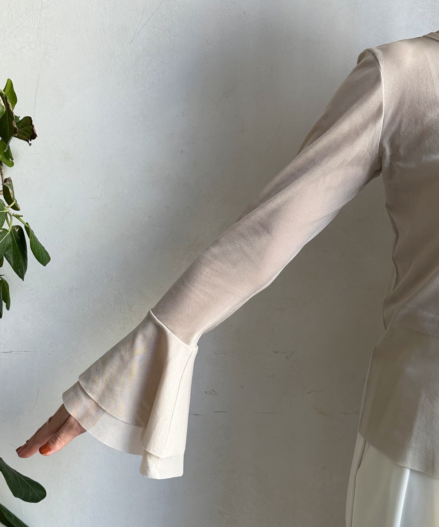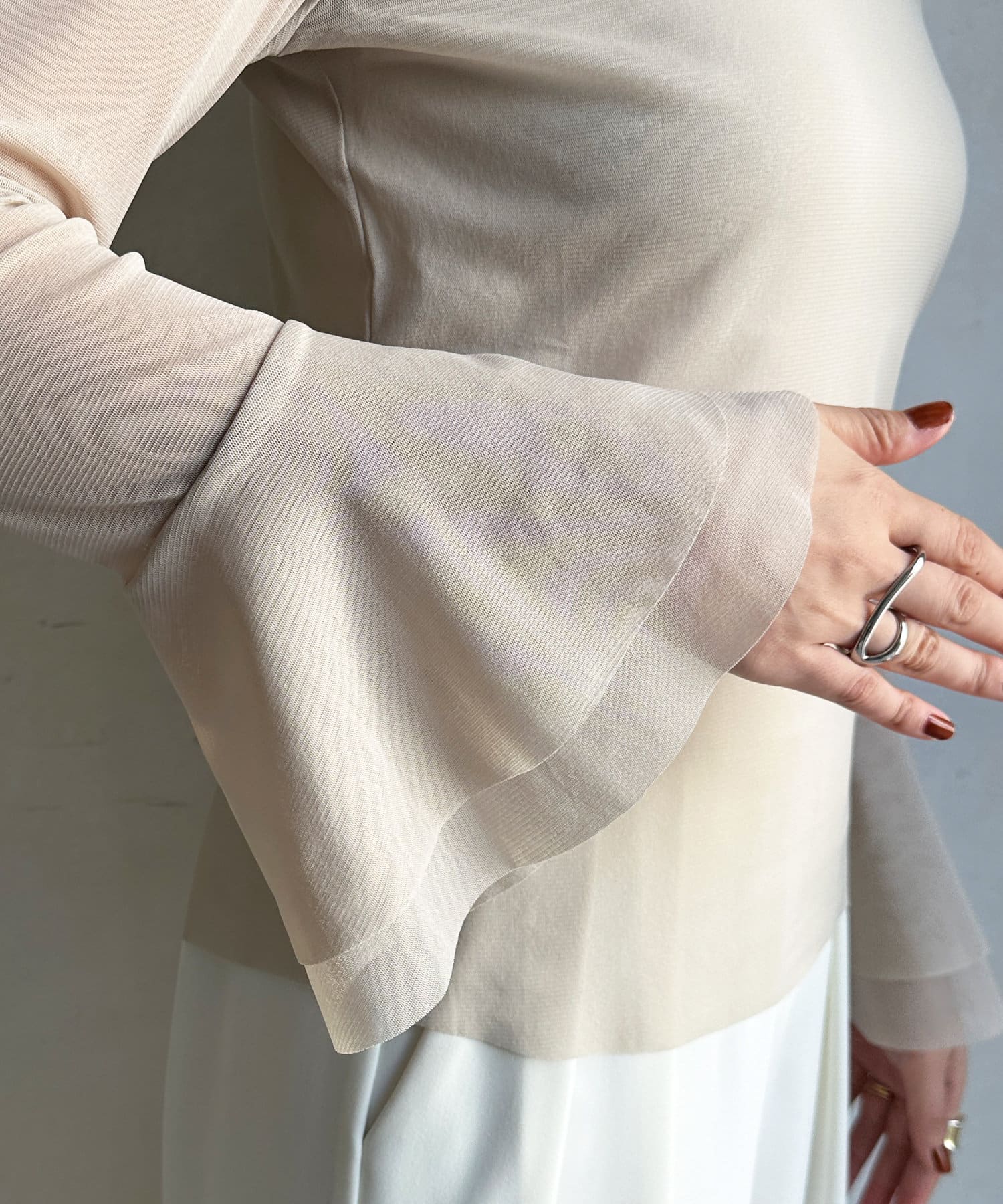 袖口をひらっと広がるシルエットに切り替えることで、華やかな印象をプラスします。