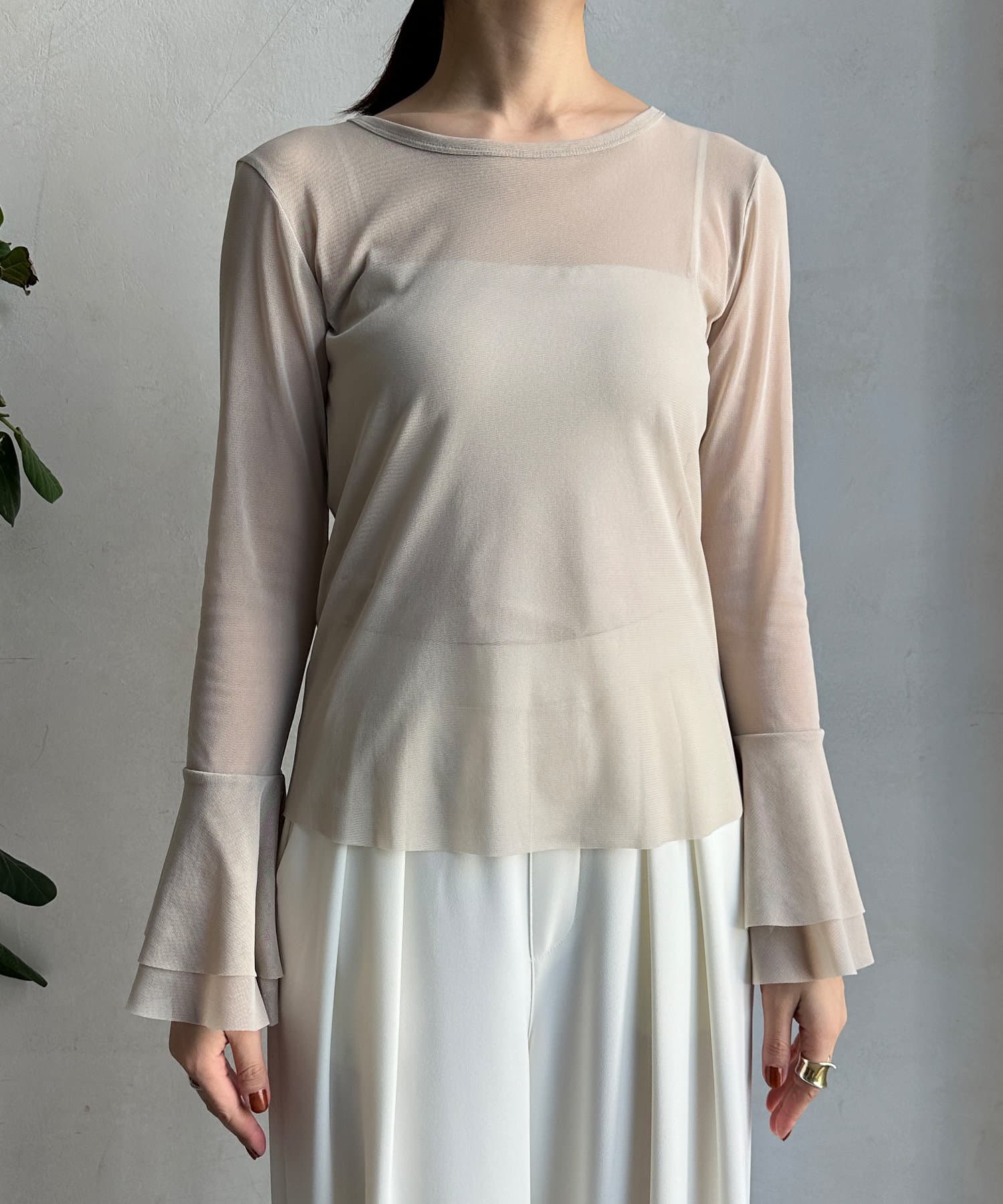 薄手で柔らかく、伸縮性のあるチュールの素材感がレイヤードにぴったり。