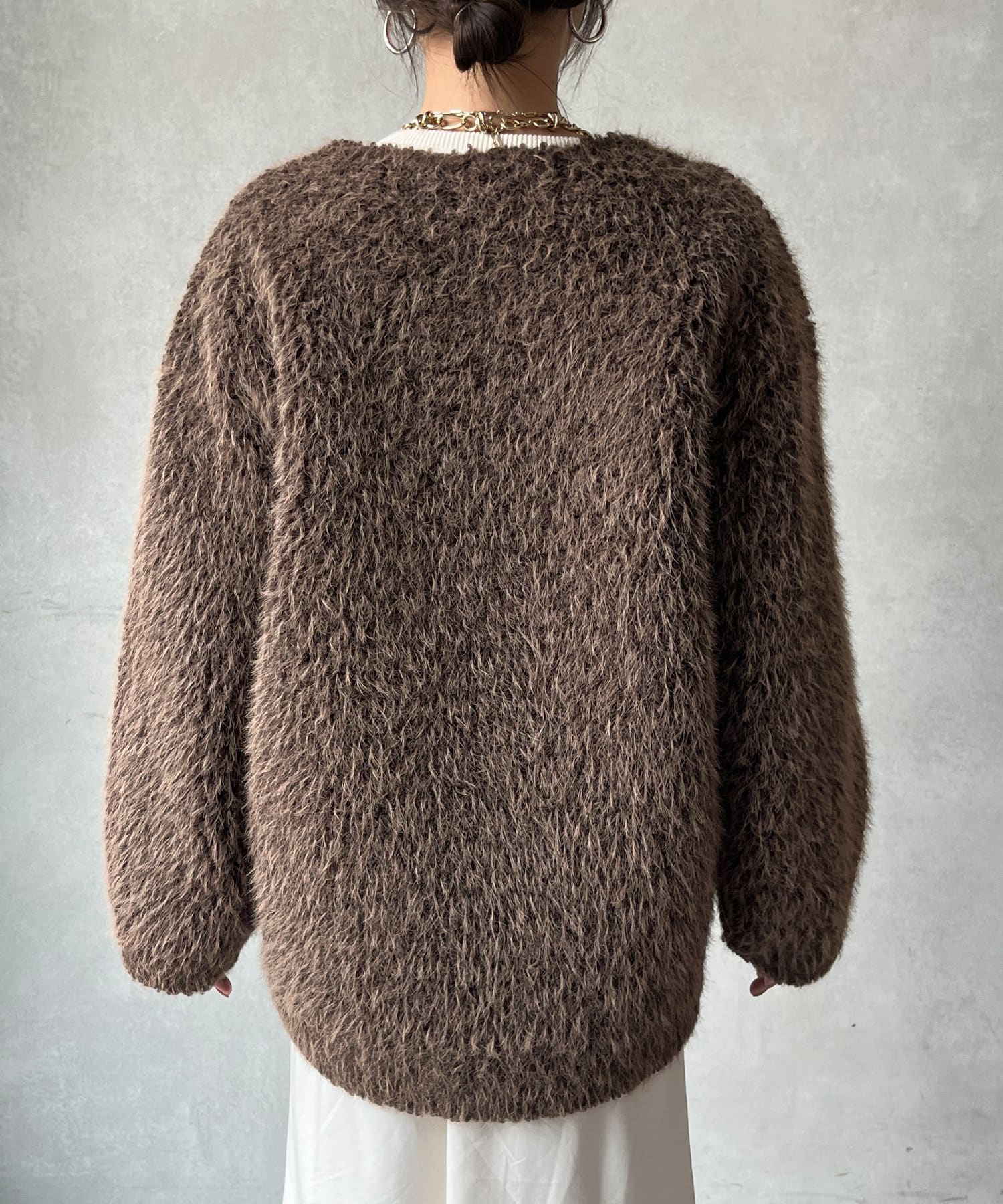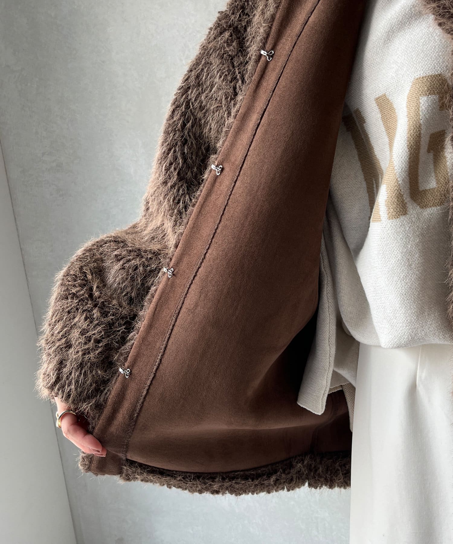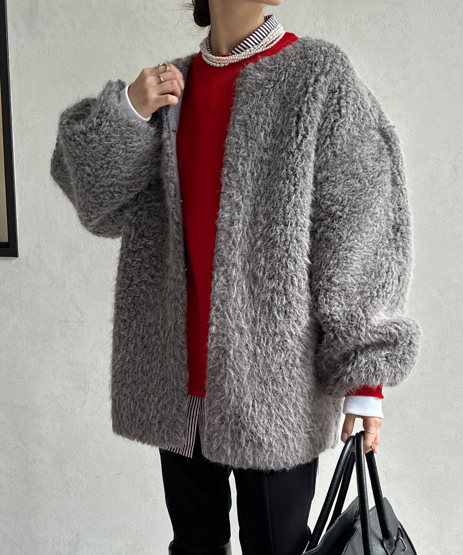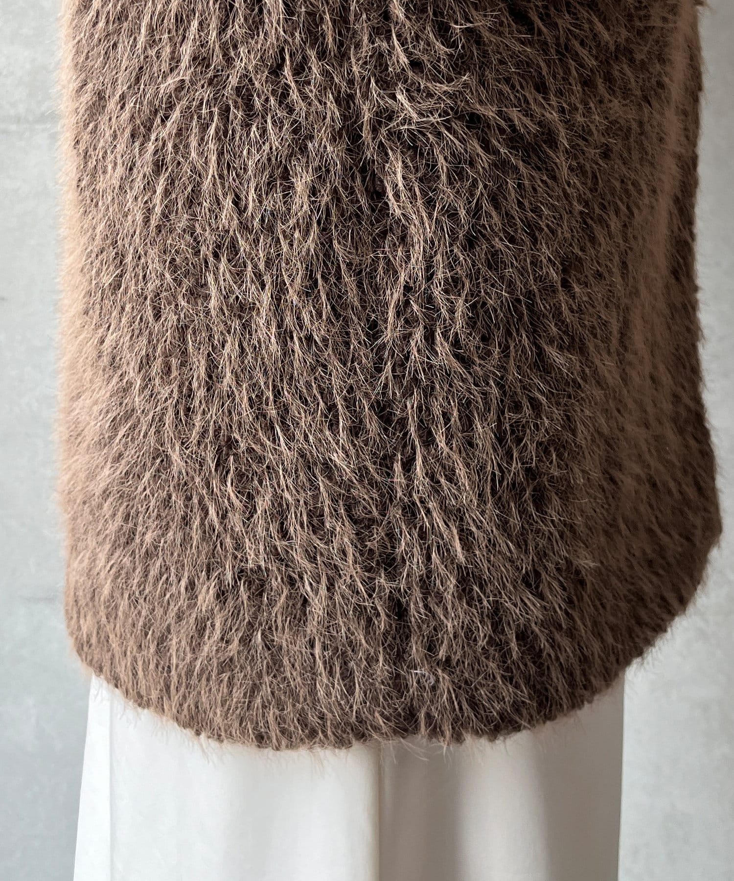 今年気になる毛足感のあるシャギー素材で仕上げたミドル丈コート。