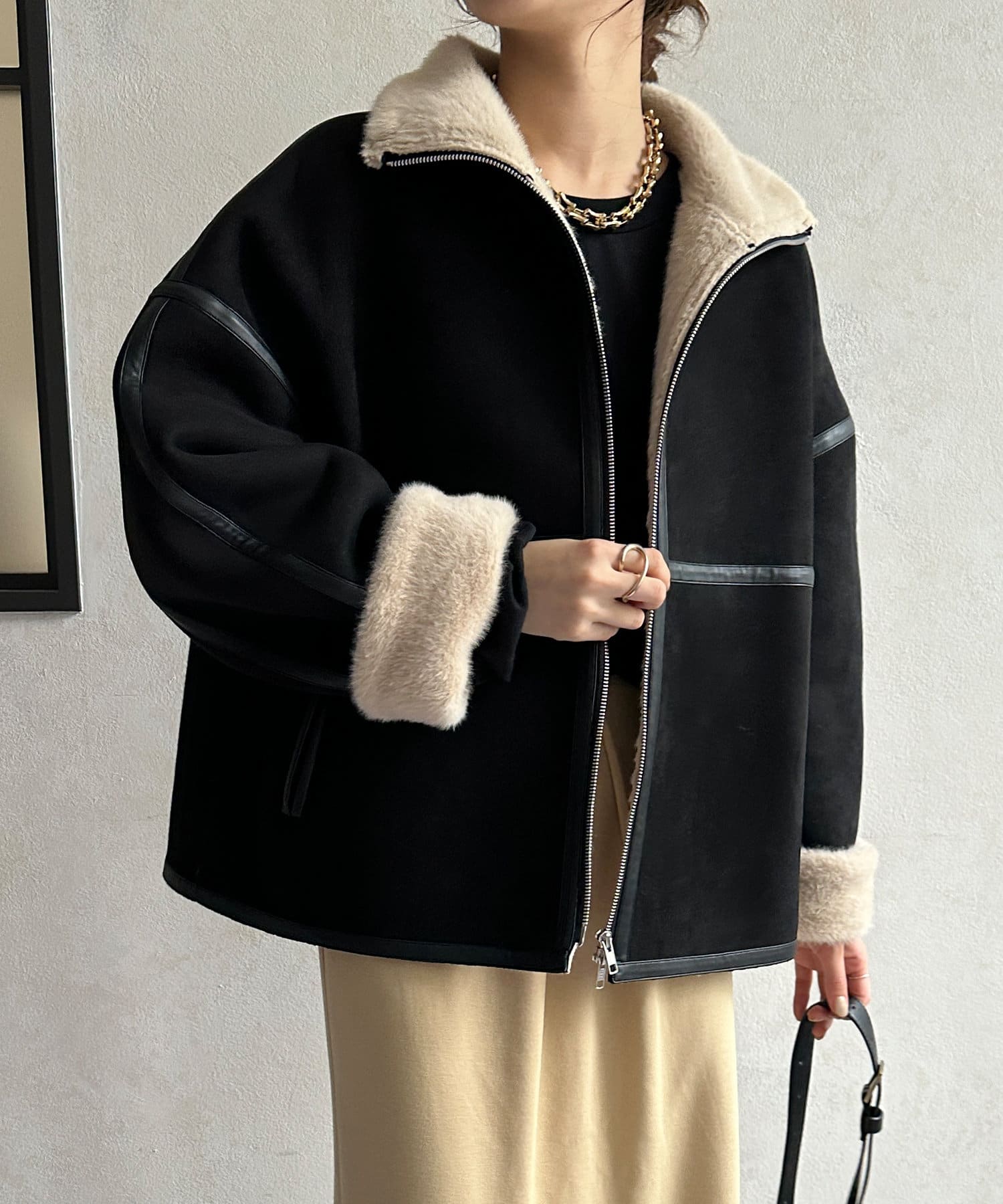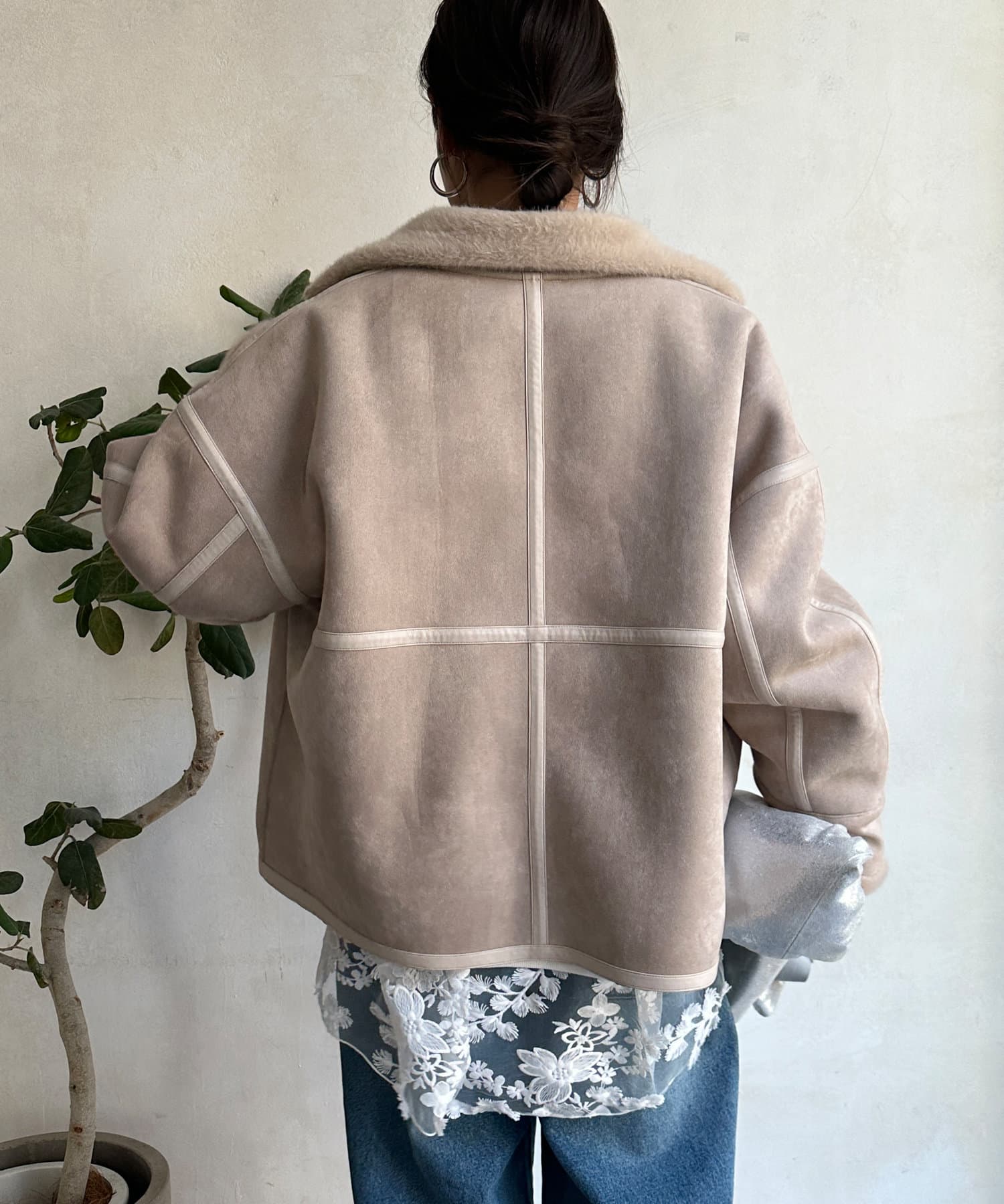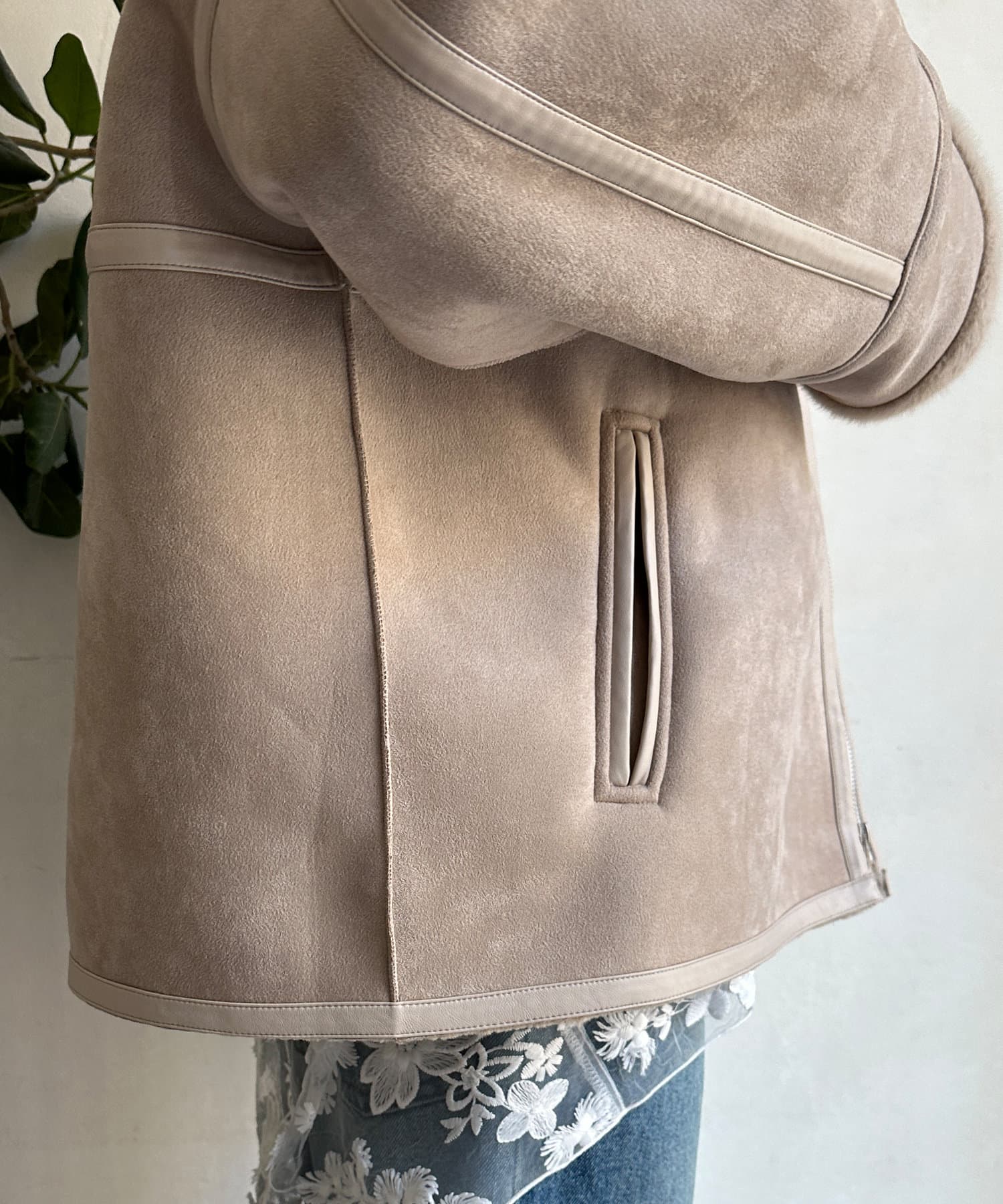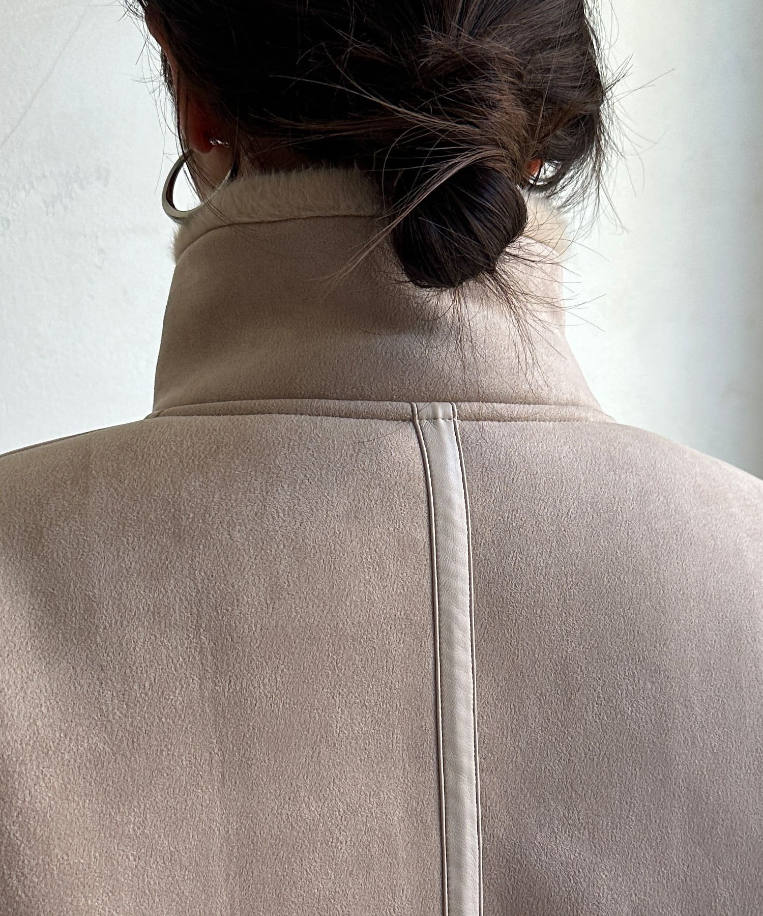 柔らかな質感で着心地よく過ごせるフェイクムートンのコート。