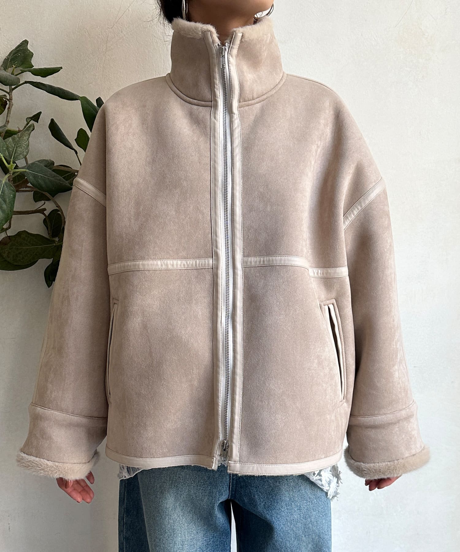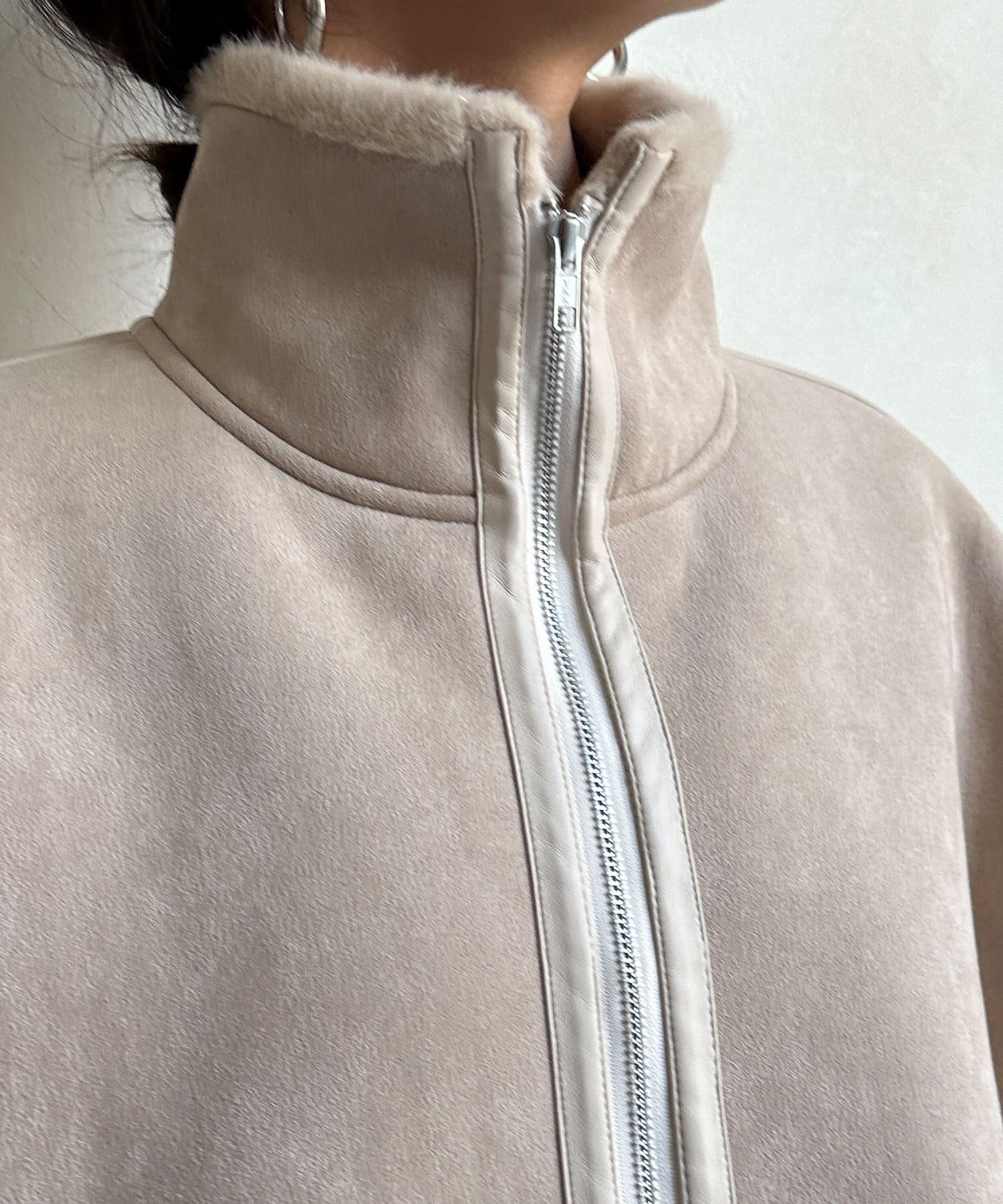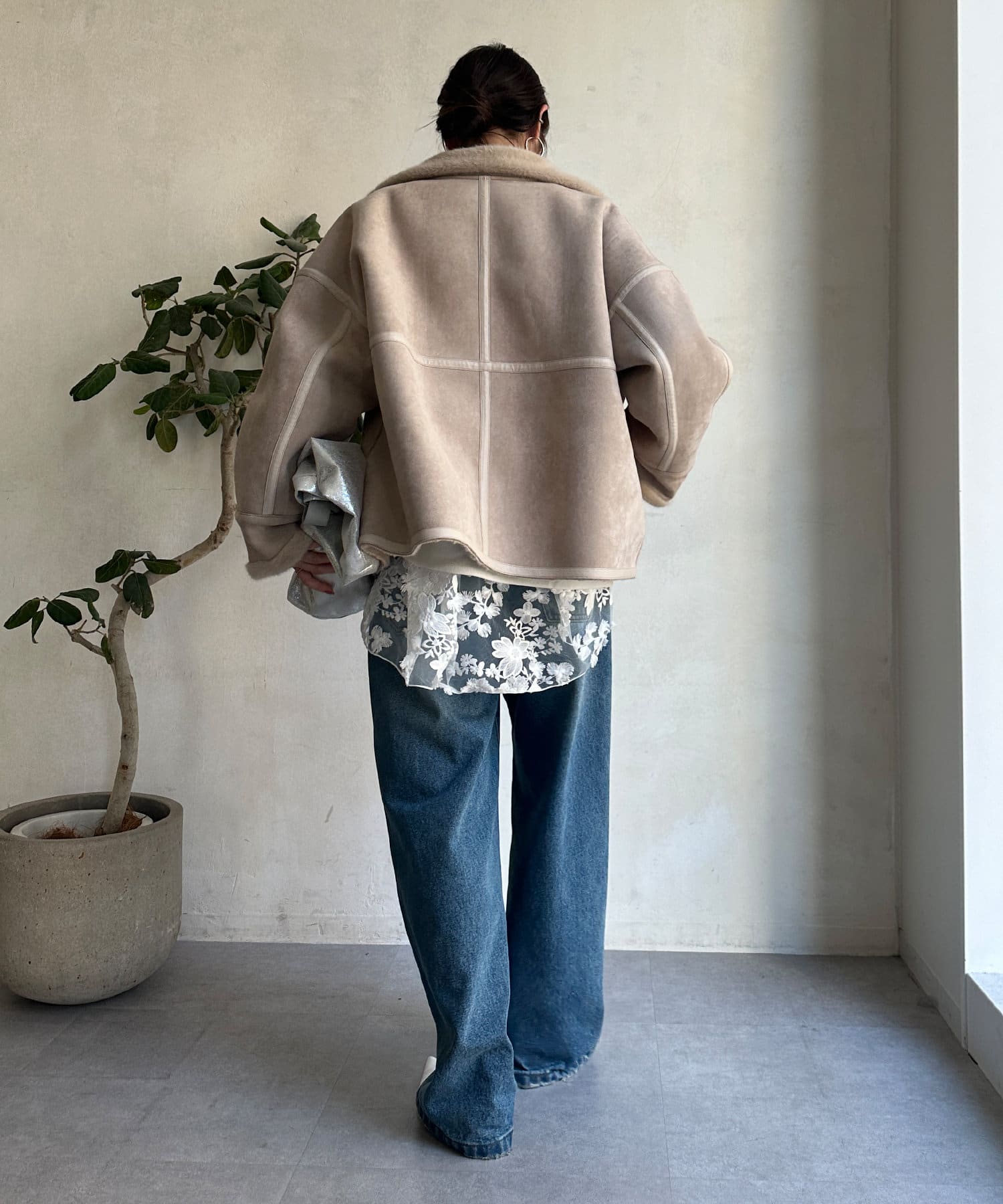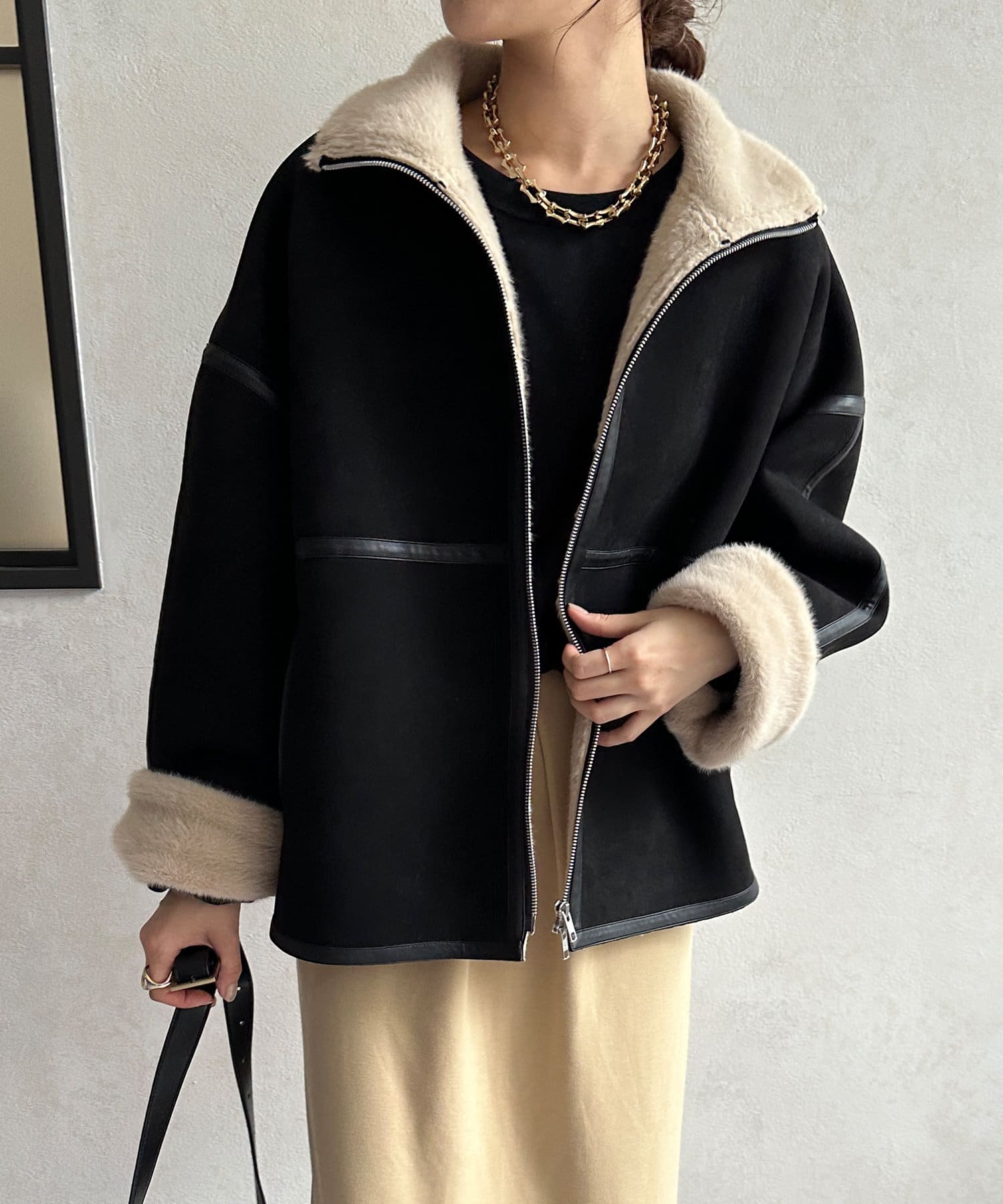 柔らかな質感で着心地よく過ごせるフェイクムートンのコート。