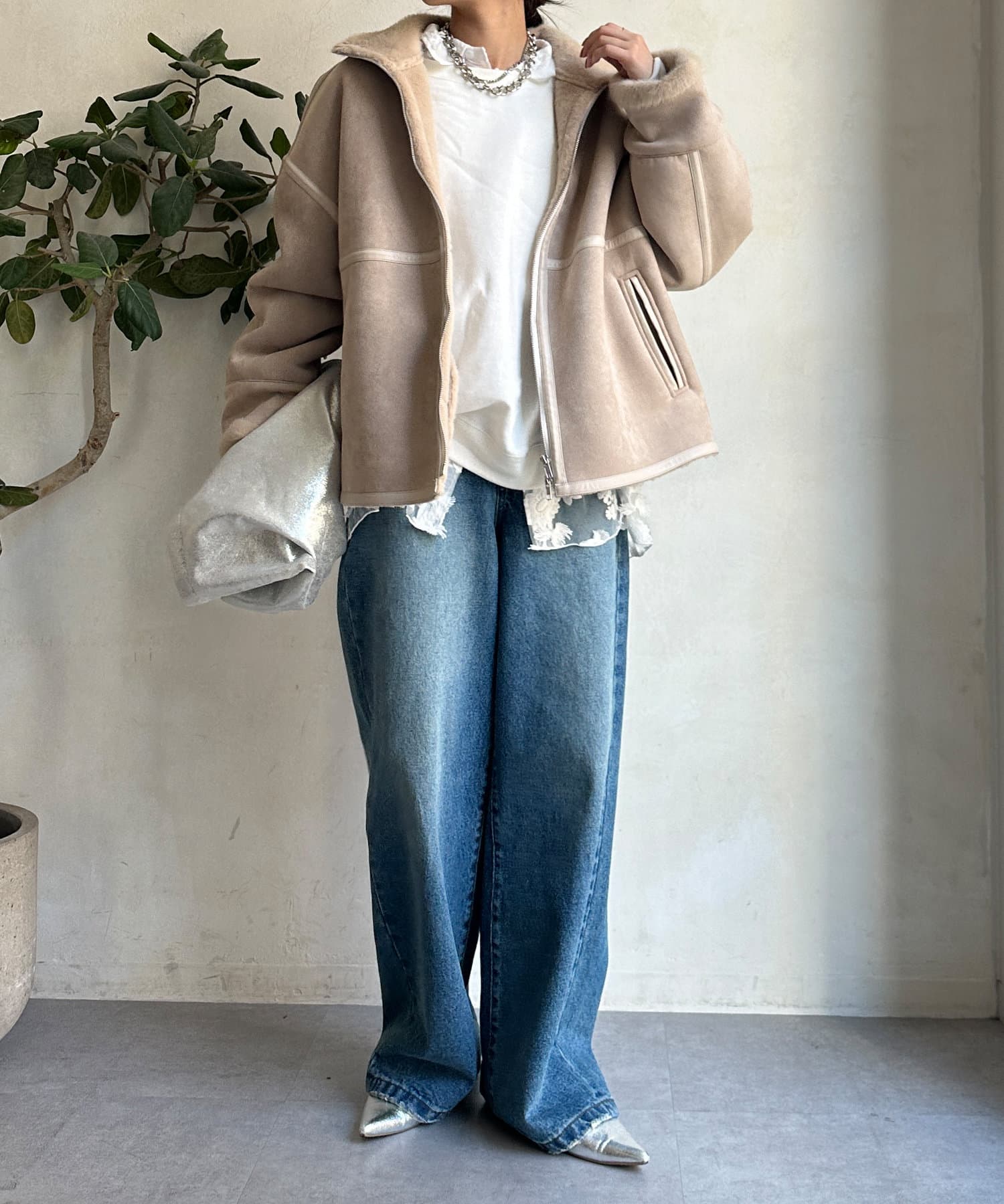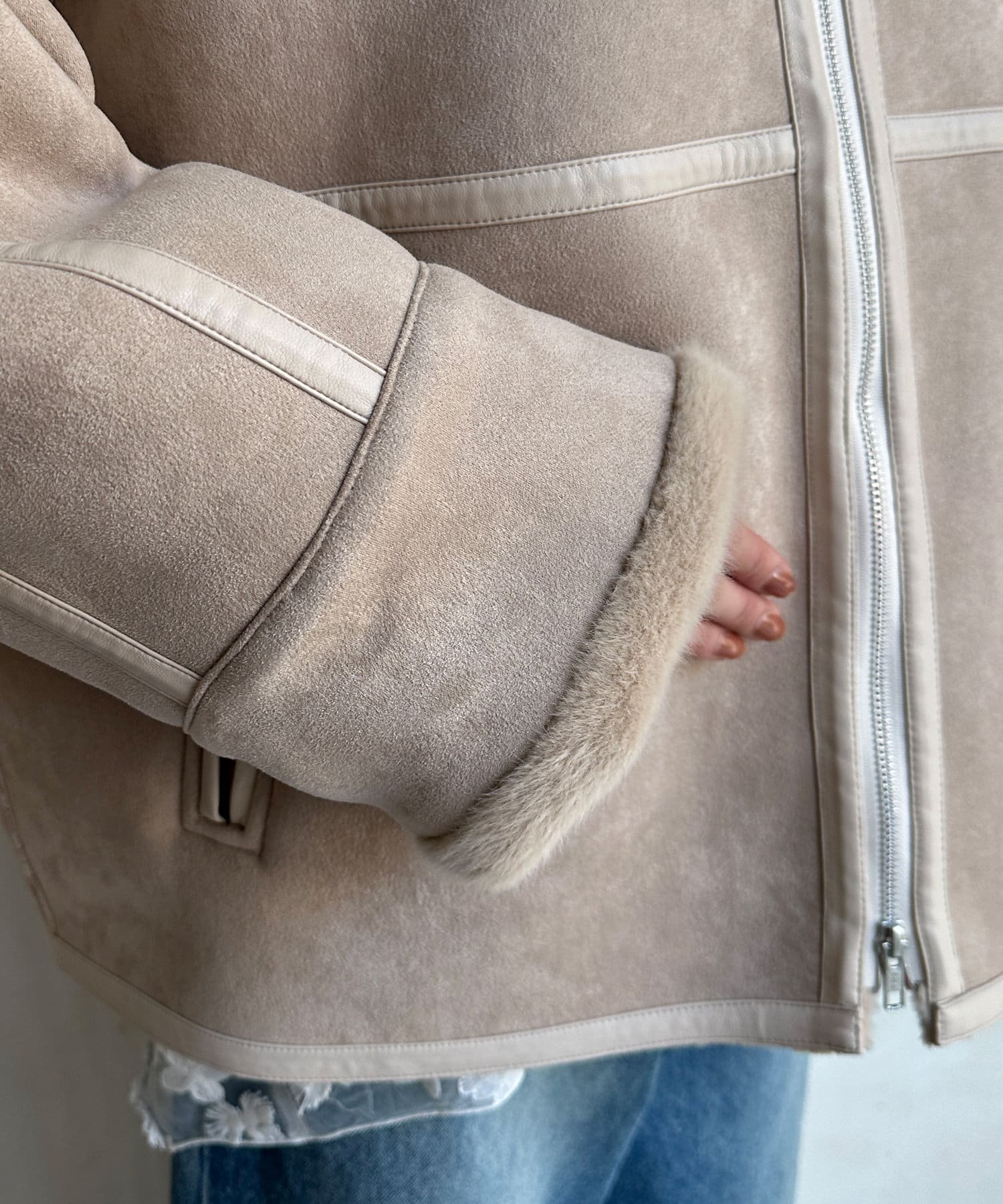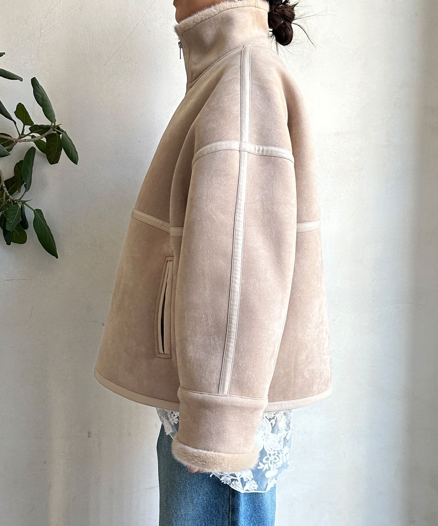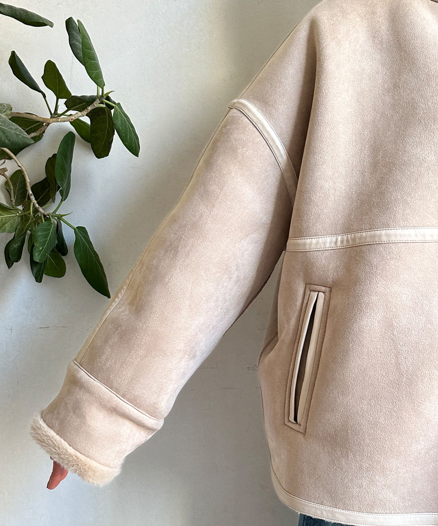 柔らかな質感で着心地よく過ごせるフェイクムートンのコート。