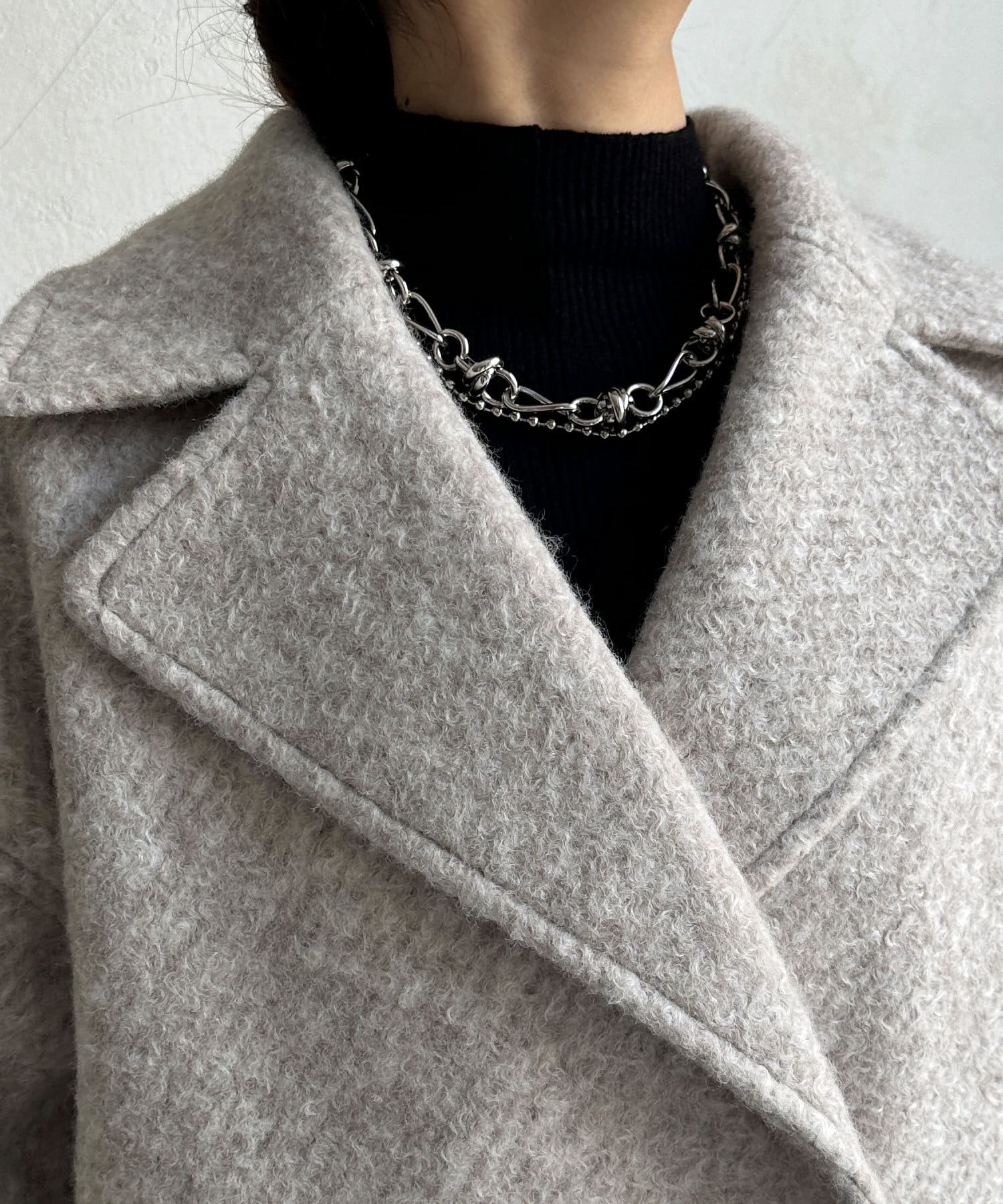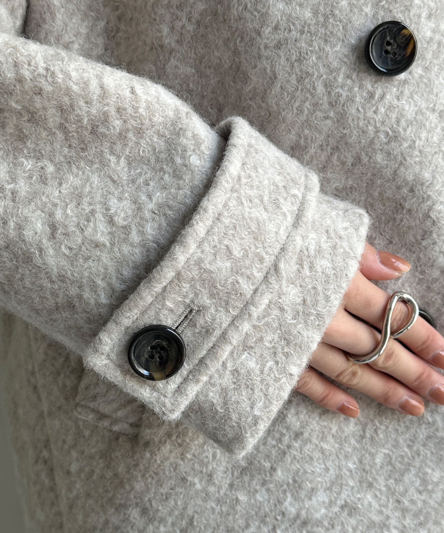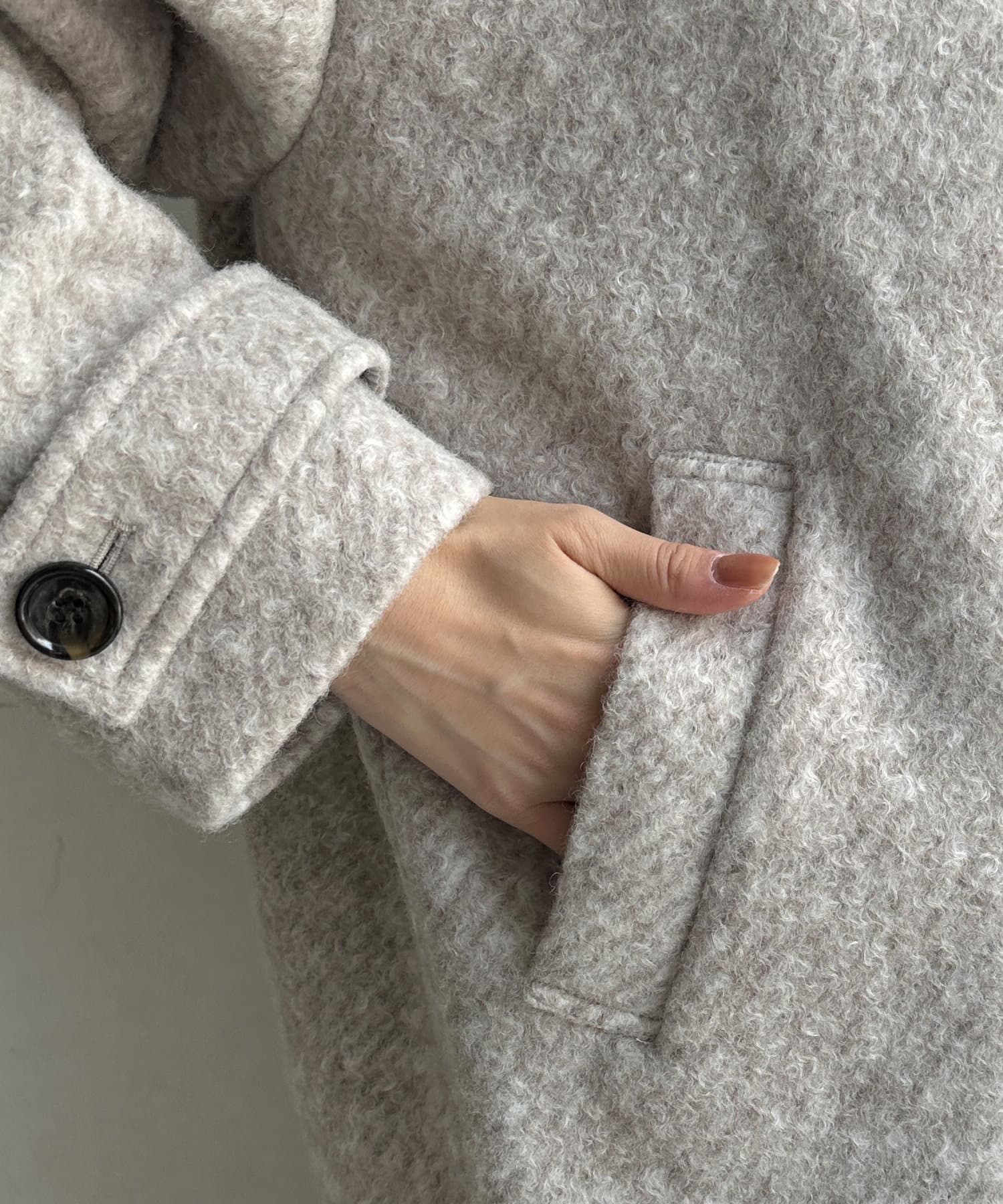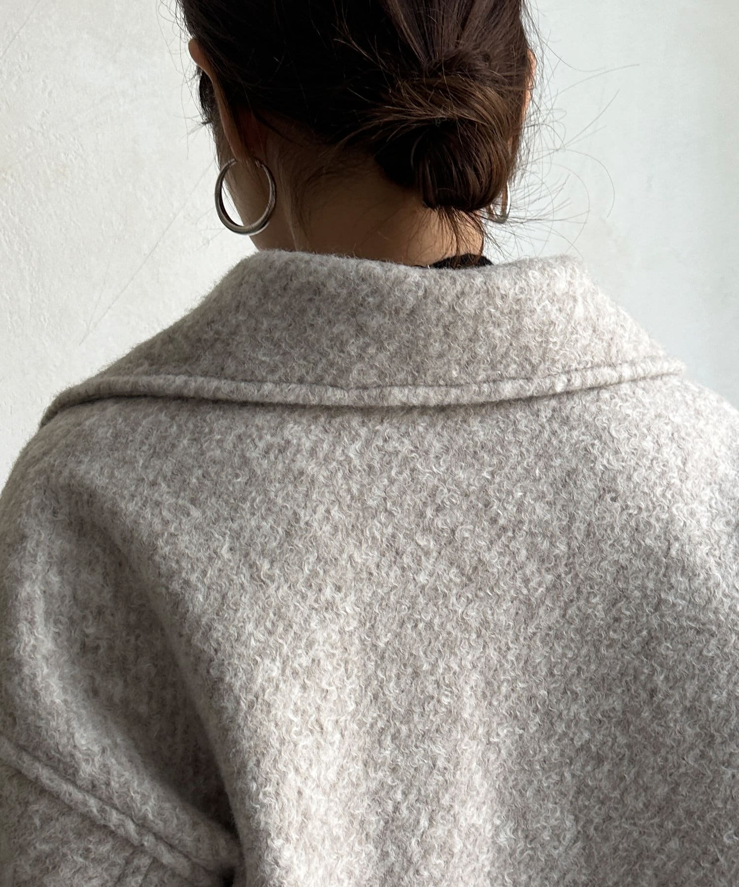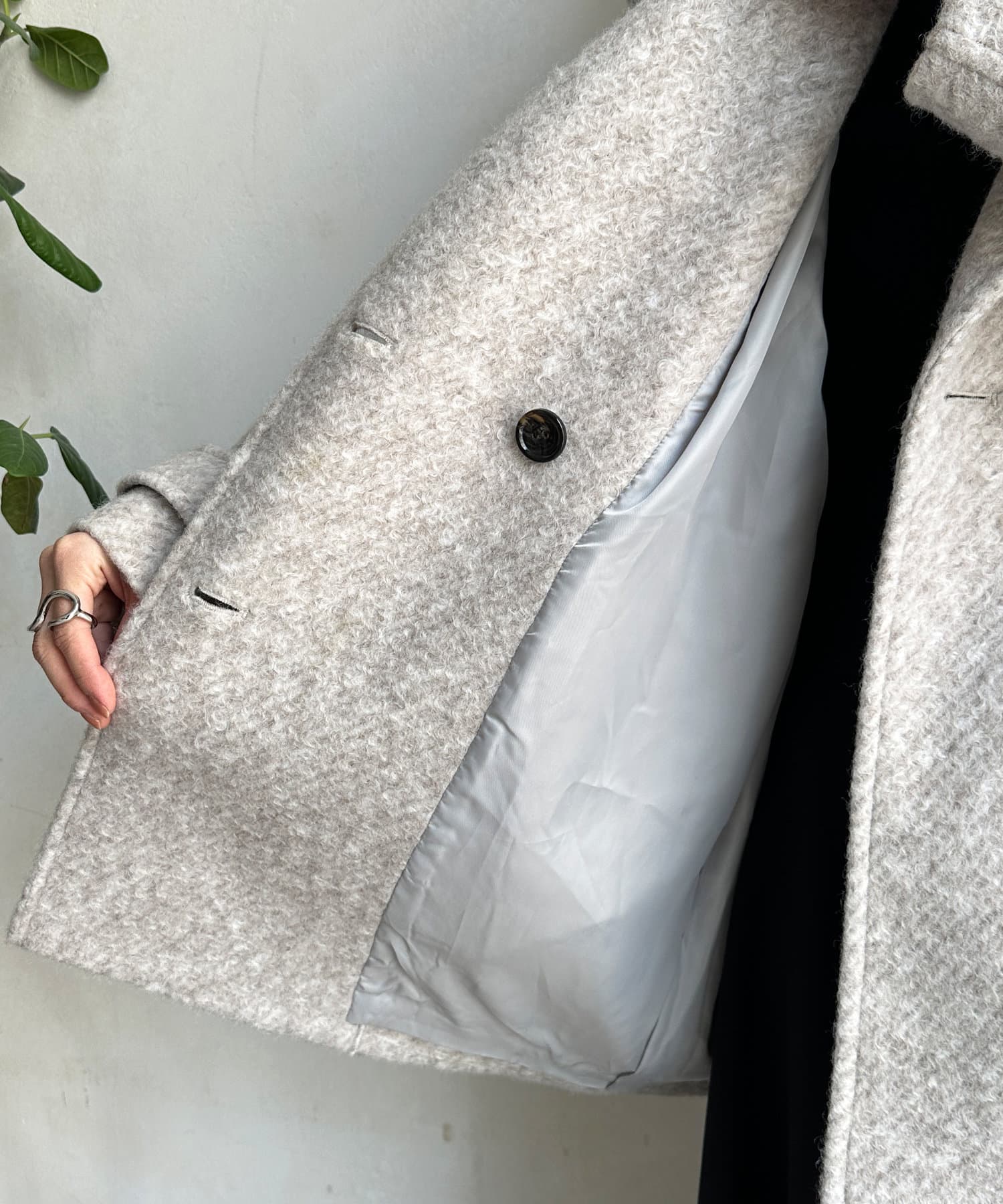 大きめの襟とリラックスしたシルエットがポイントのハーフ丈Pコート。