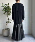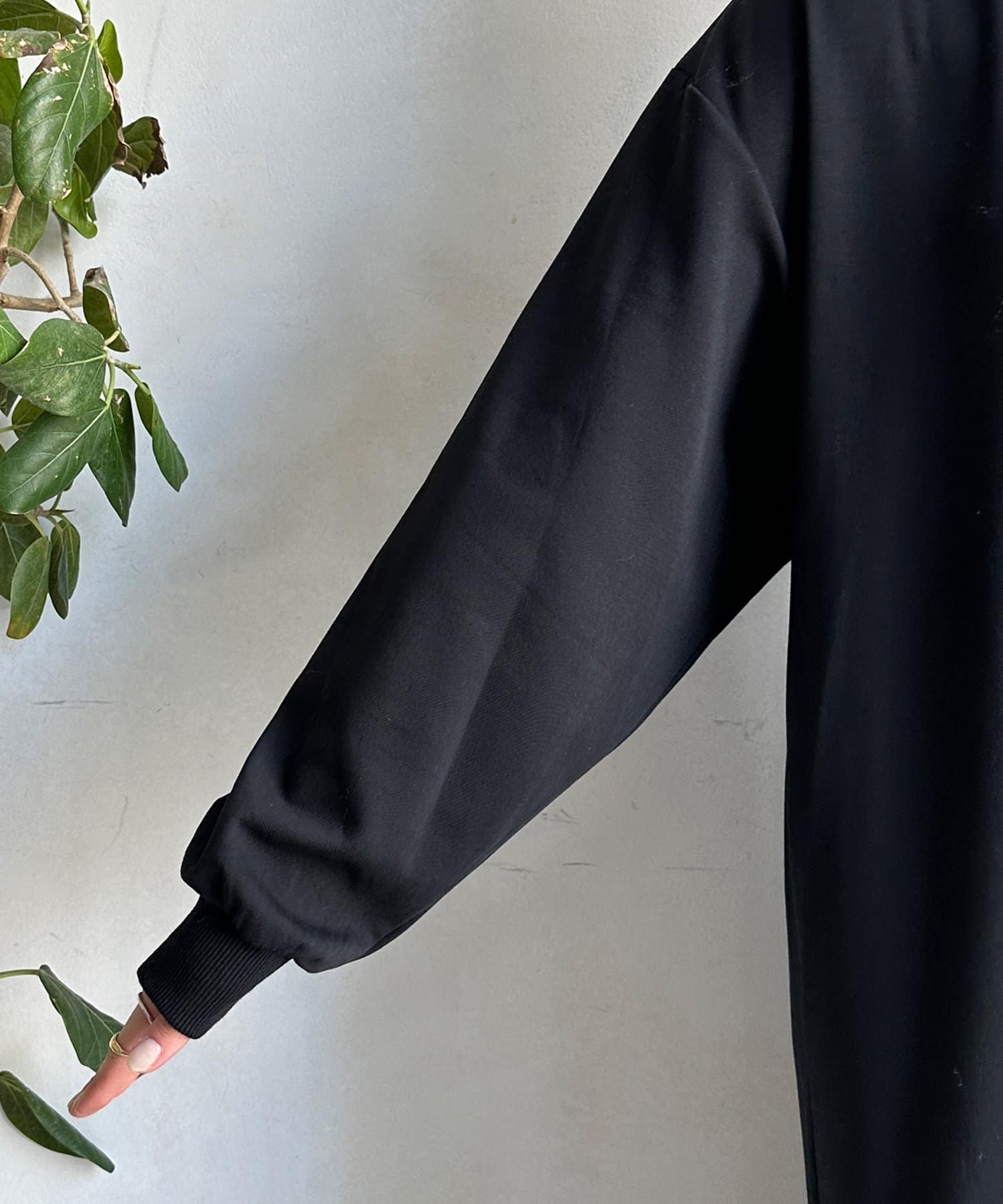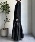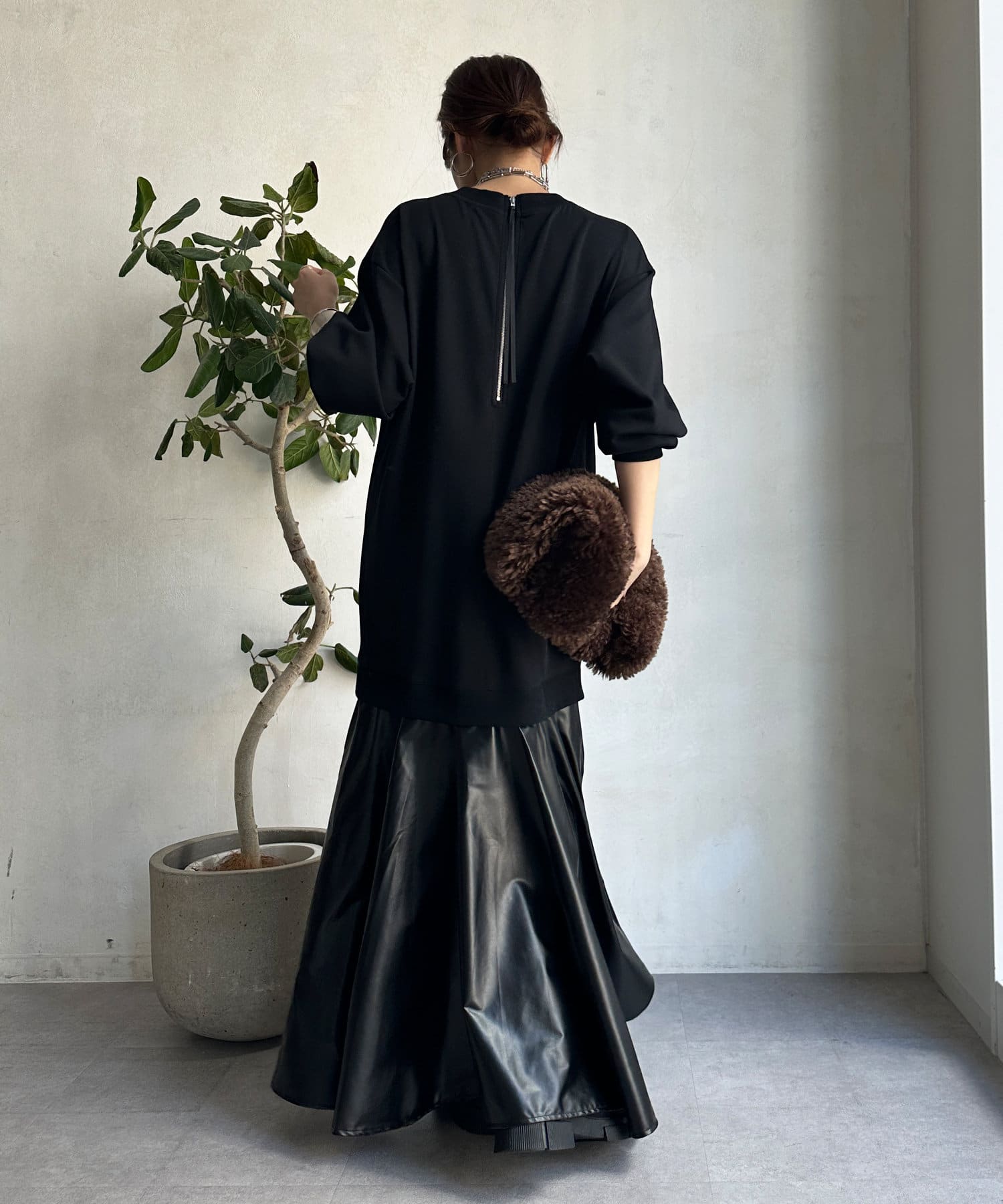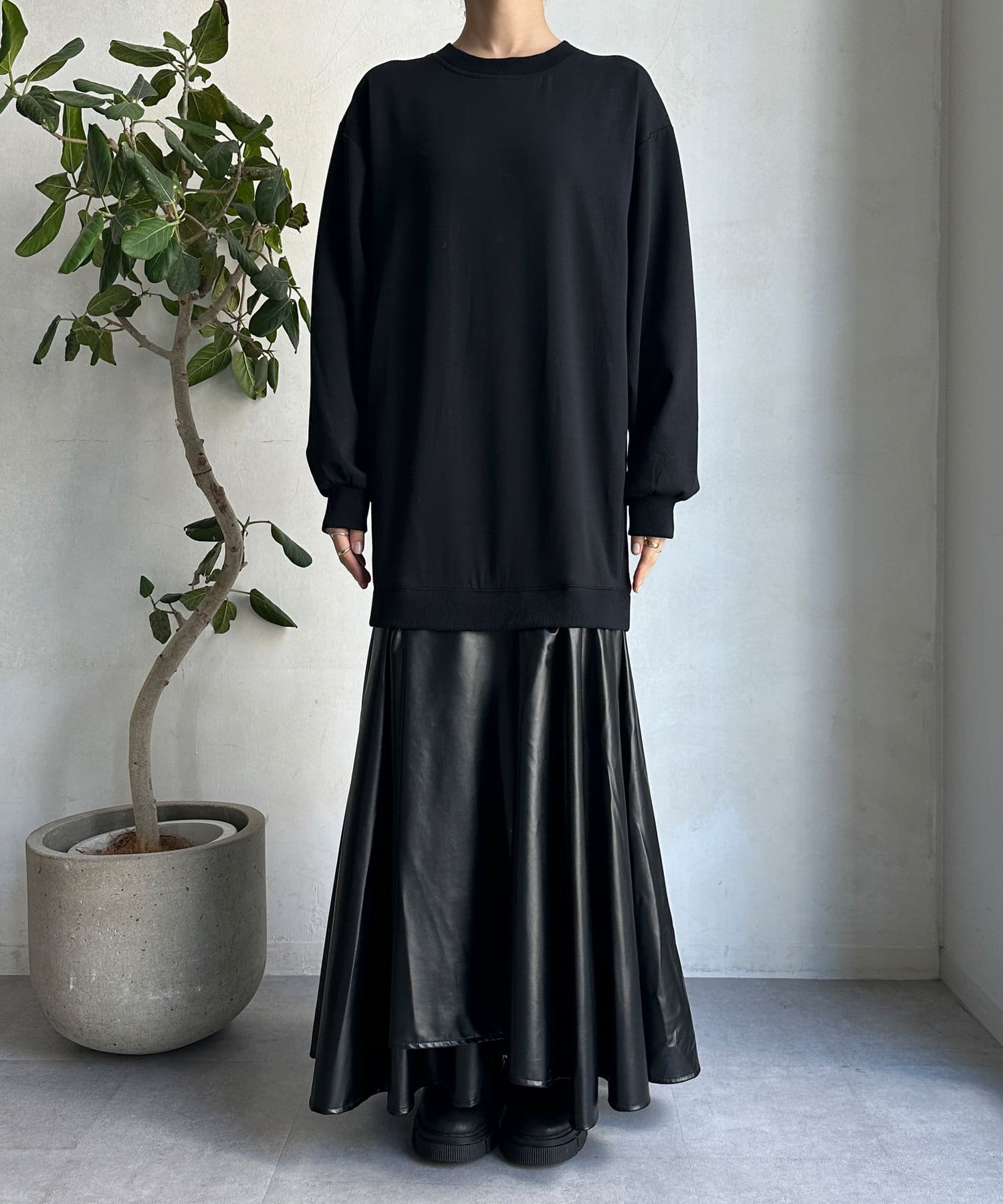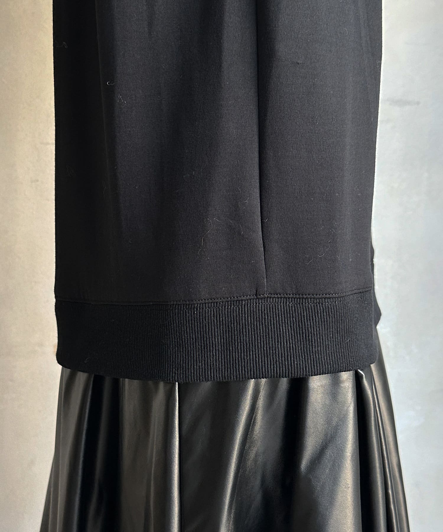 ハリ感スウェットとスカートをドッキングしたデザインのワンピース。