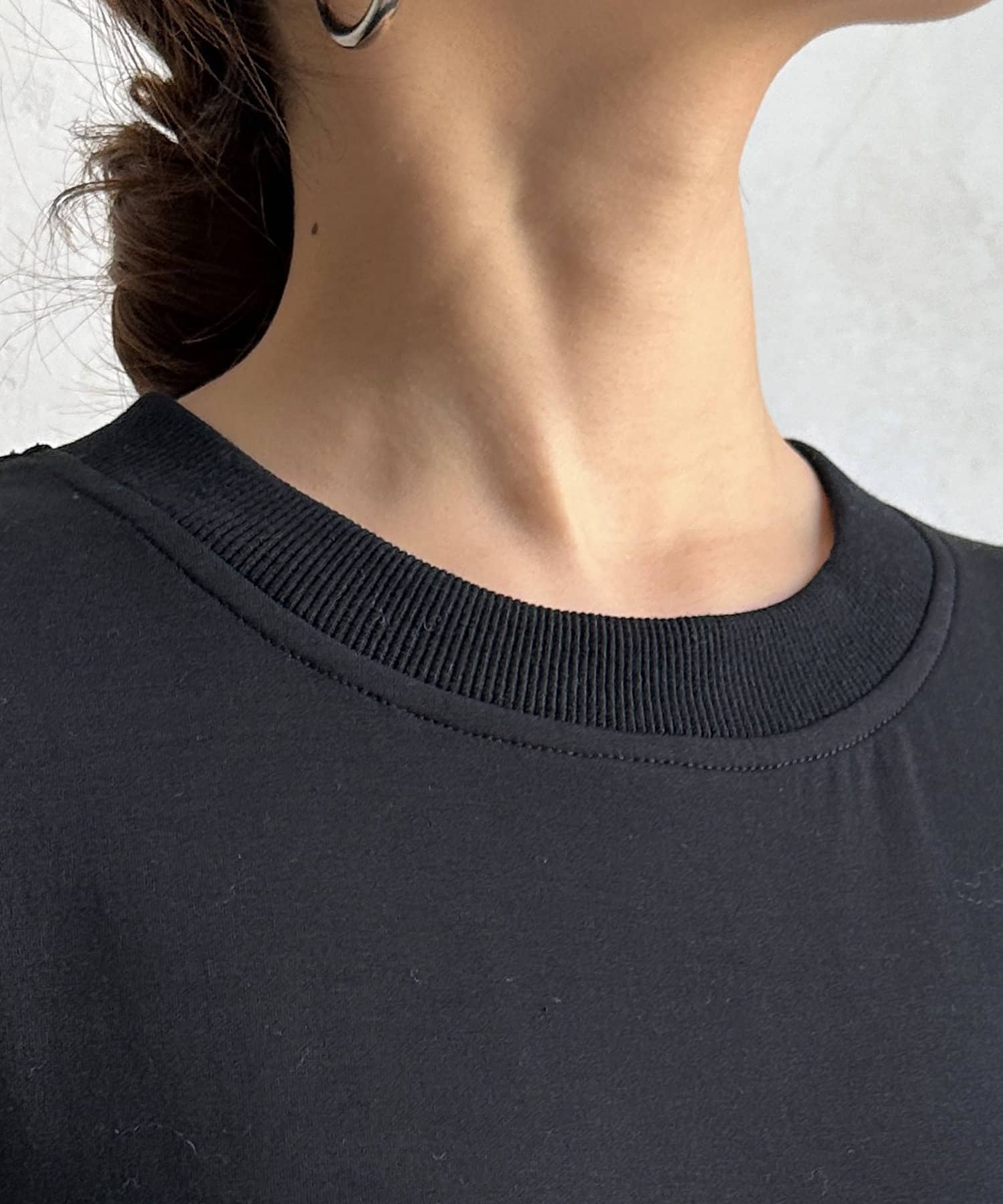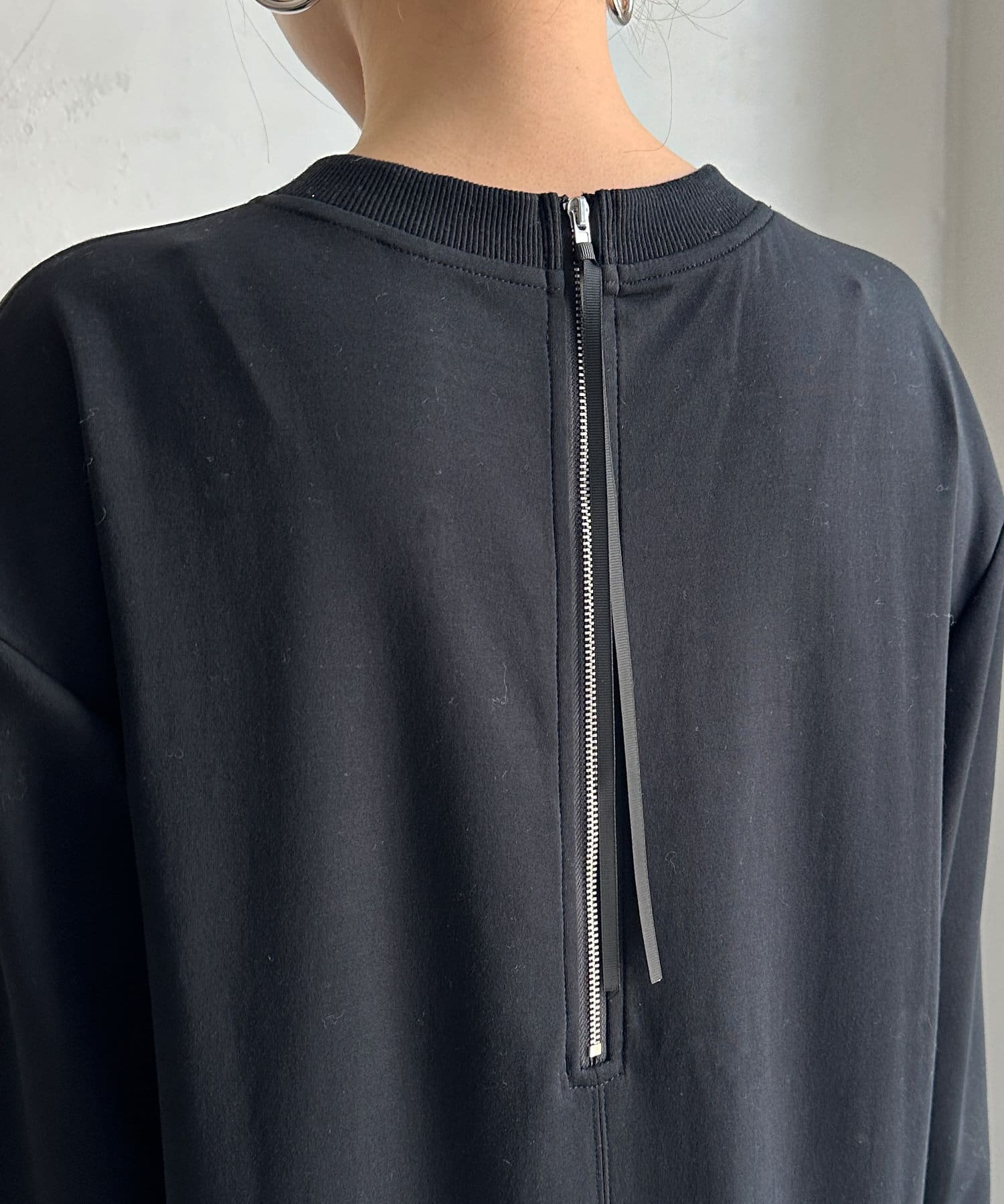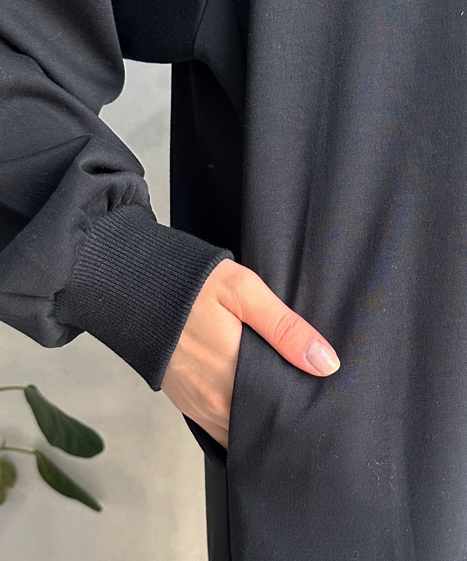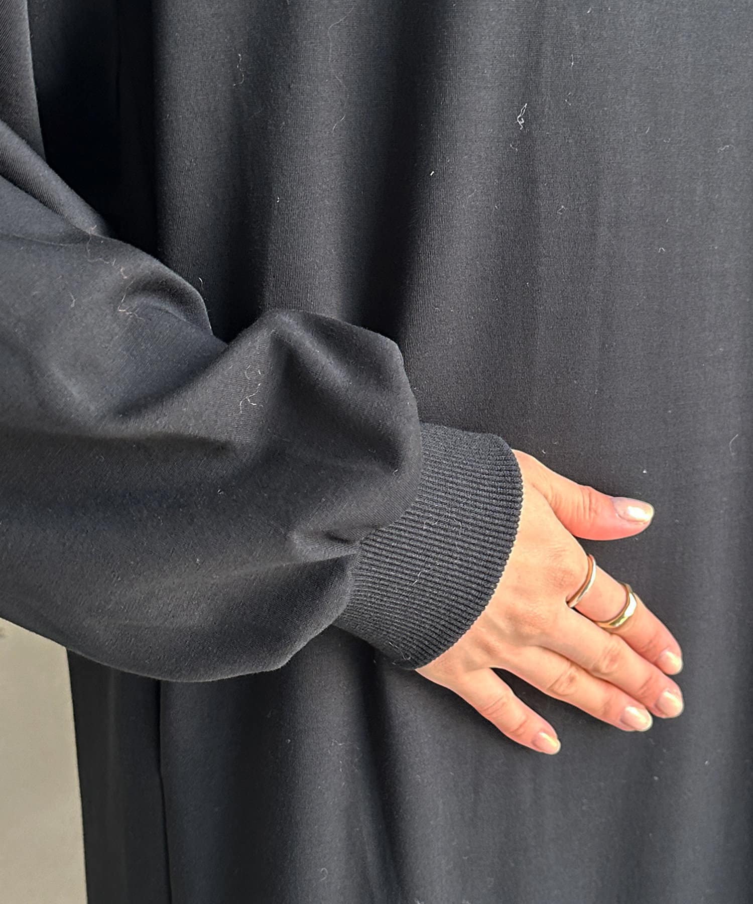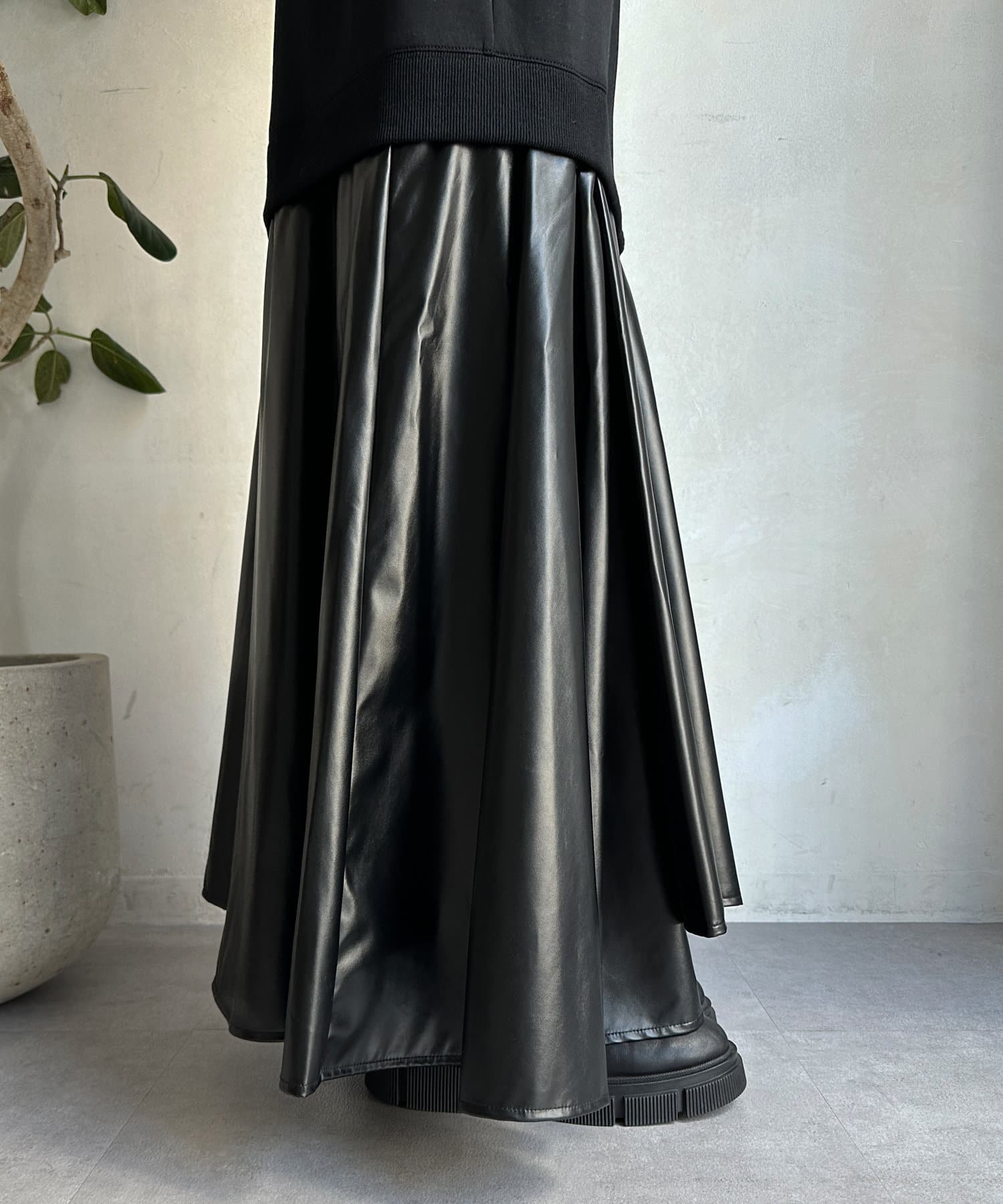 ハリ感スウェットとスカートをドッキングしたデザインのワンピース。
