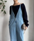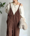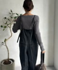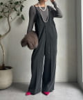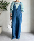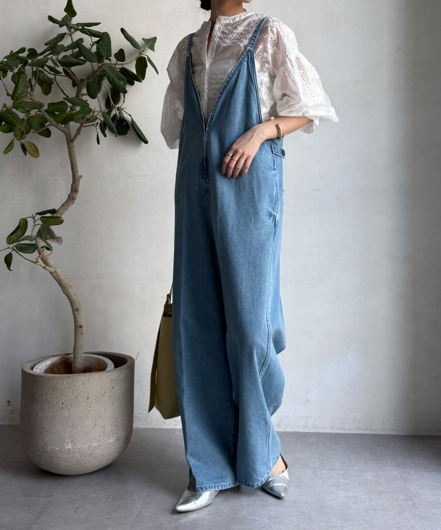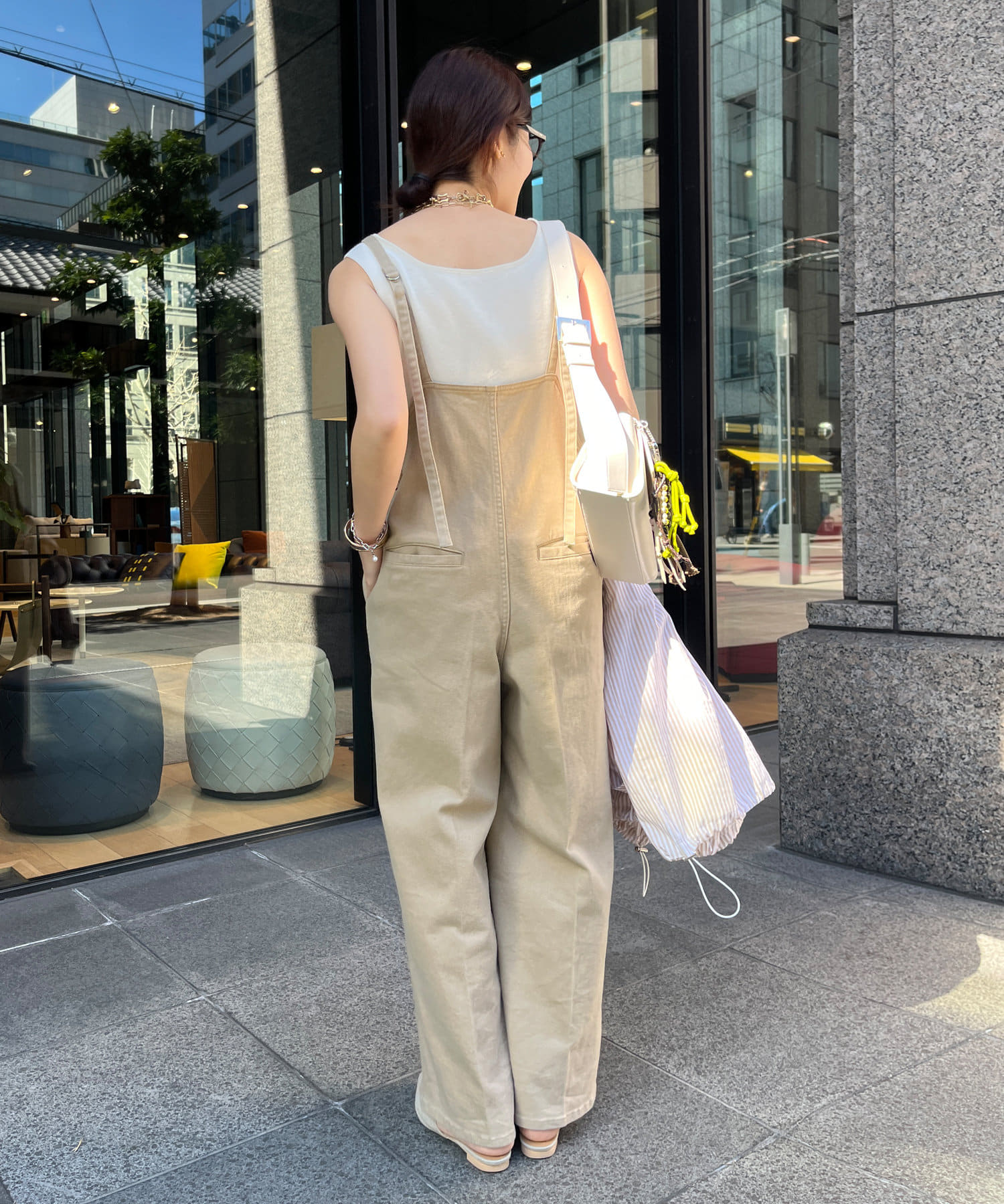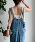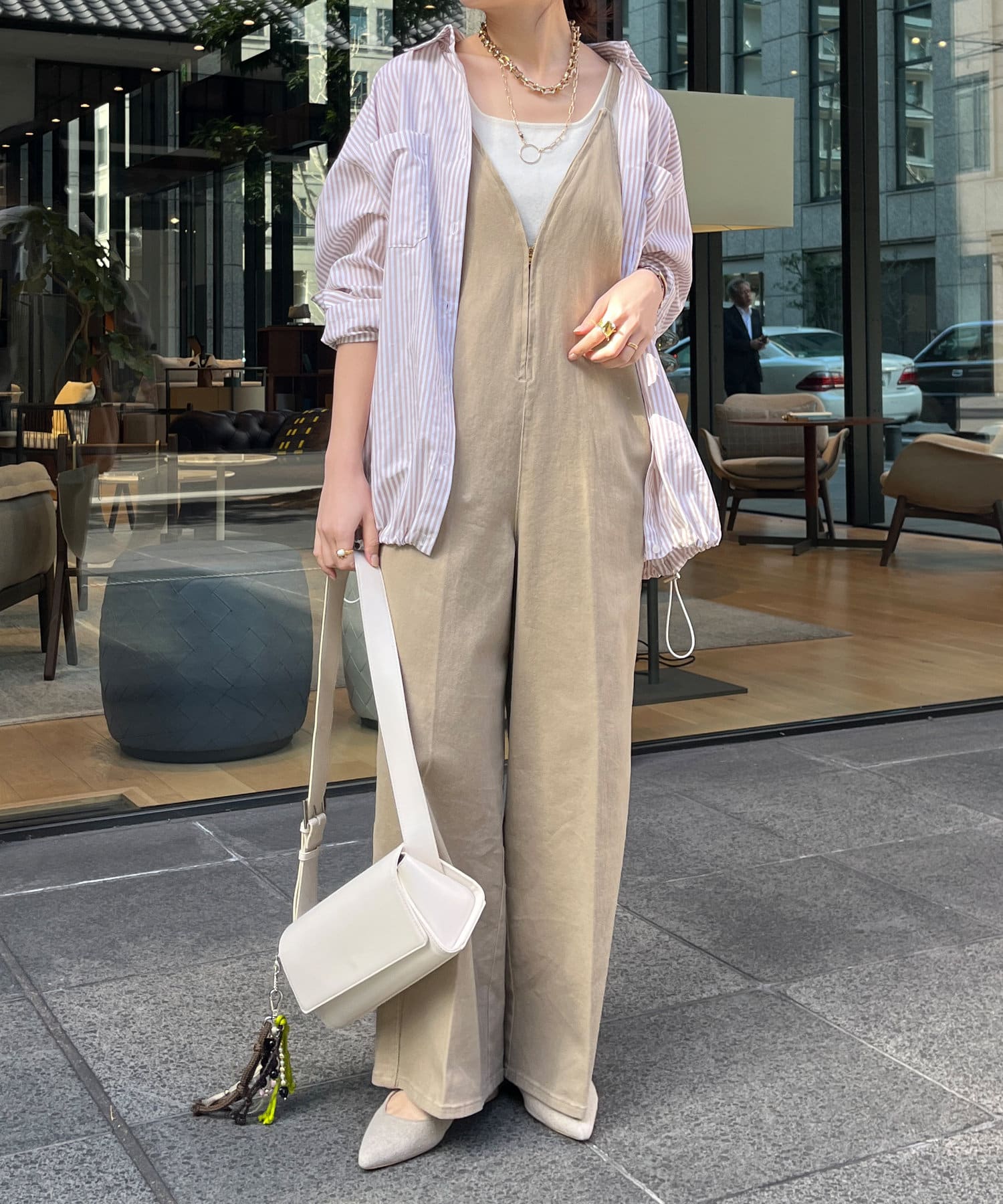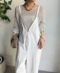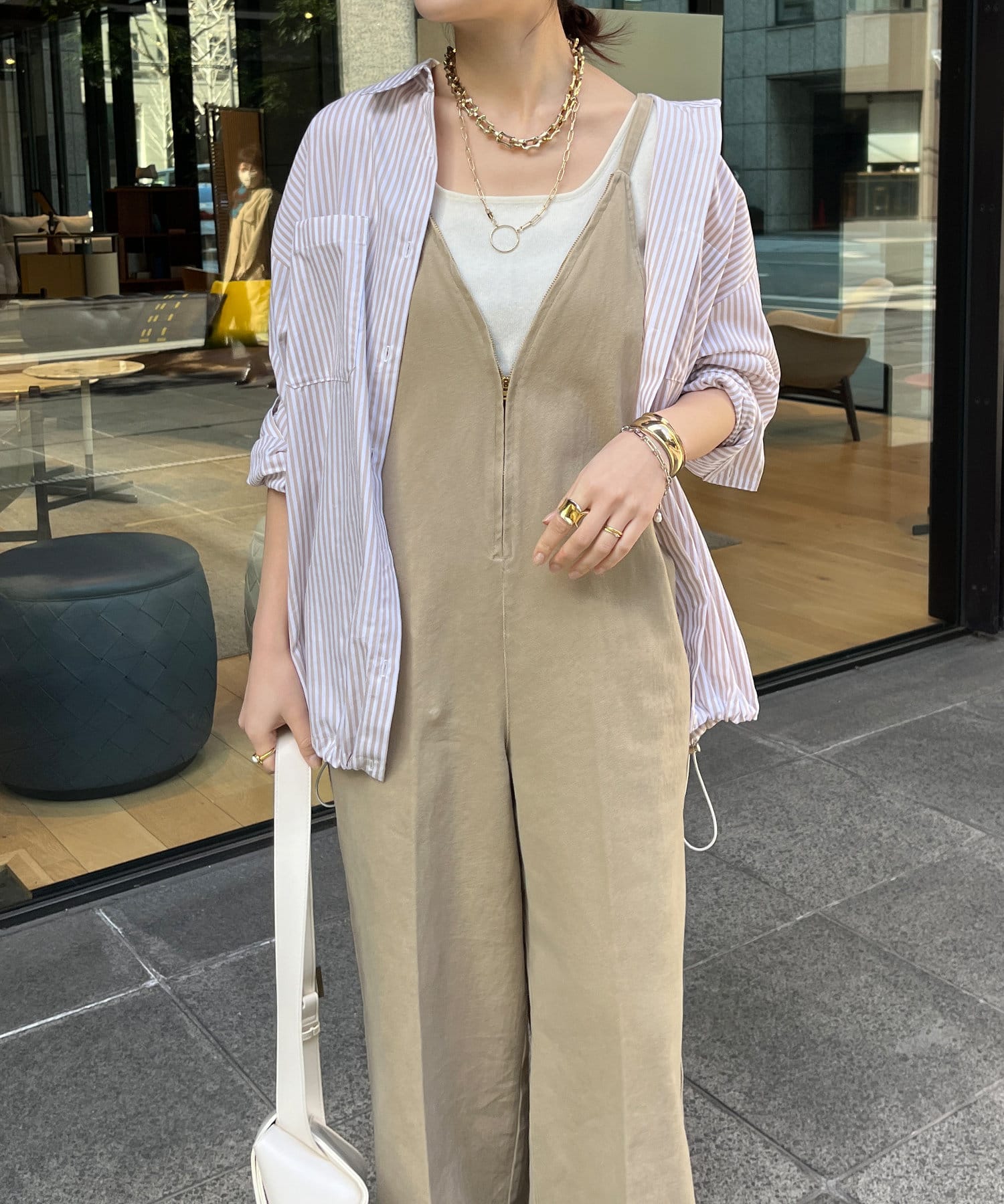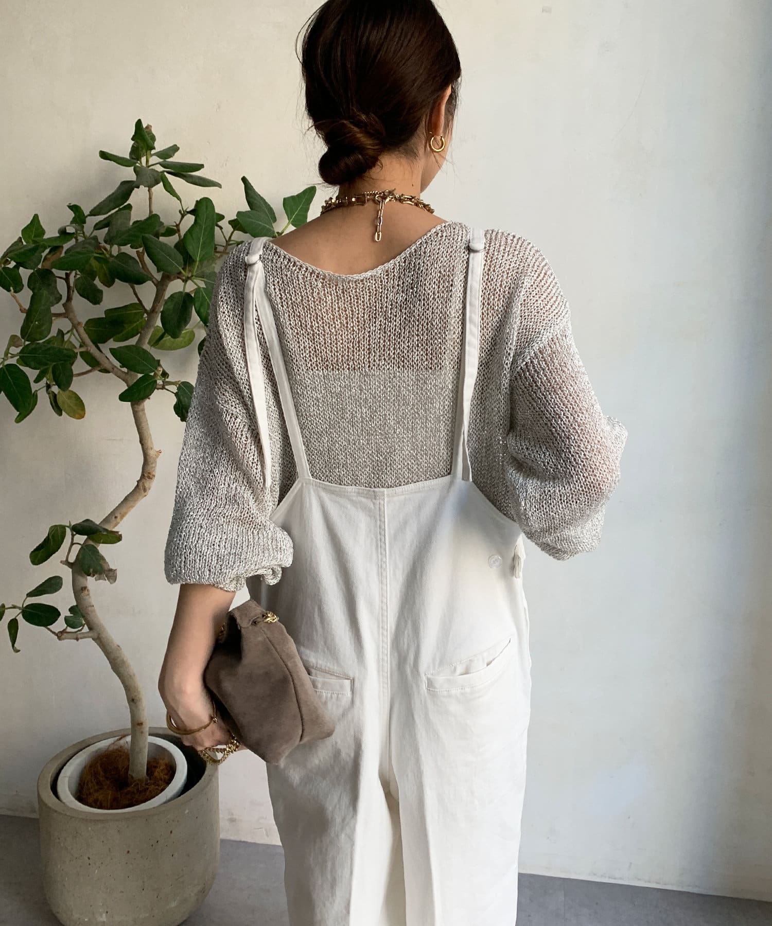ストレスフリーにゆるっと着られるサロペットに女性らしさを垣間見せる華奢な肩紐がバランスの良い1着。