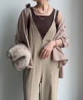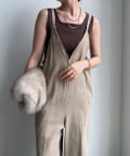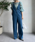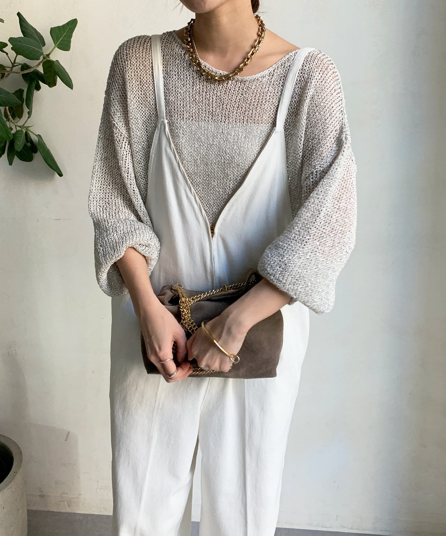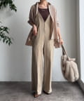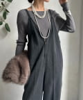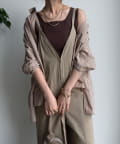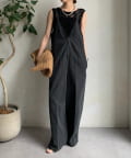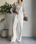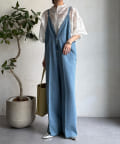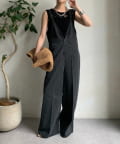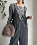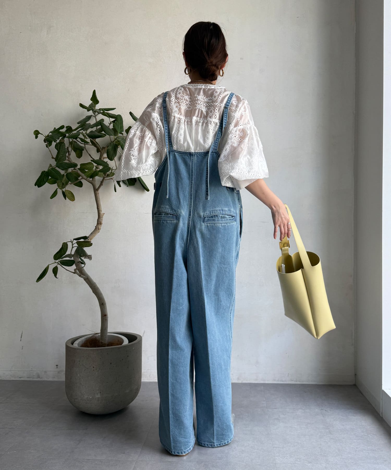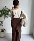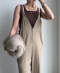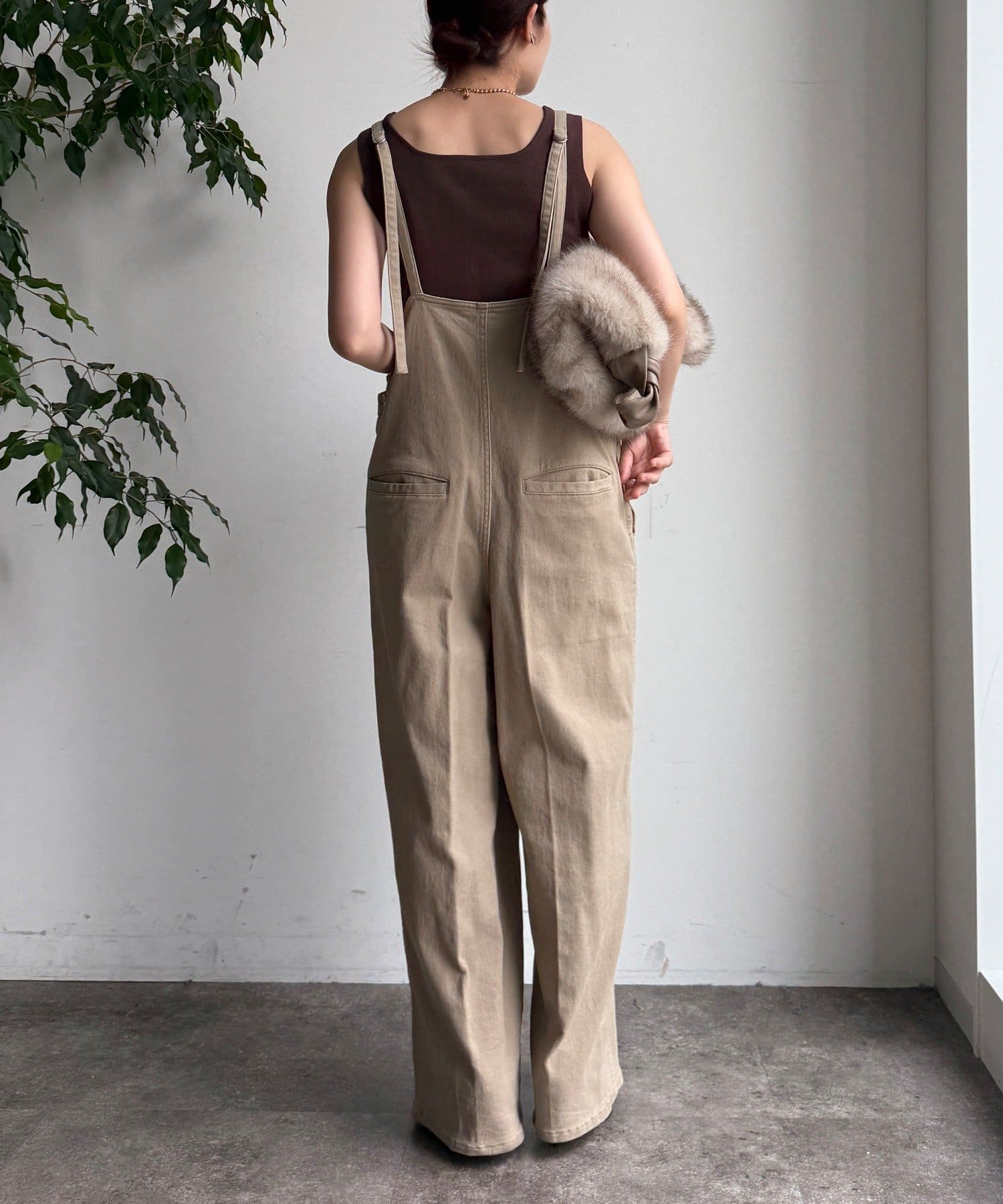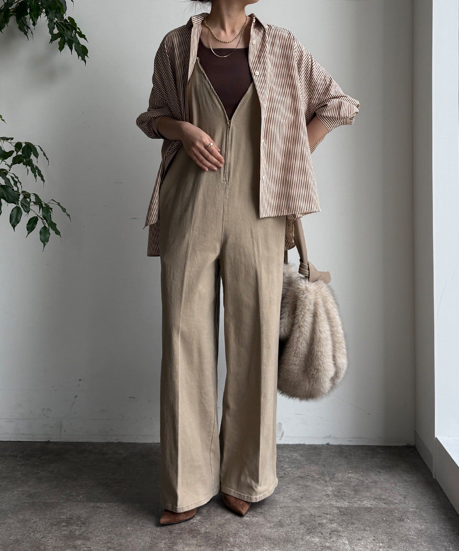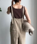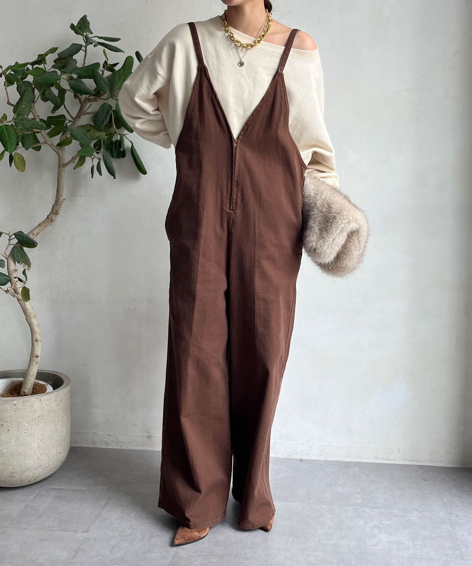 ストレスフリーにゆるっと着られるサロペットに女性らしさを垣間見せる華奢な肩紐がバランスの良い1着。