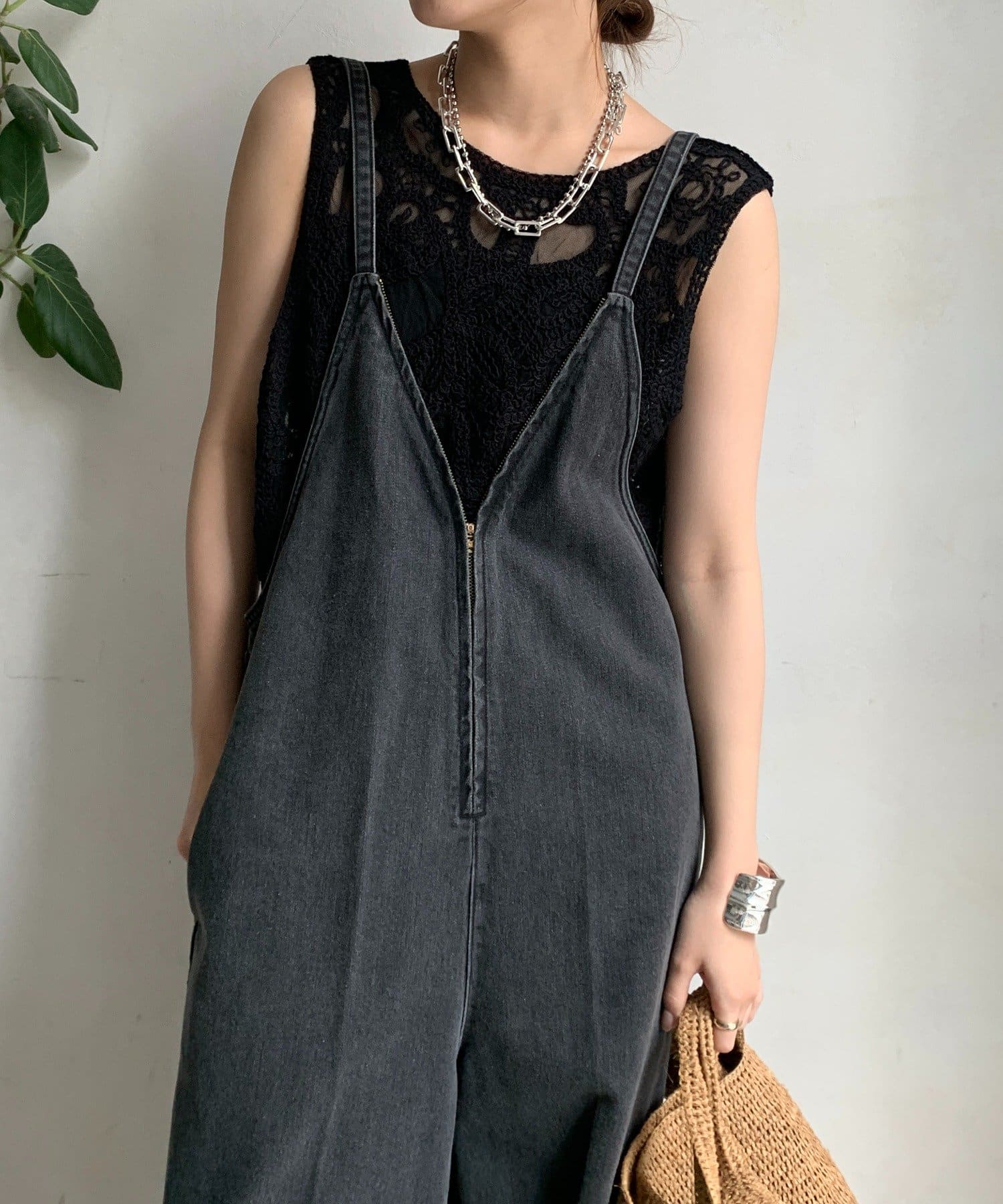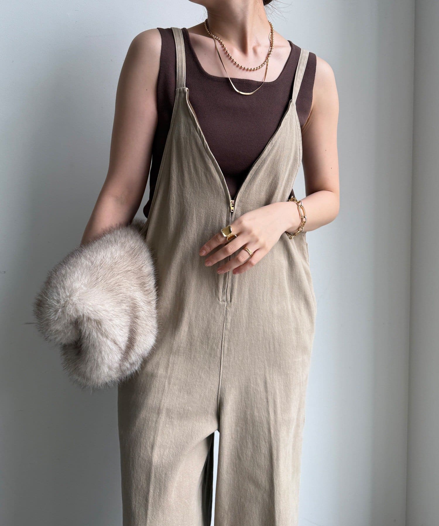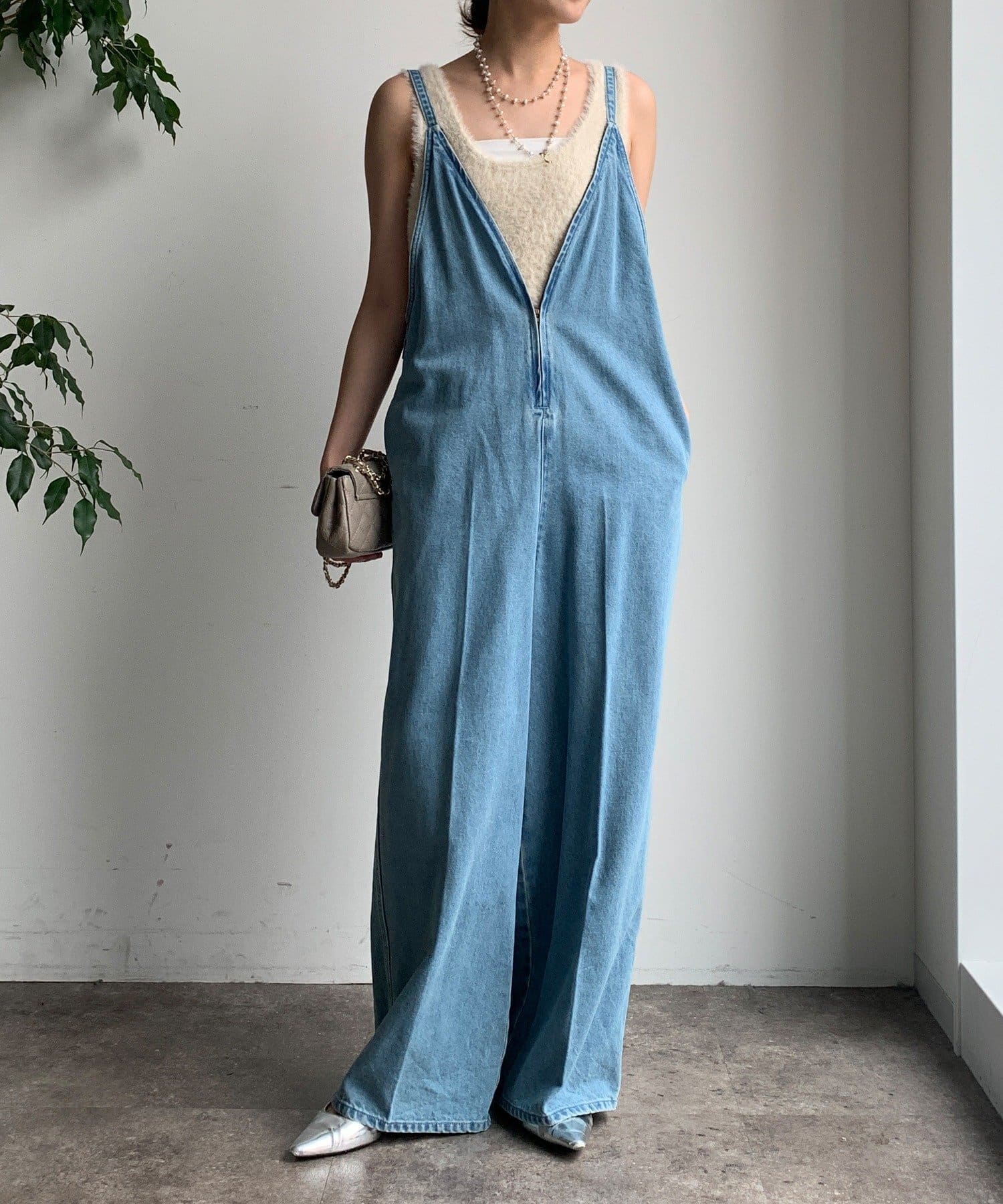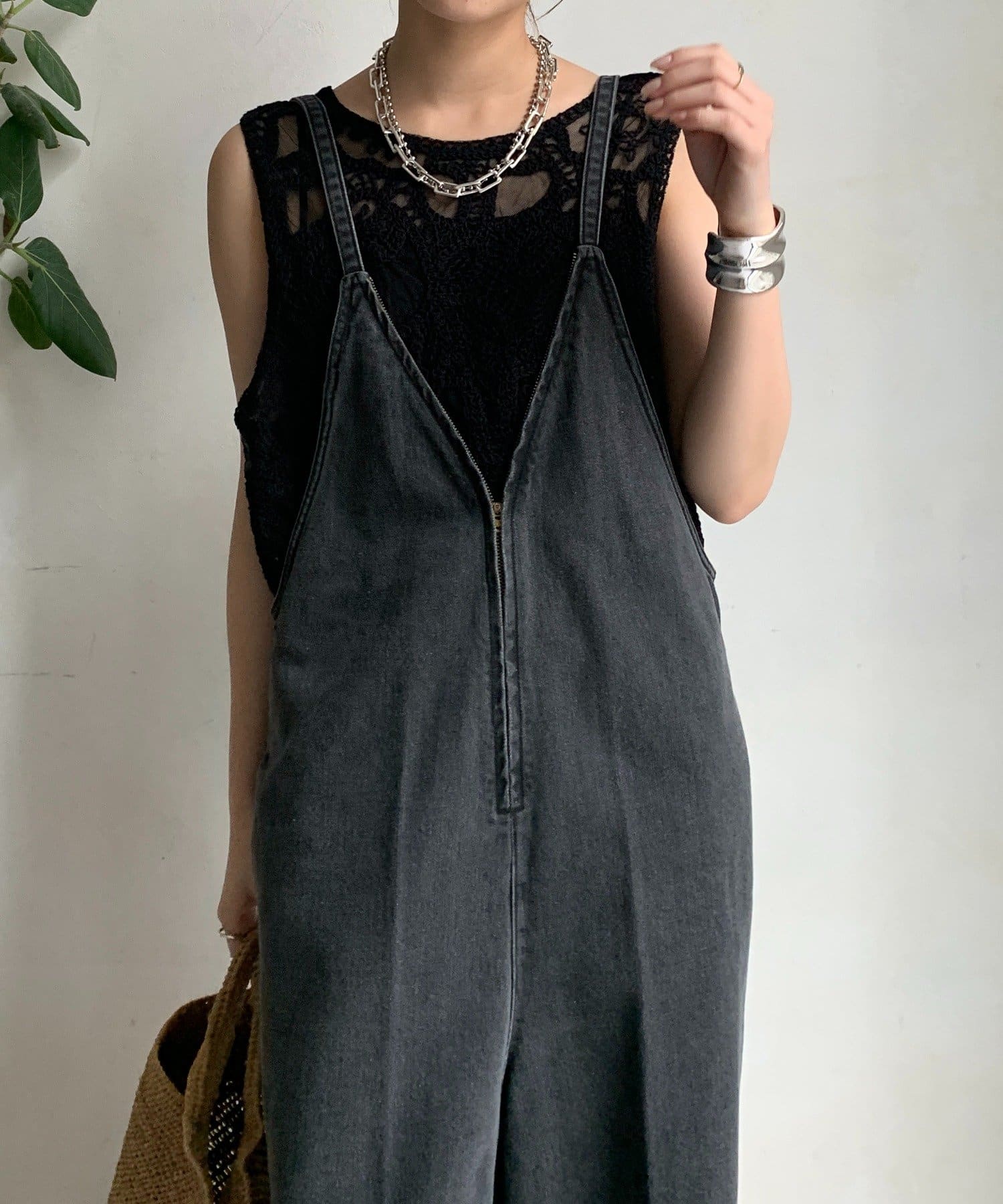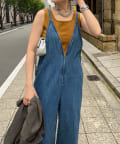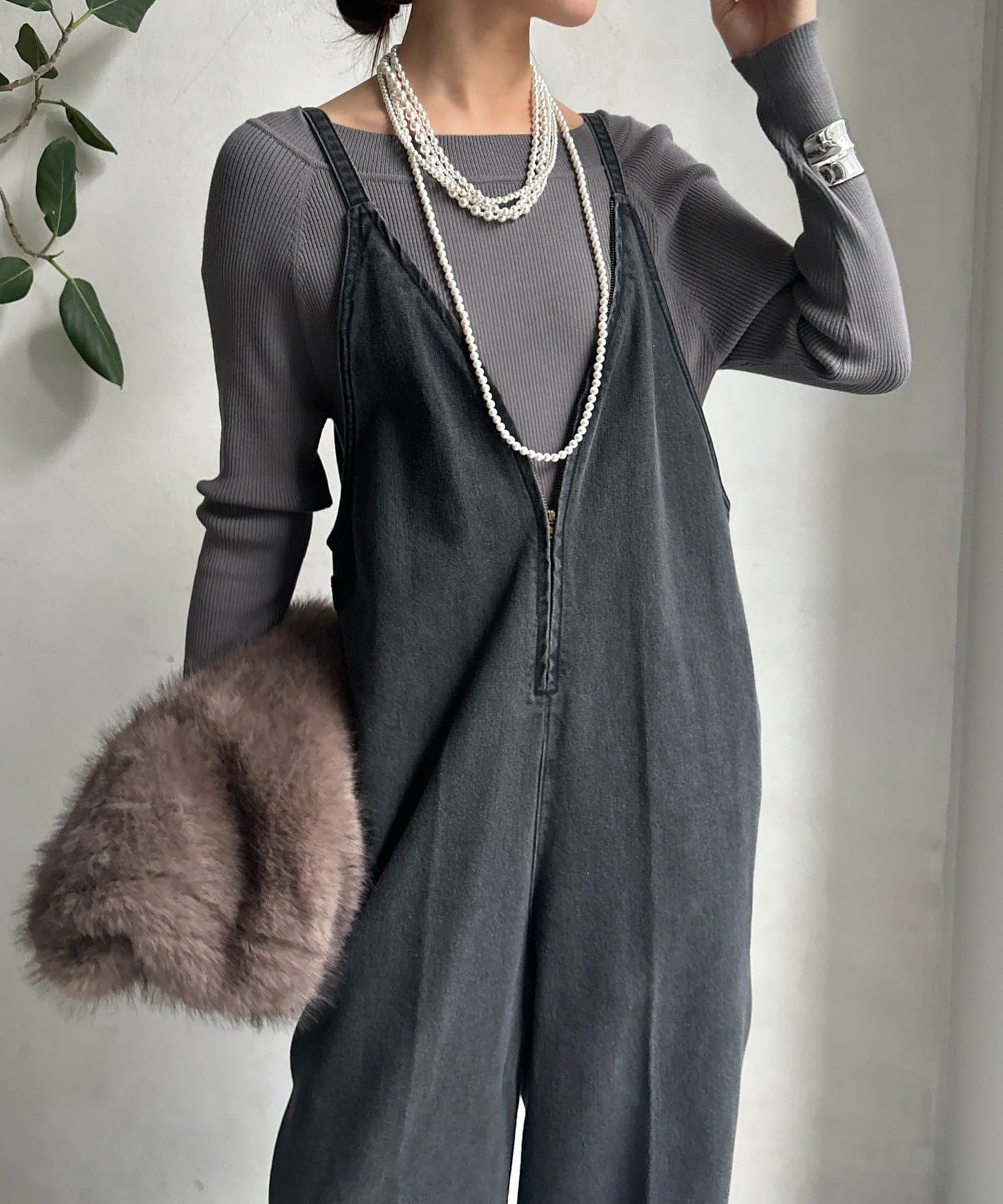 【完売カラー再追加!/サイズ展開あり】細紐デニムフロントジップサロペット