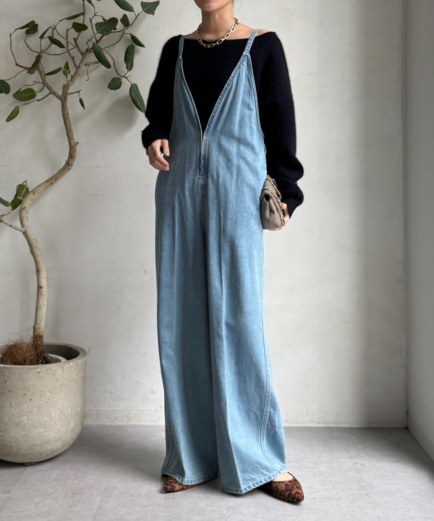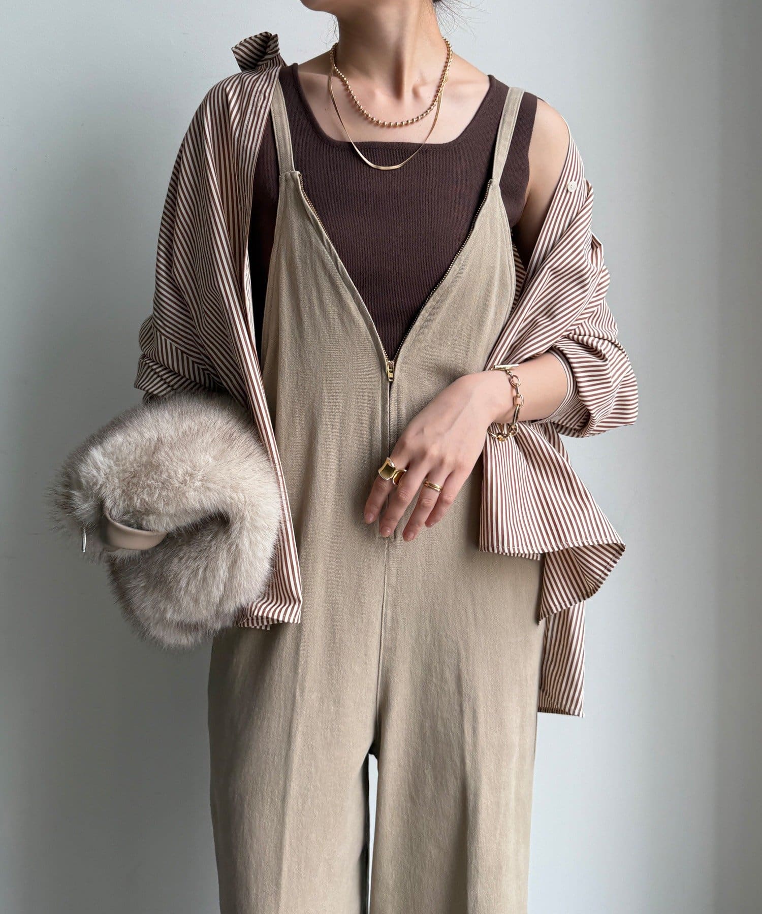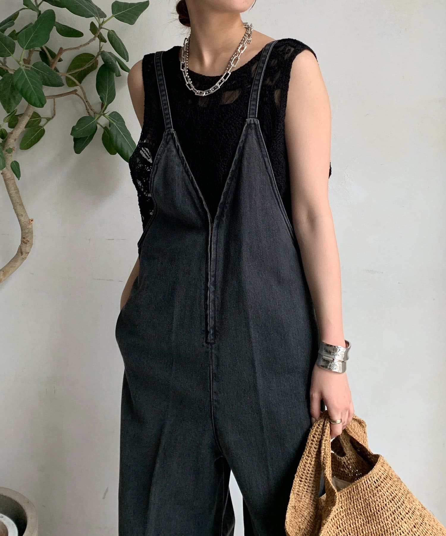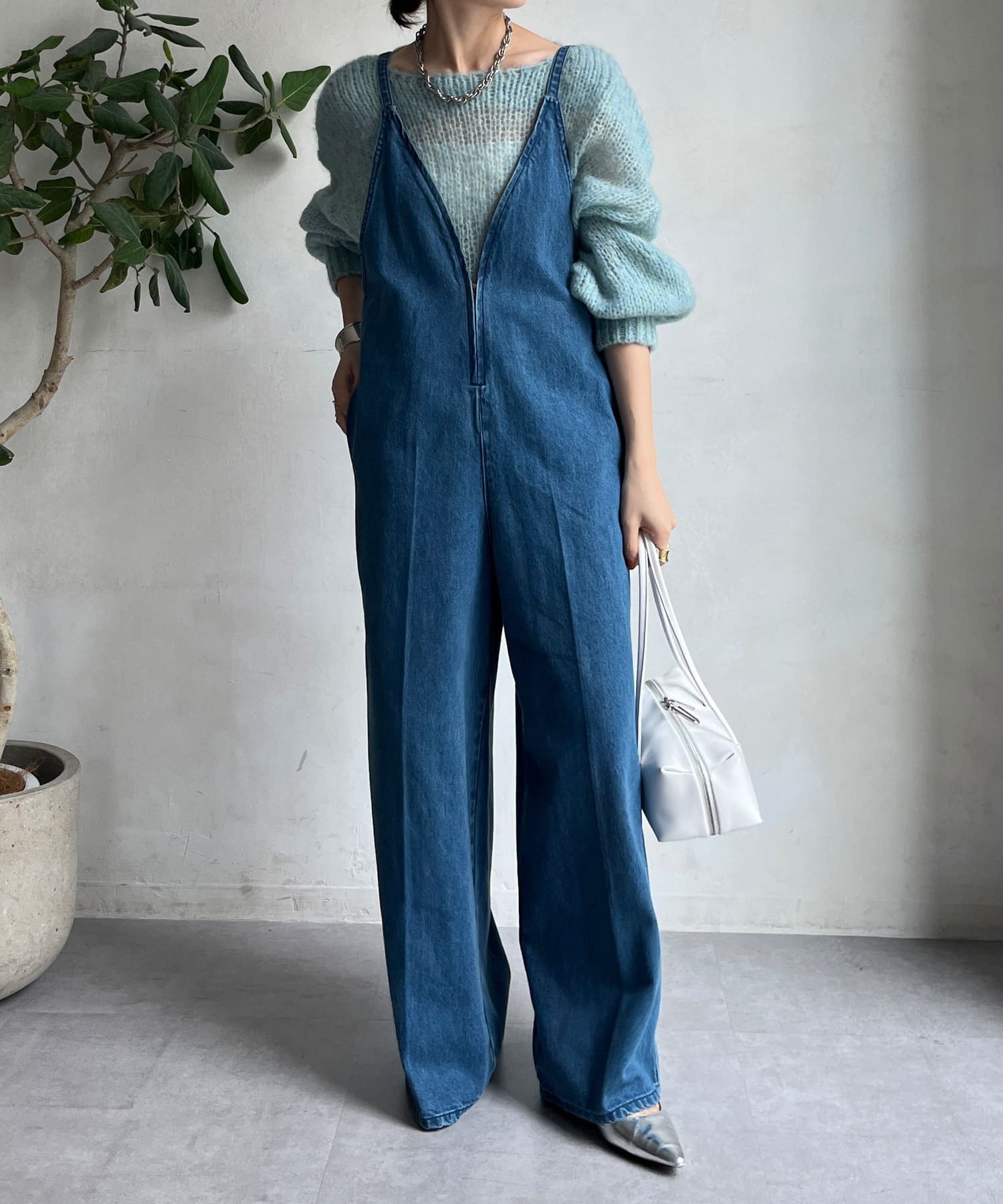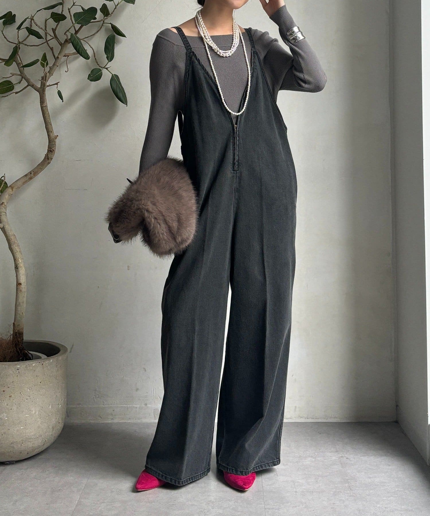 【完売カラー再追加!/サイズ展開あり】細紐デニムフロントジップサロペット