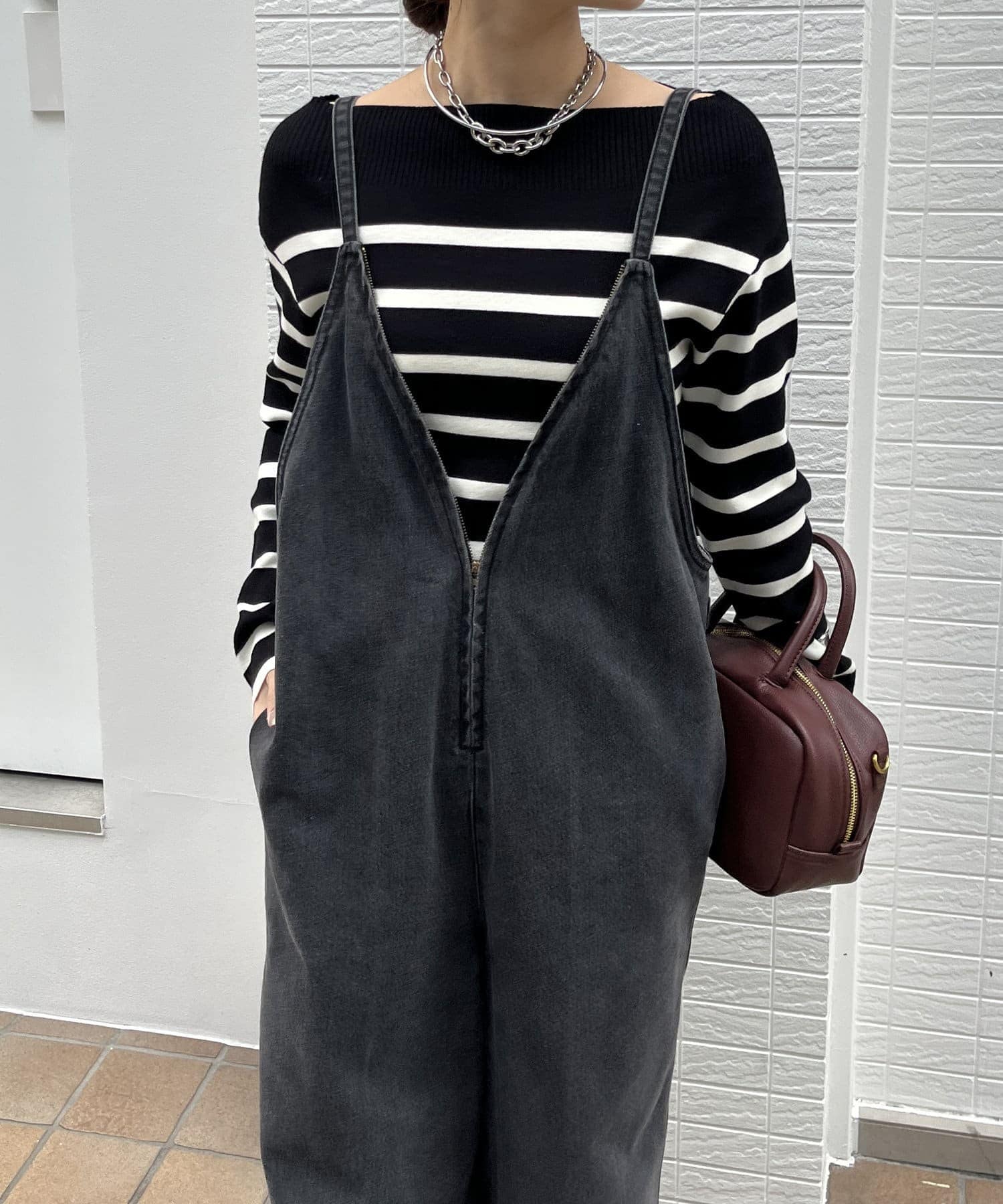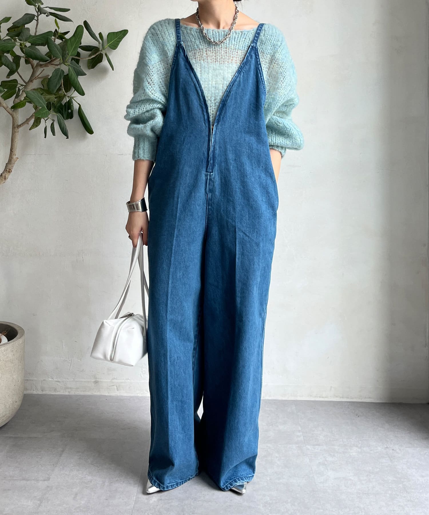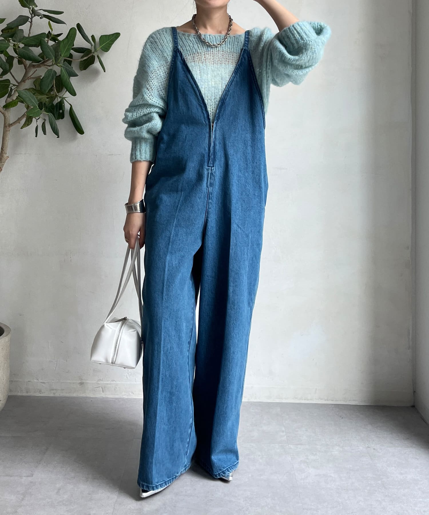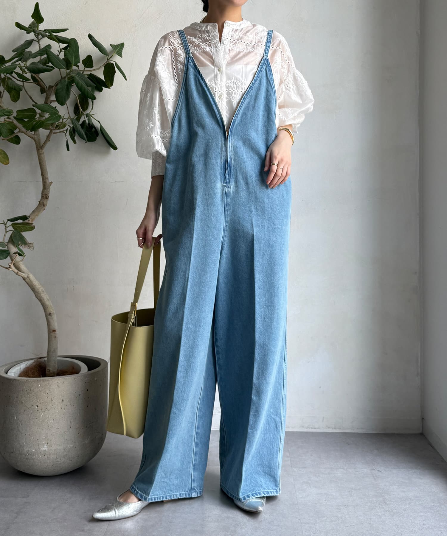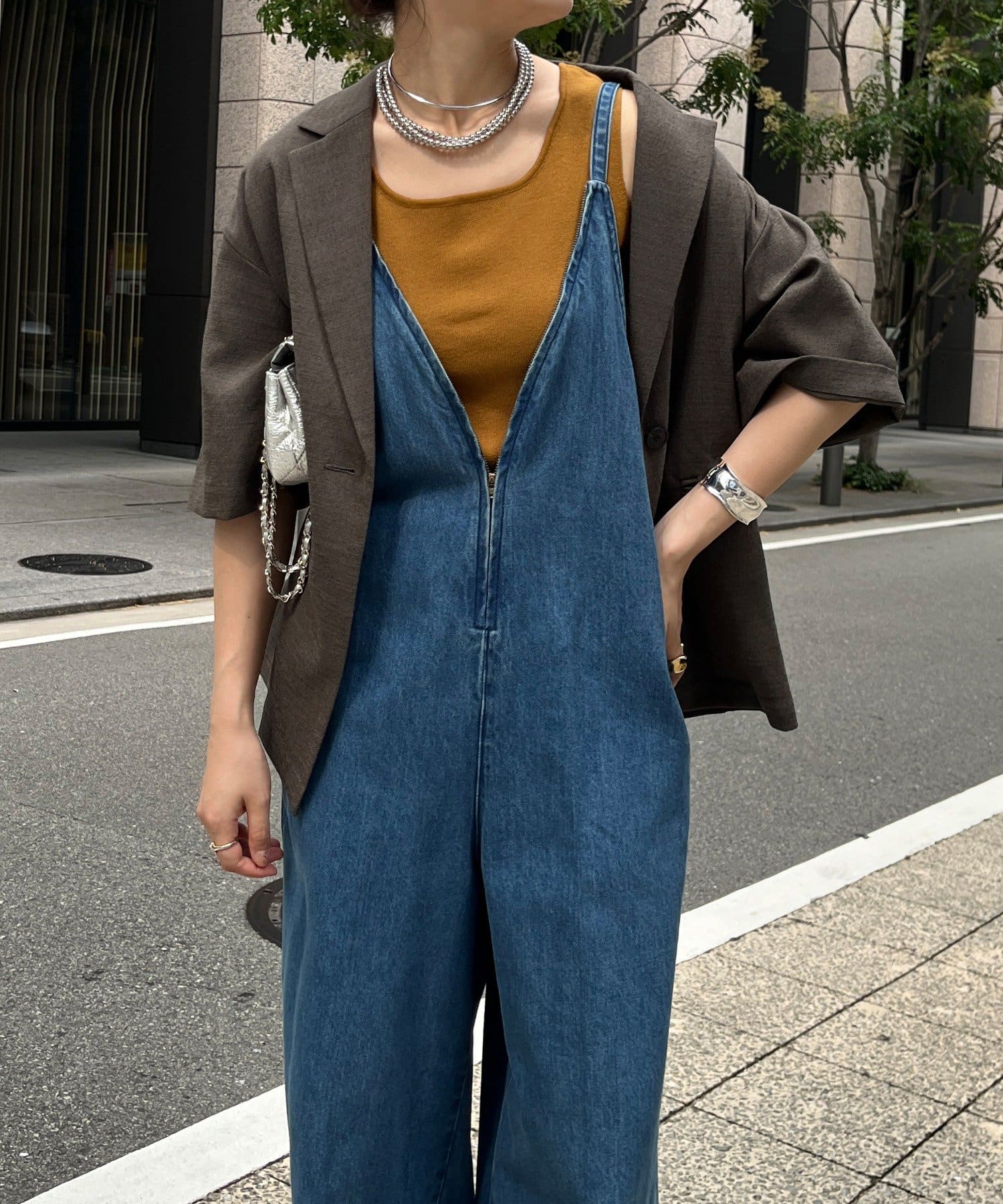 【完売カラー再追加!/サイズ展開あり】細紐デニムフロントジップサロペット