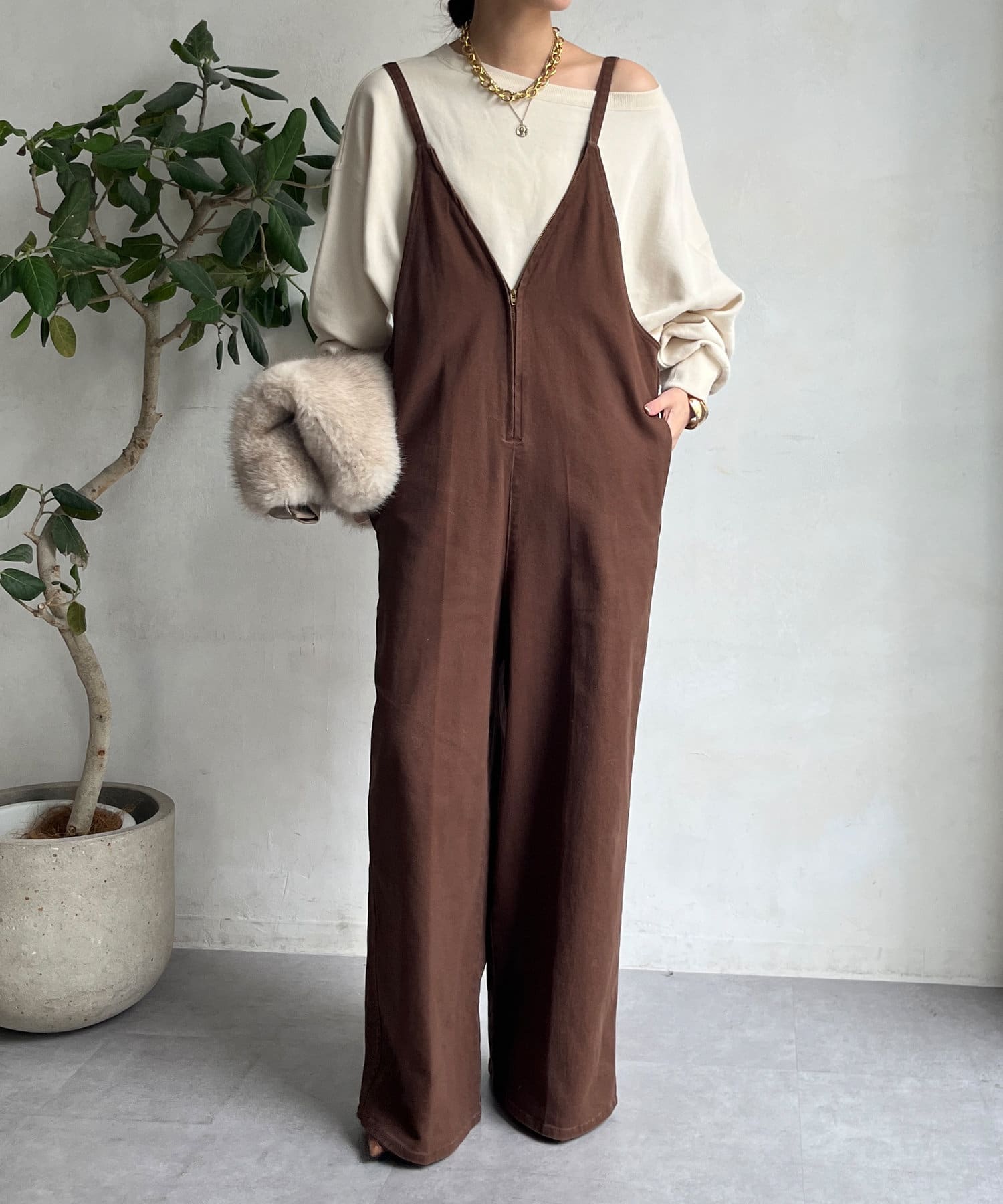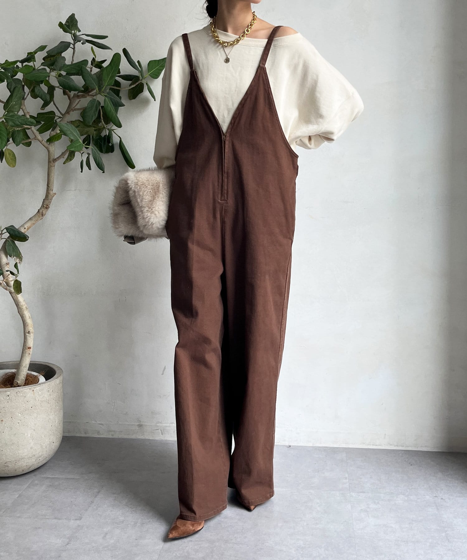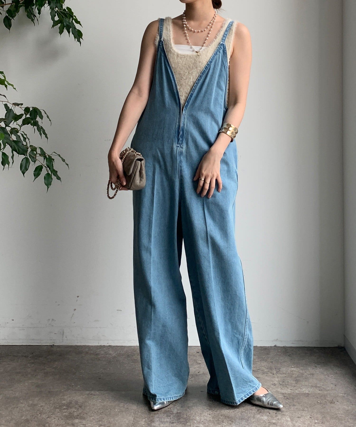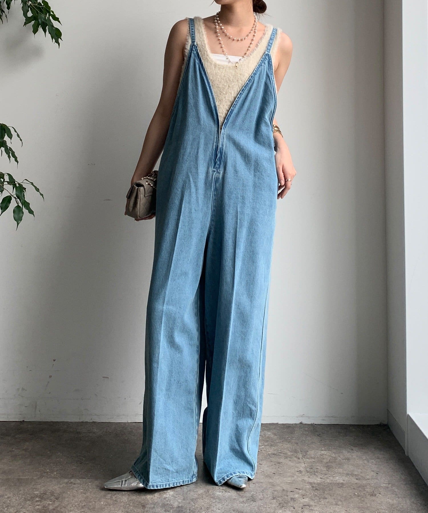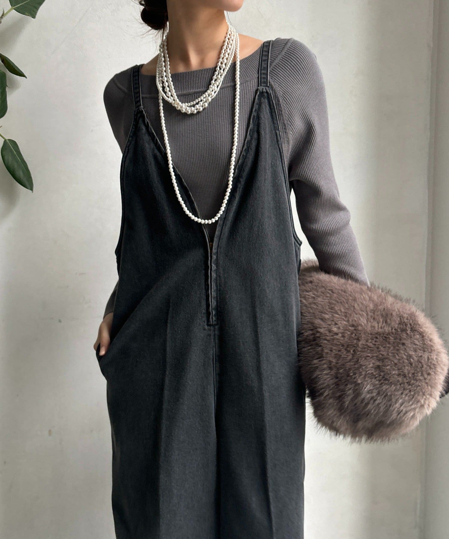 【完売カラー再追加!/サイズ展開あり】細紐デニムフロントジップサロペット