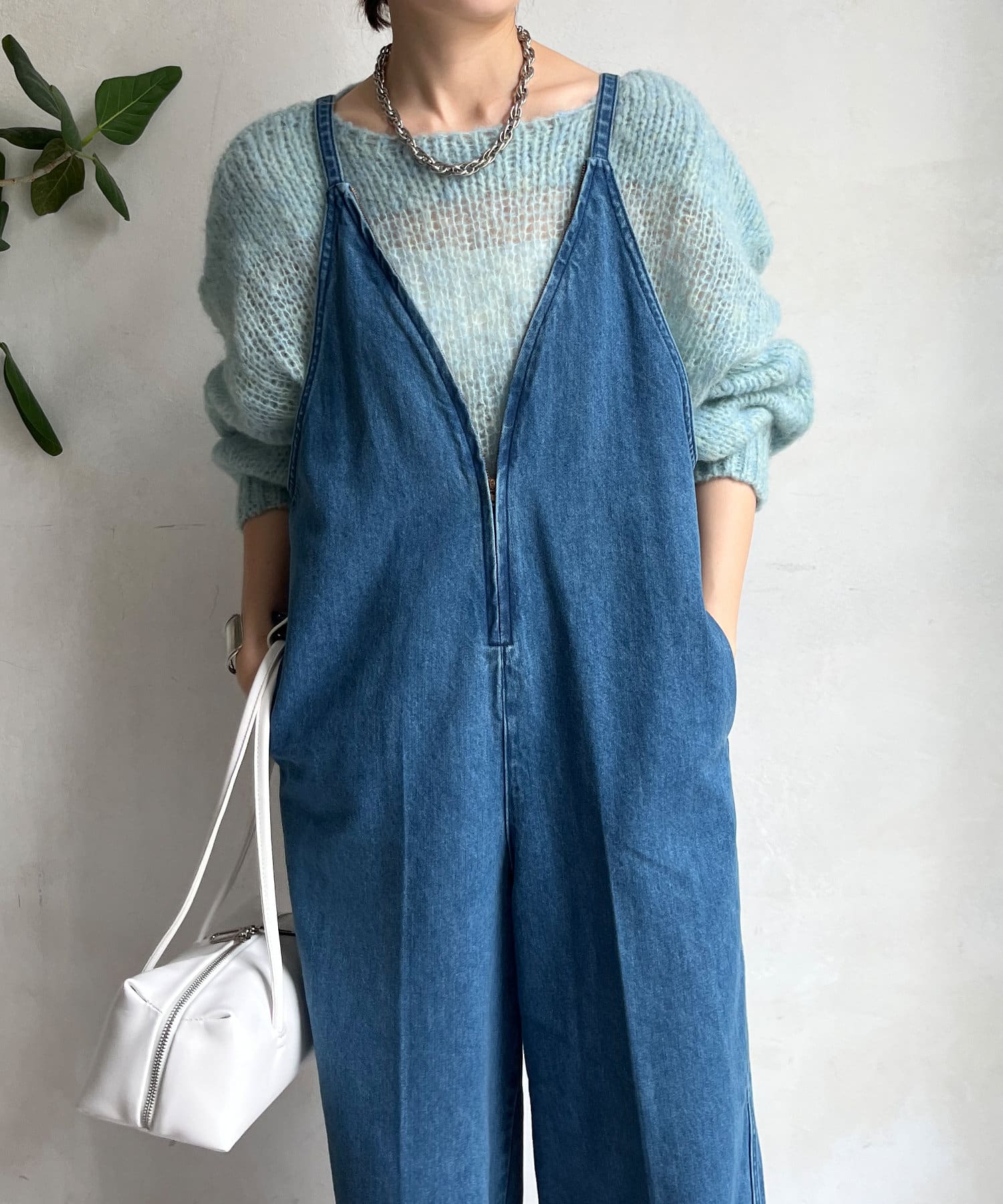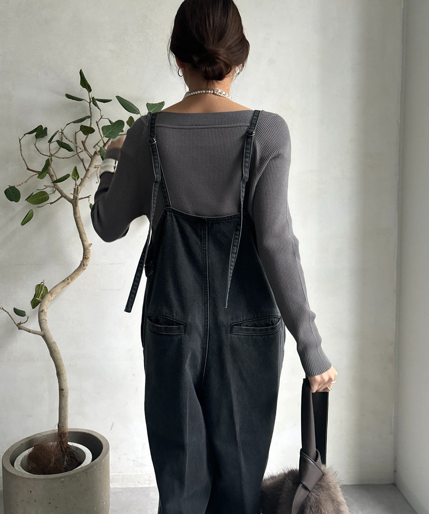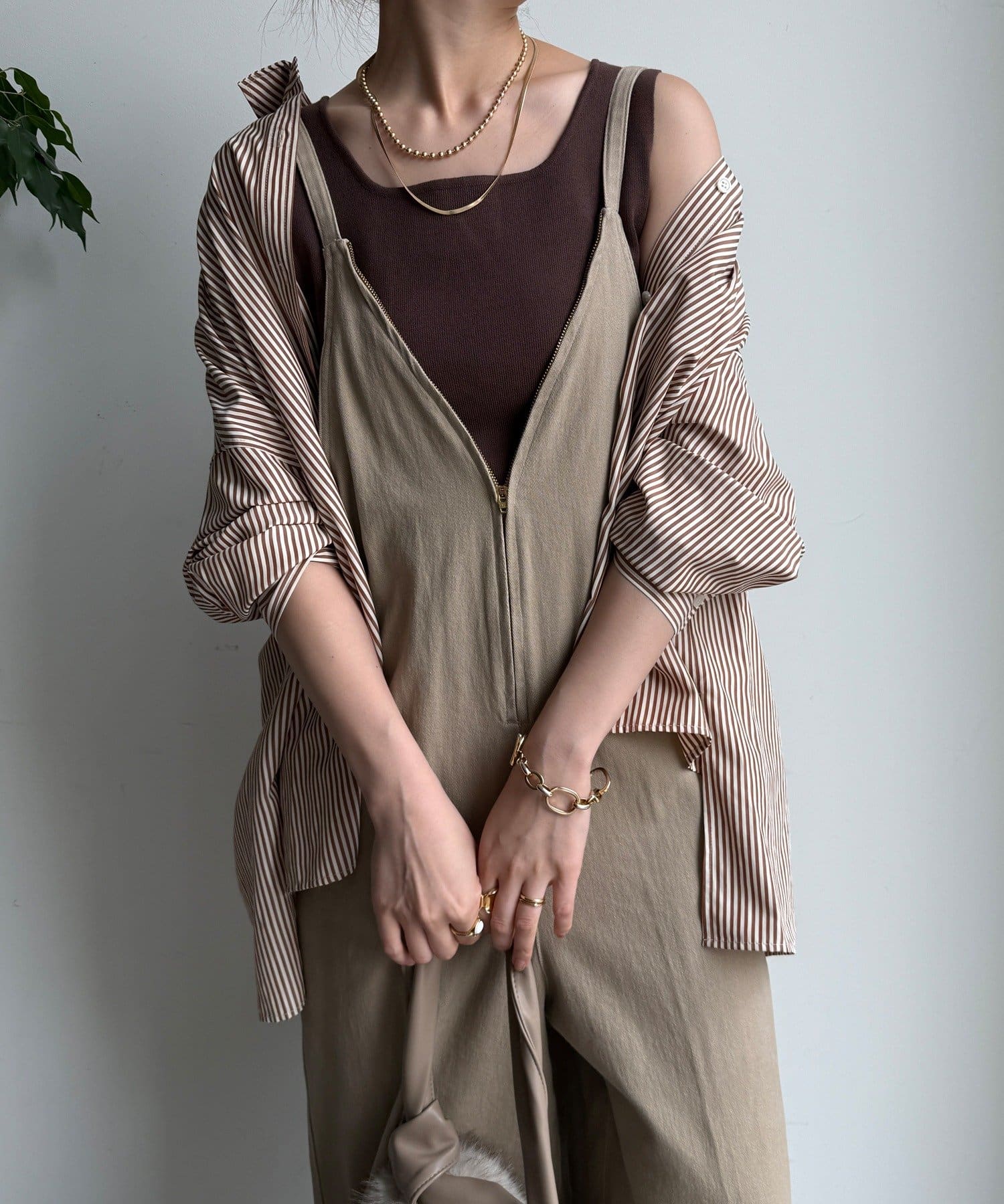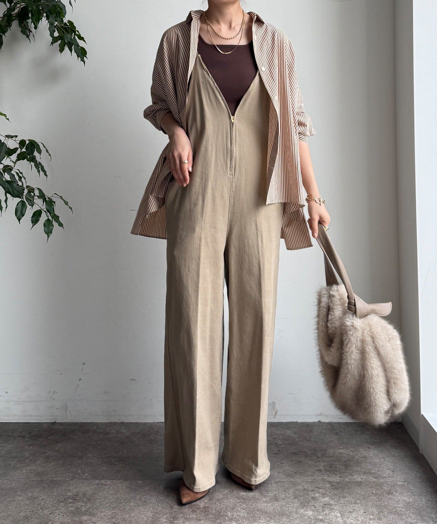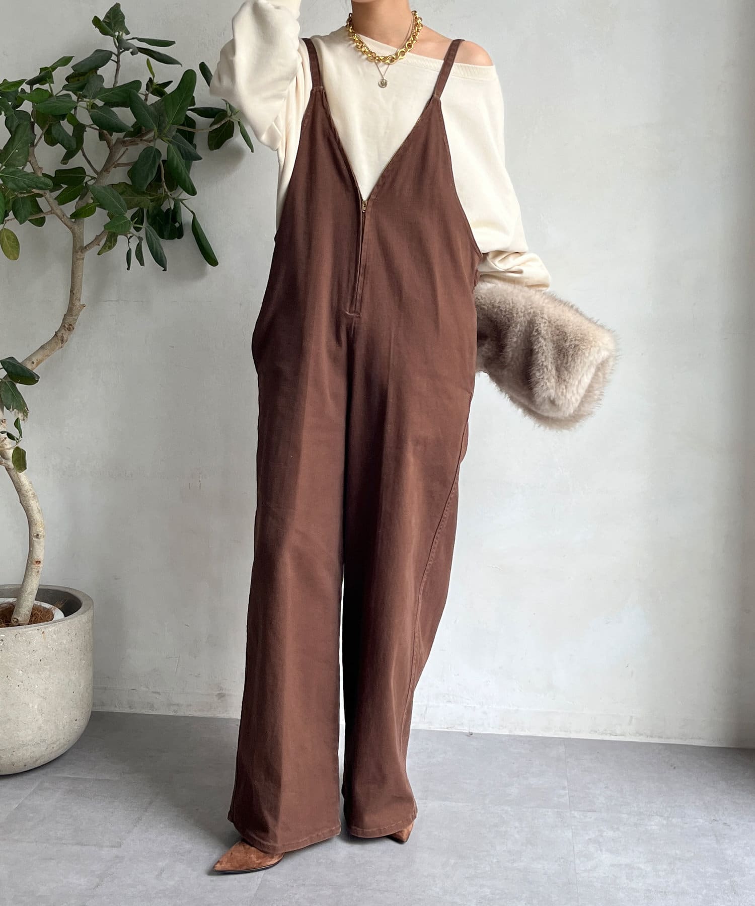 【完売カラー再追加!/サイズ展開あり】細紐デニムフロントジップサロペット