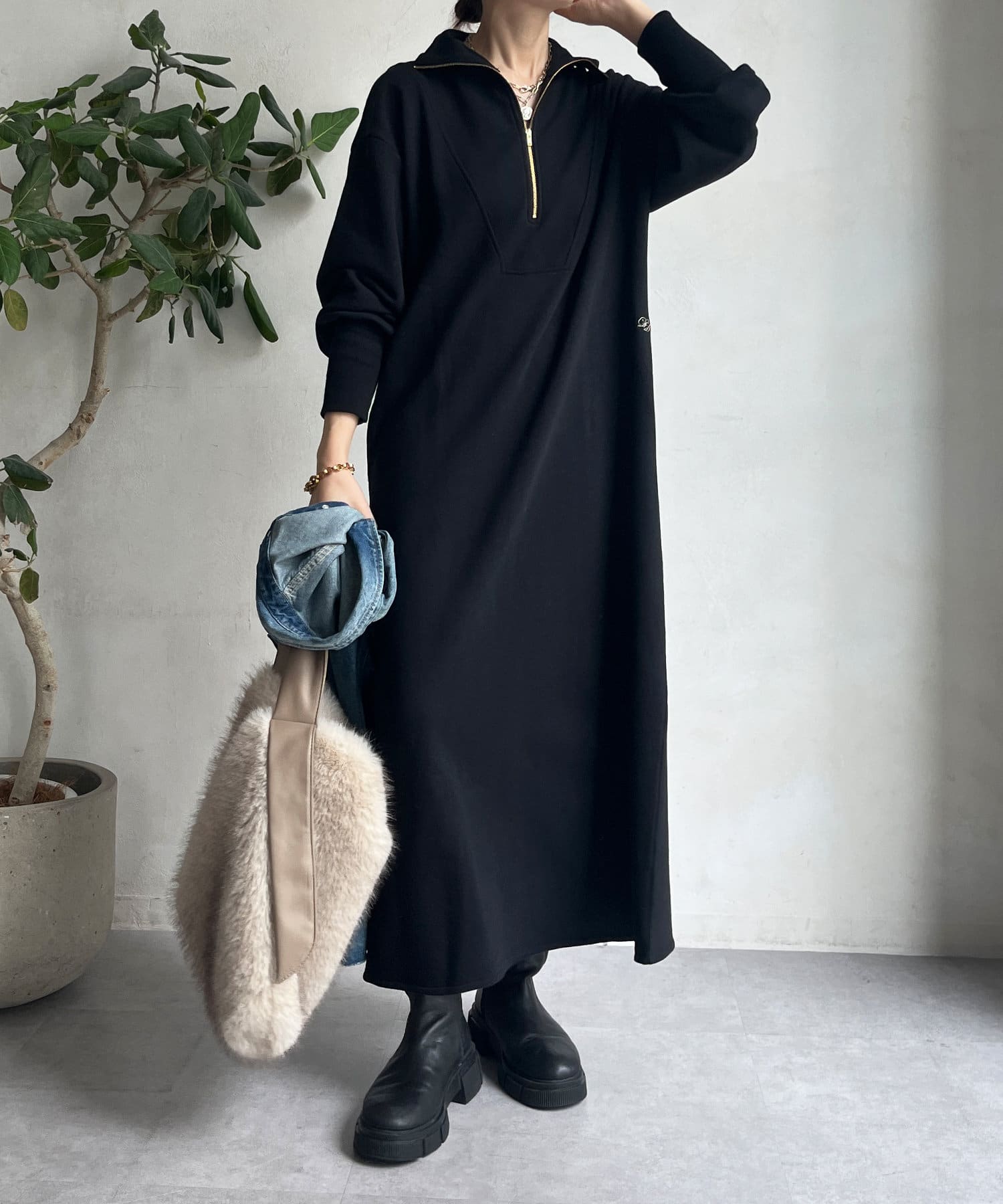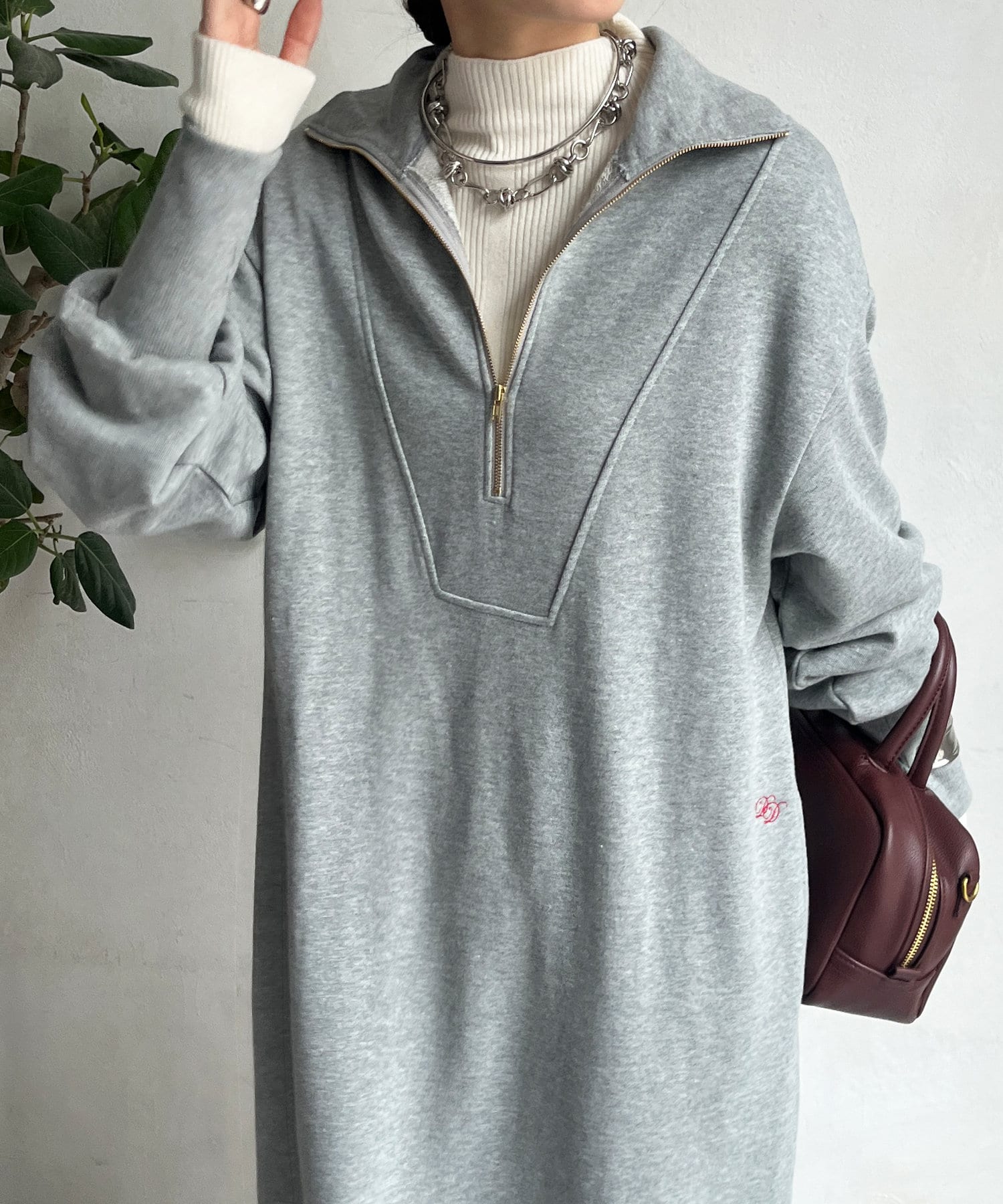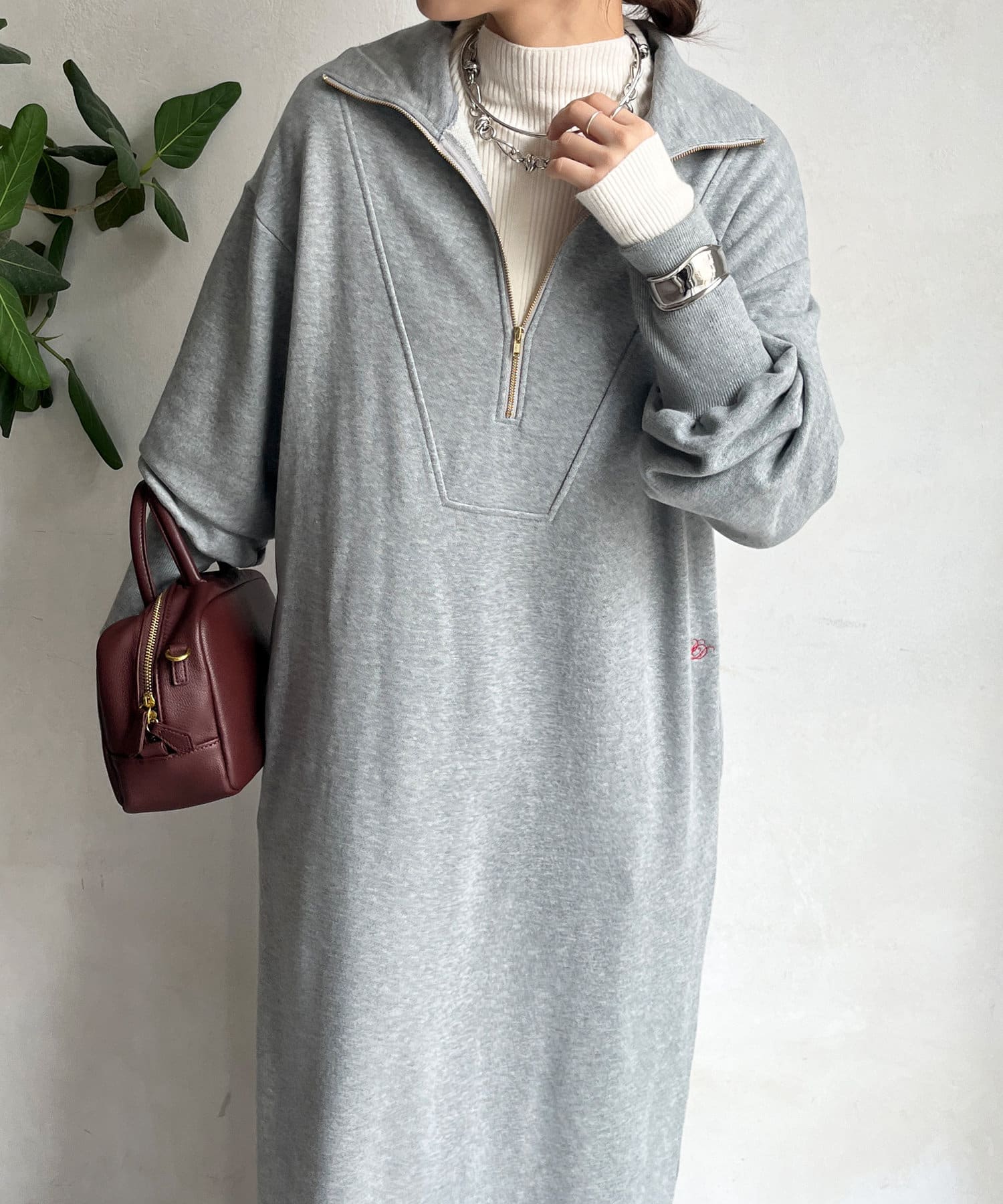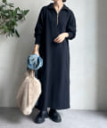 【SAKURA 企画】刺繍スウェットハーフジップワンピース