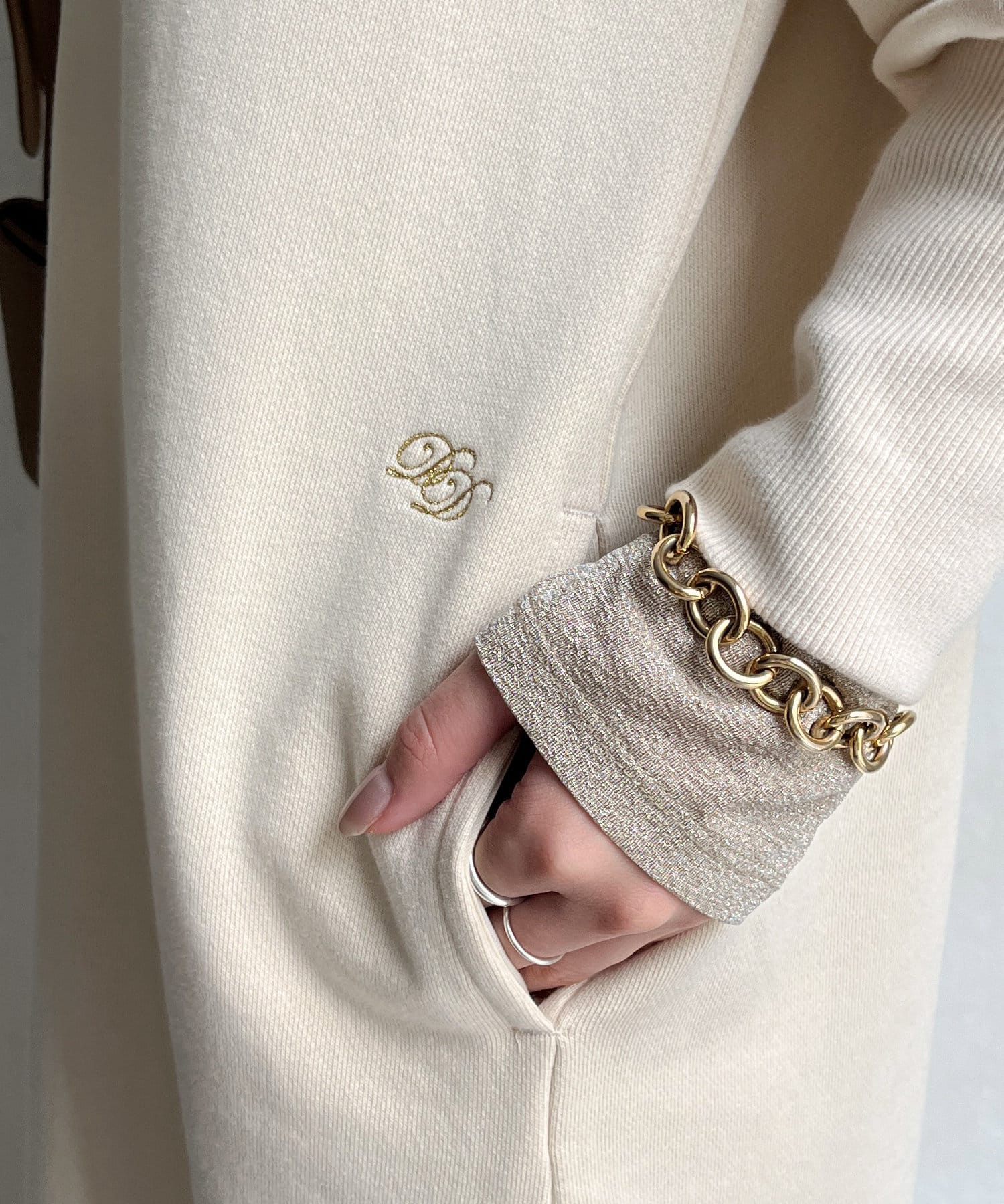 そして、ワンピースにポケットが付いているのはとってもうれしいポイント。左ポケット付近にはカラー選びにこだわった刺繍デザインをプラスしています。