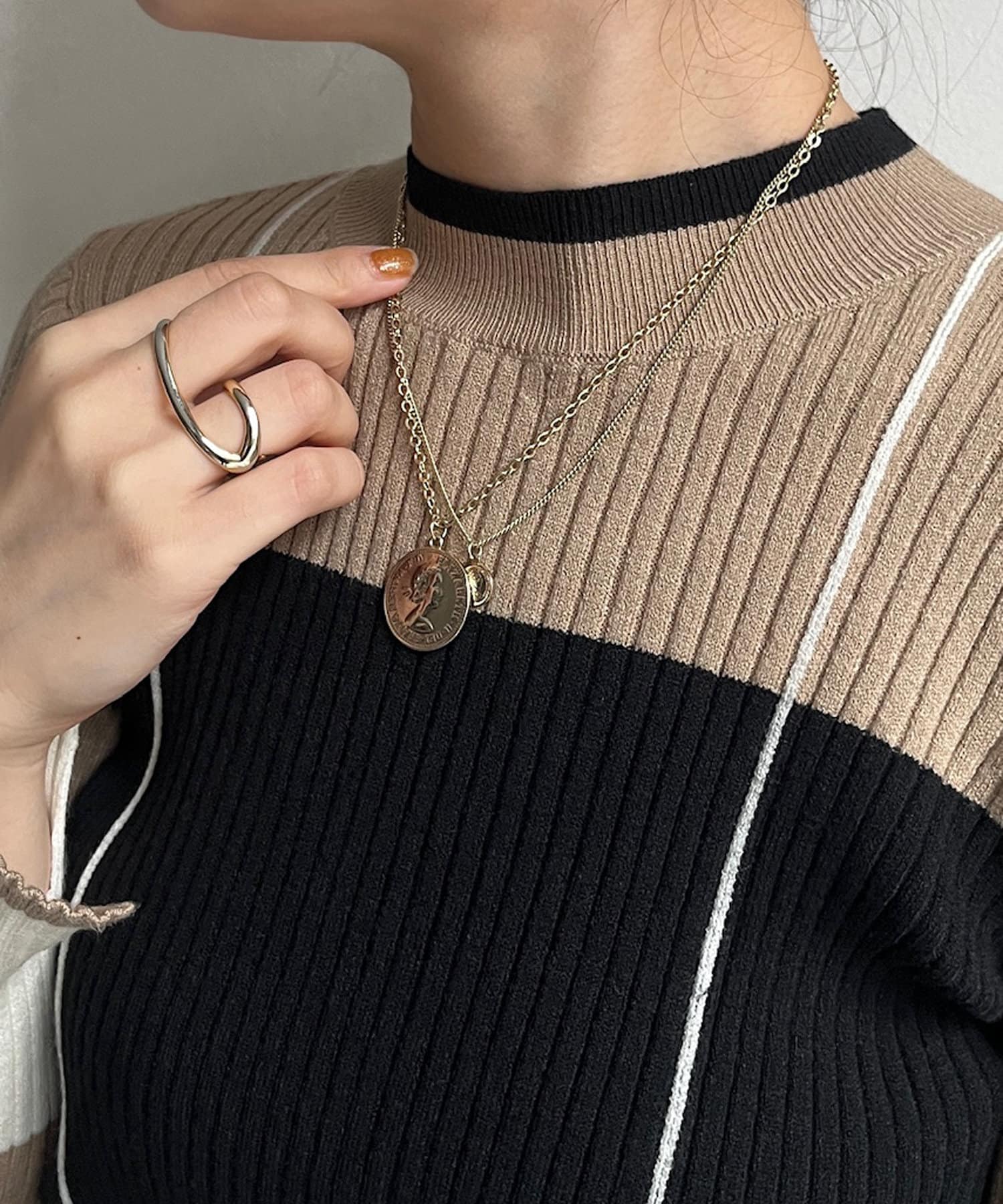 コインのパーツを2つあしらうことで、重ね付けしたようなおしゃれ感漂うデザインに。