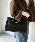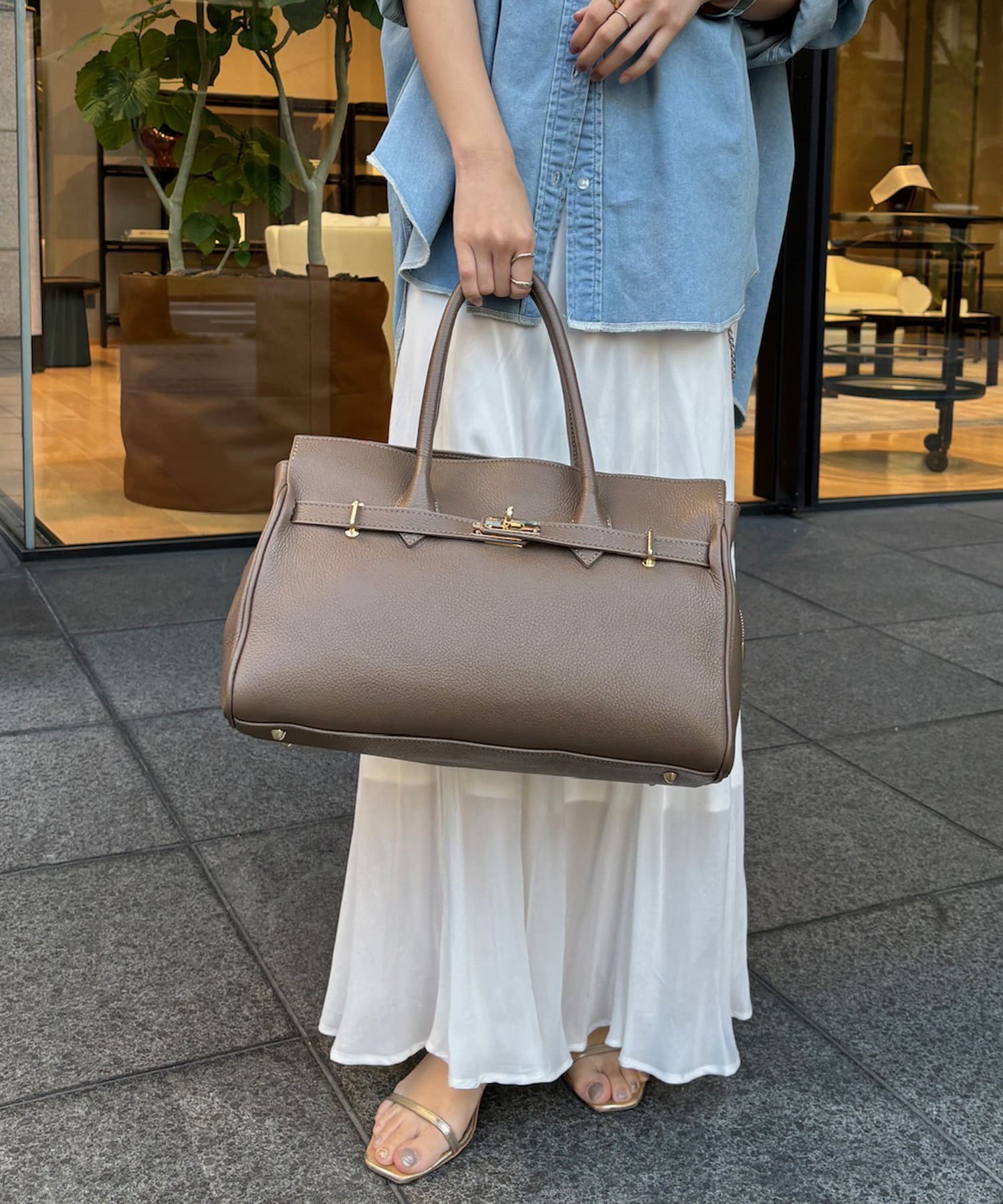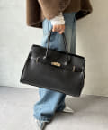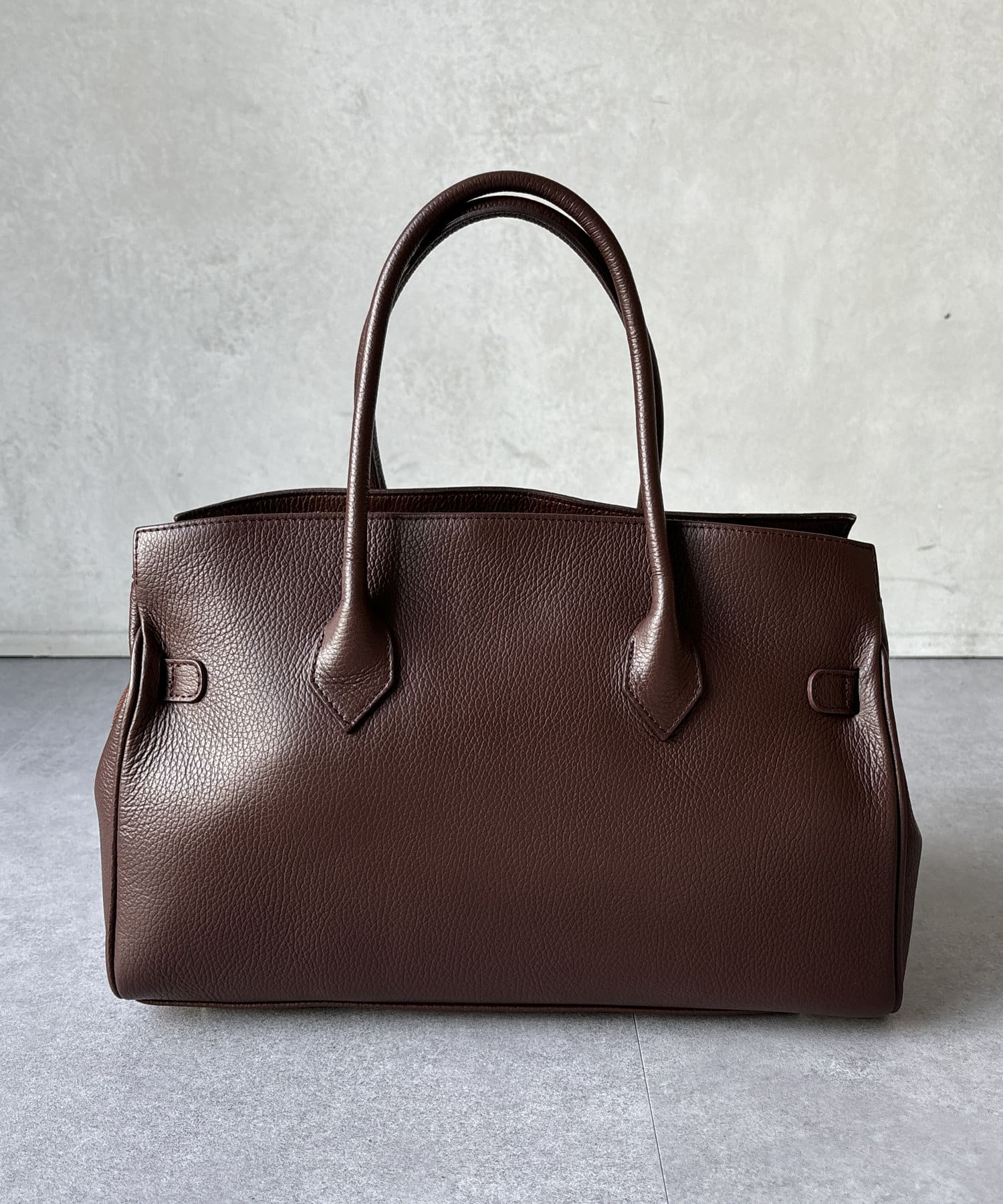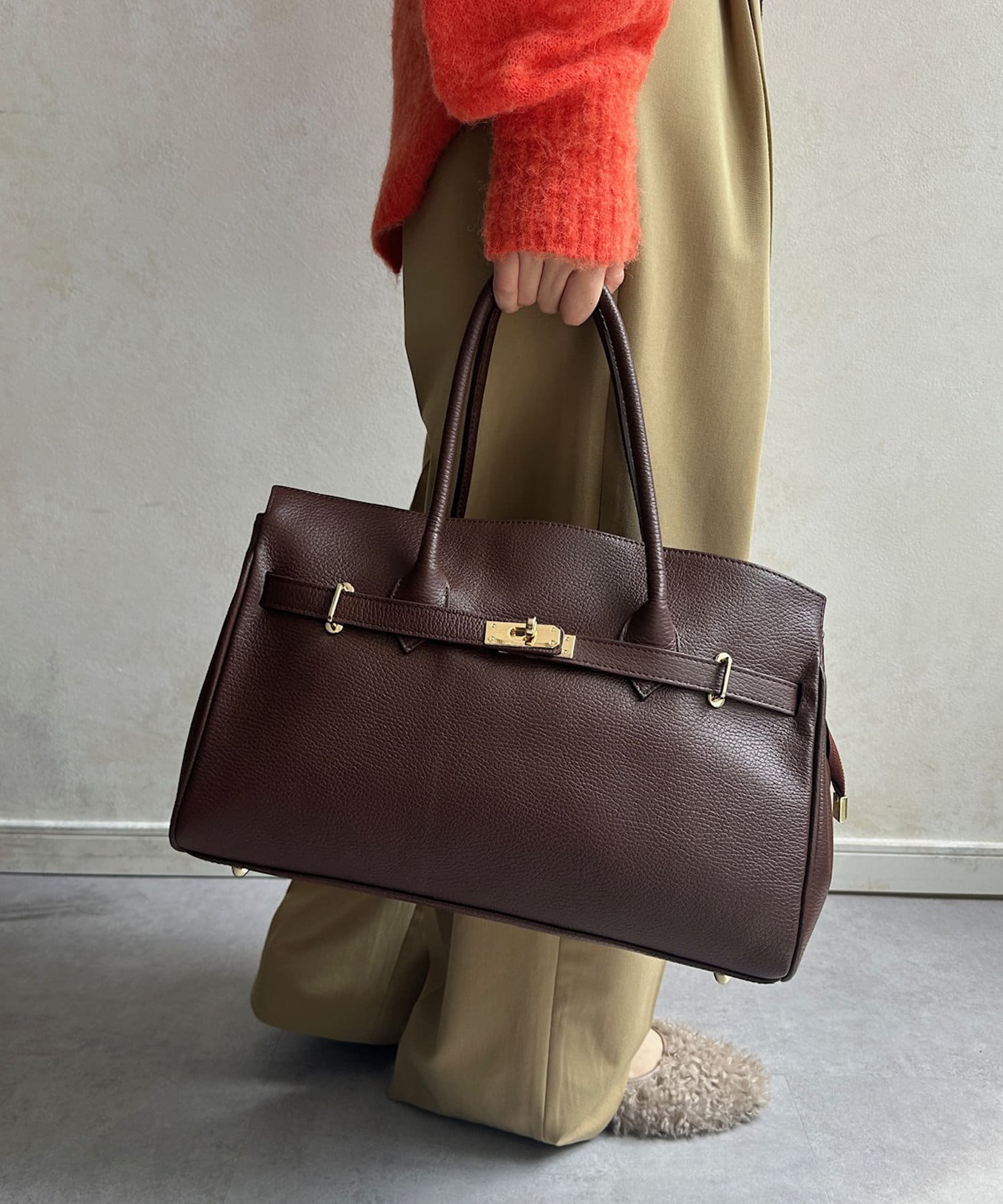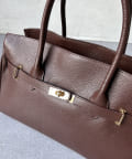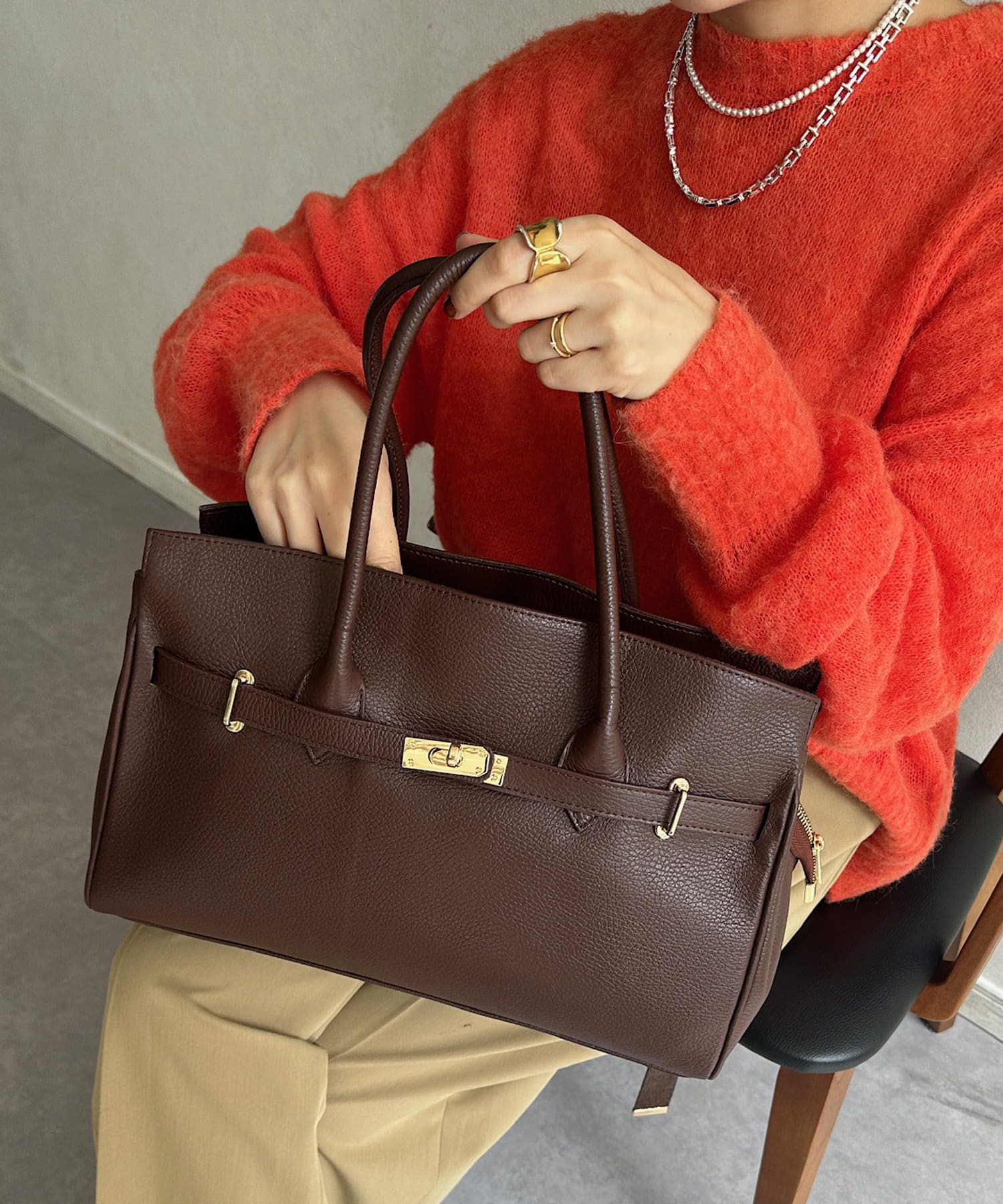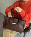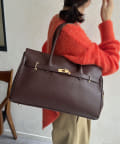 深みのあるカラーと、ゴールドの金具で高級感のあるトートバッグ。