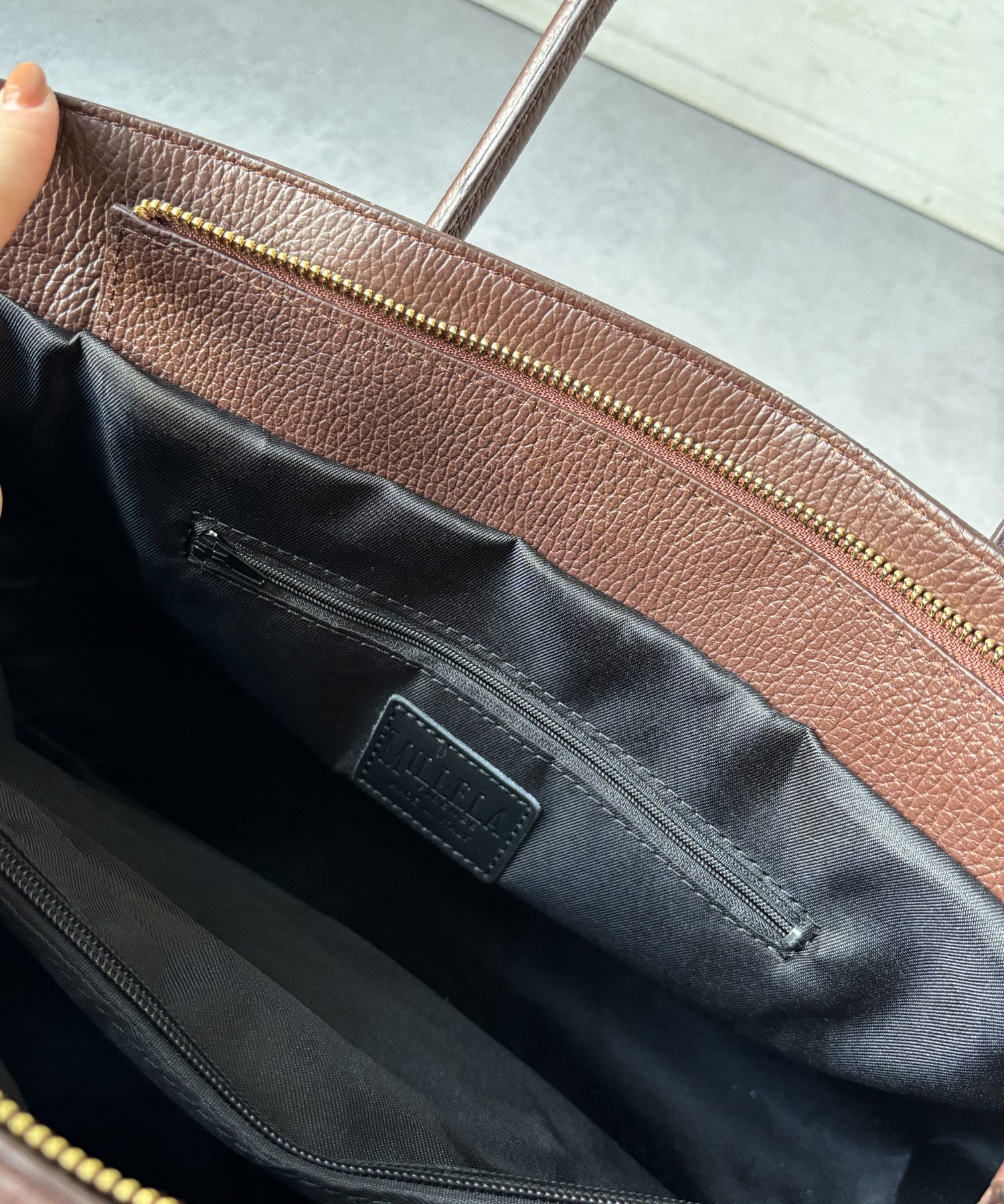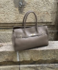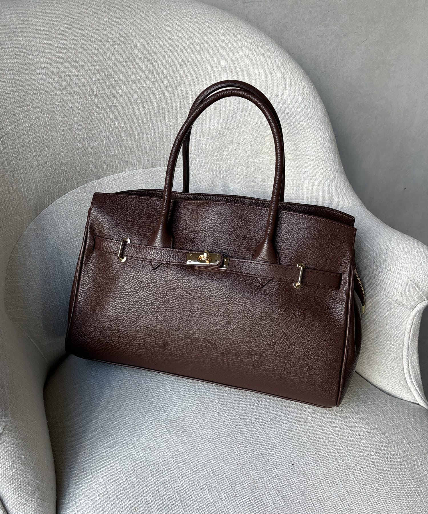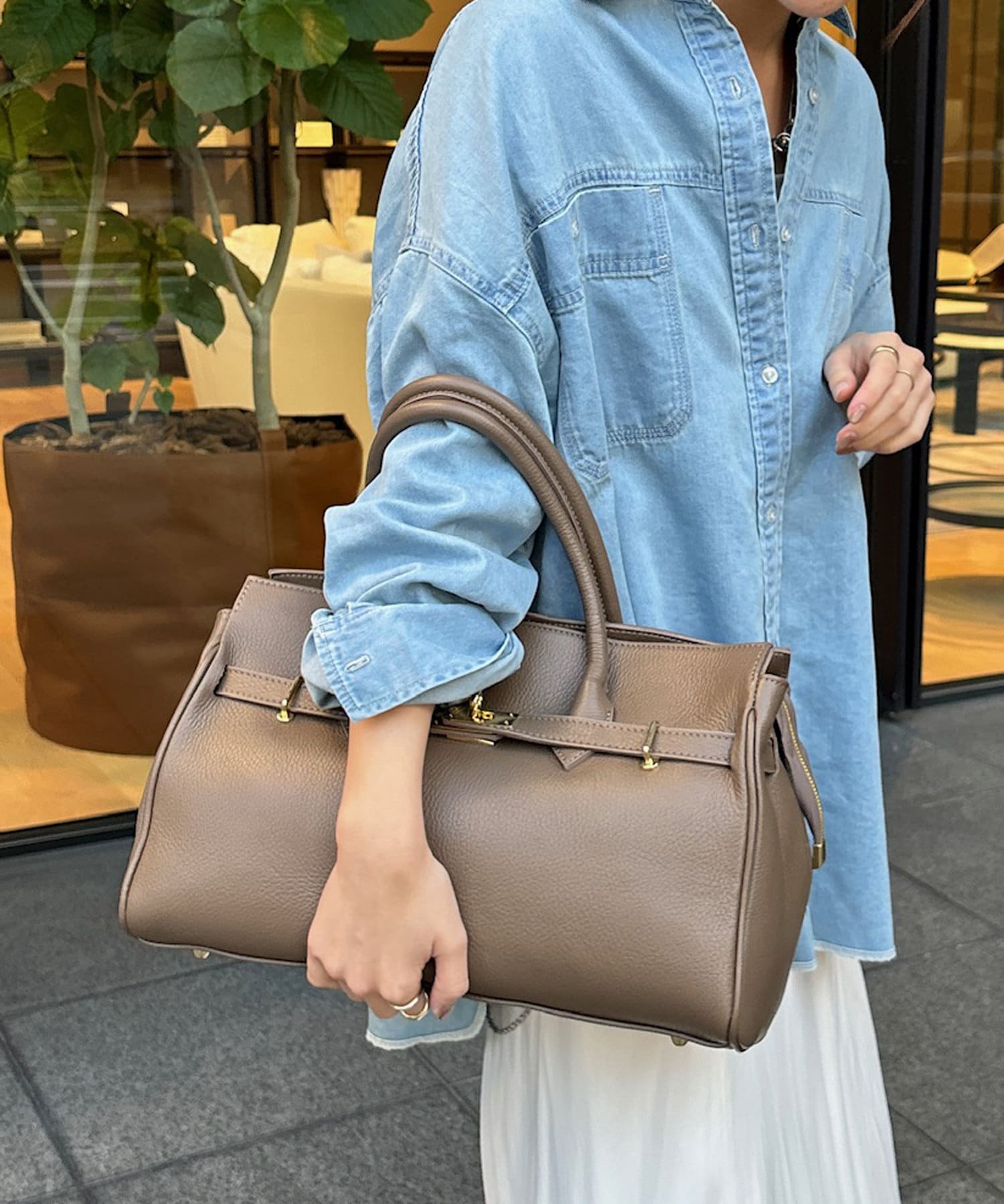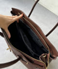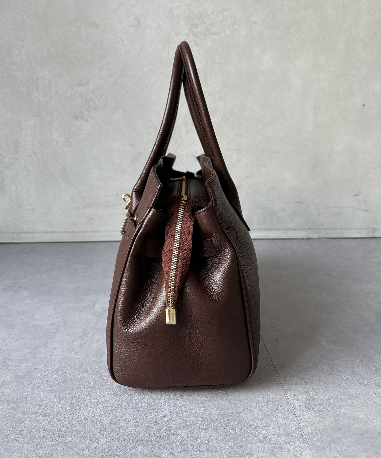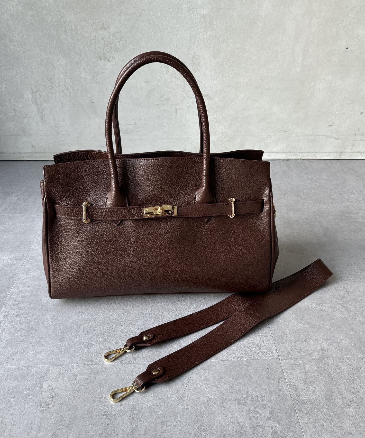 深みのあるカラーと、ゴールドの金具で高級感のあるトートバッグ。