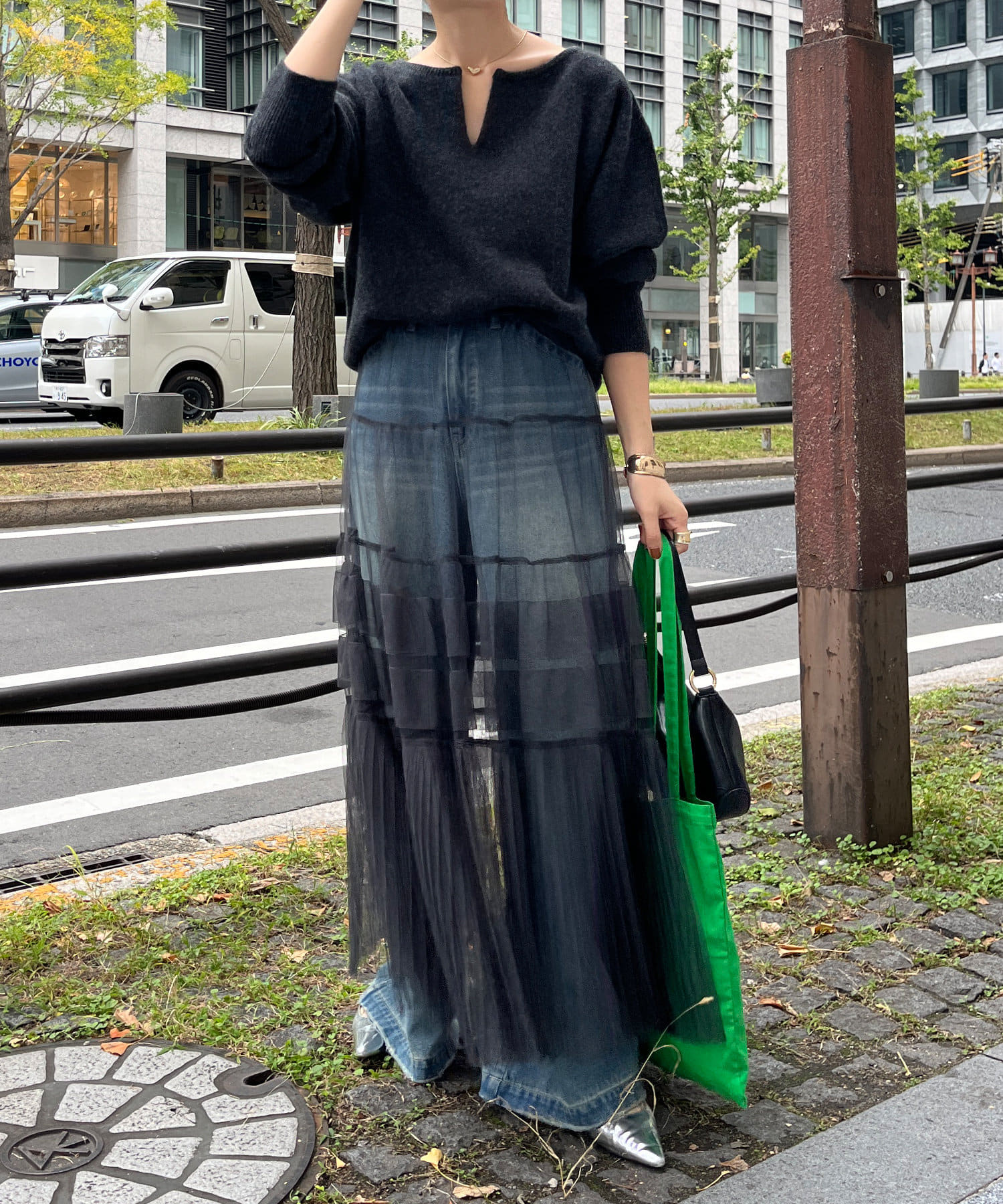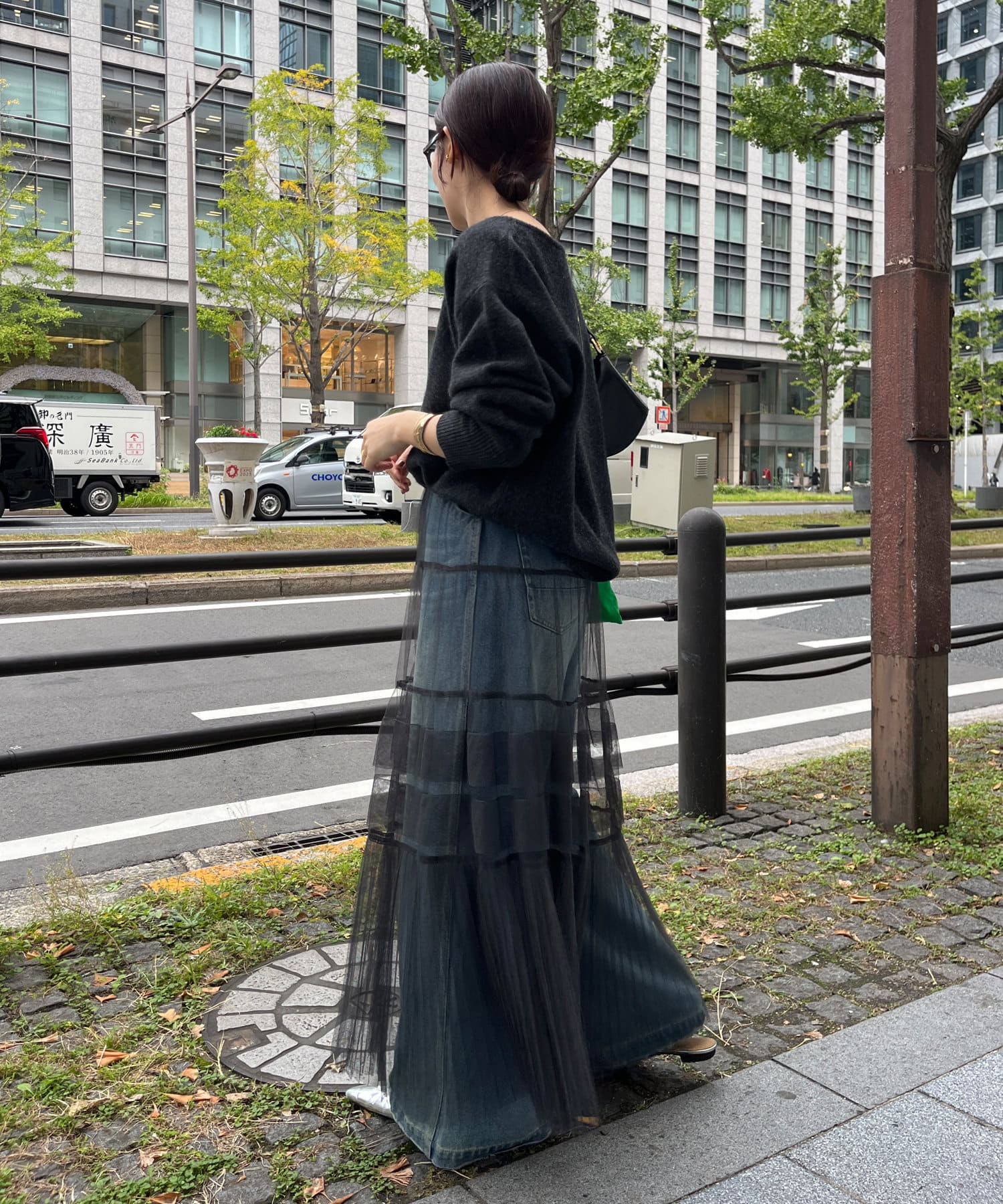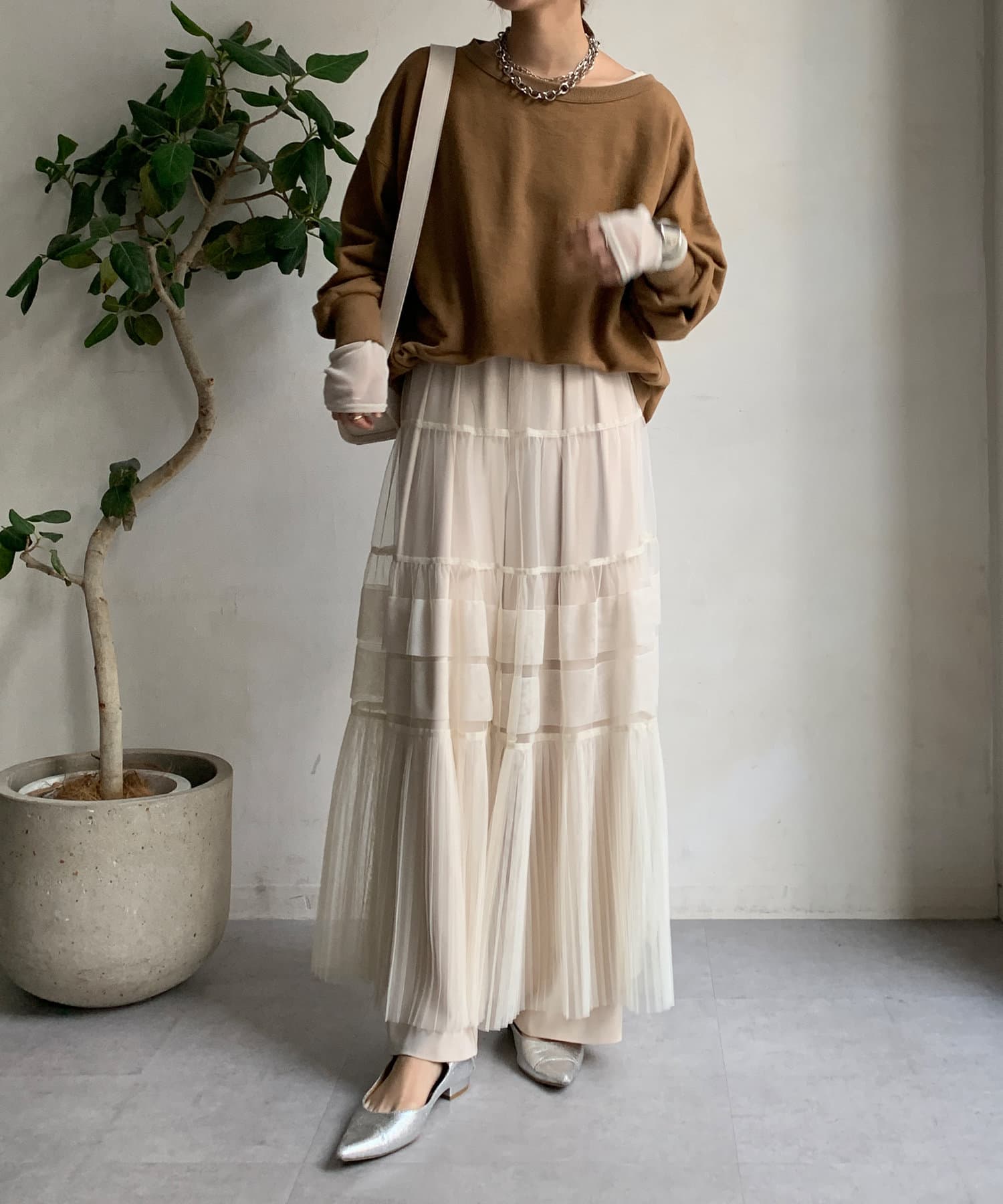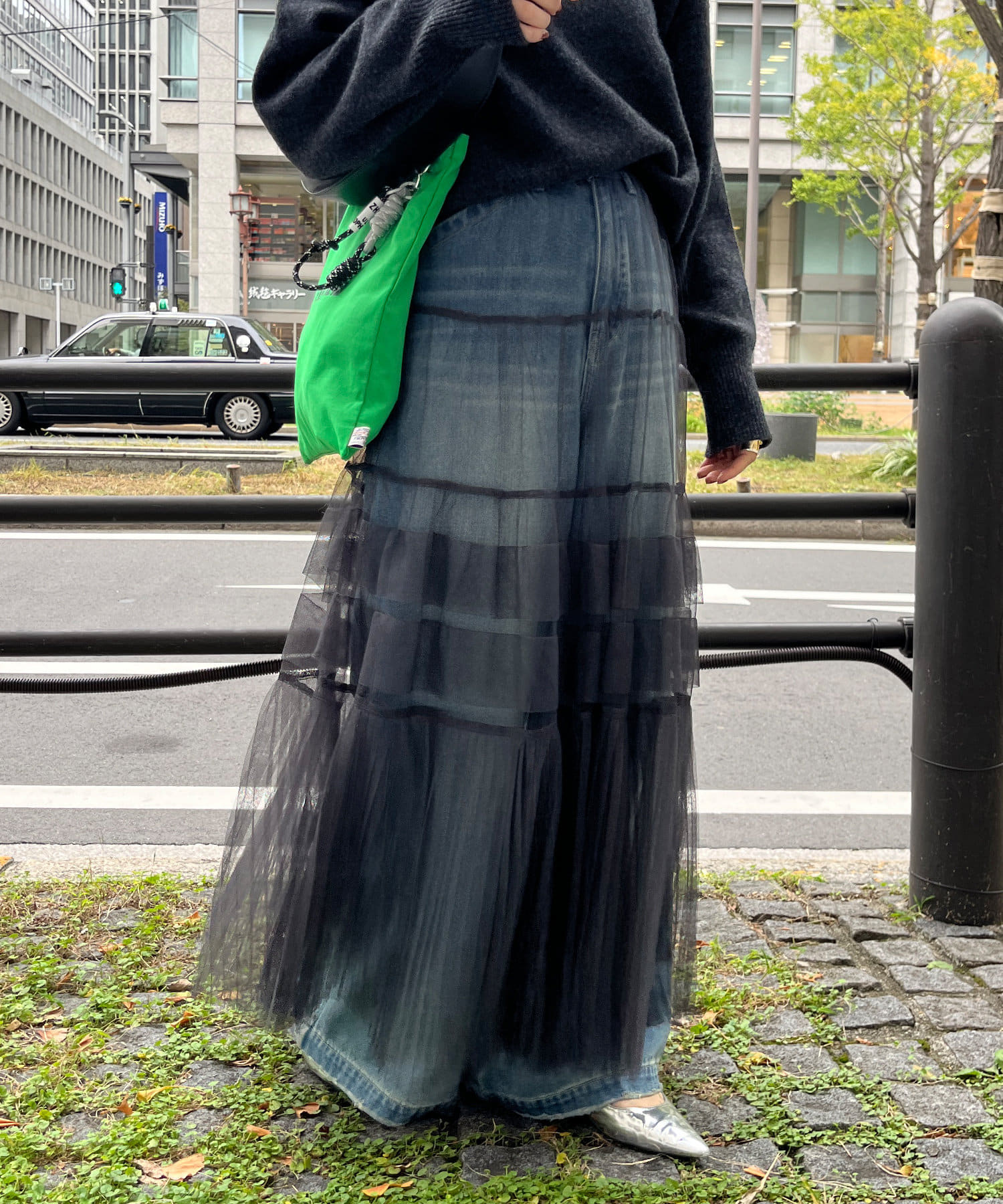 敢えて裏地を外して、今季トレンドのパンツとスカートのレイヤードスタイルも素敵です。