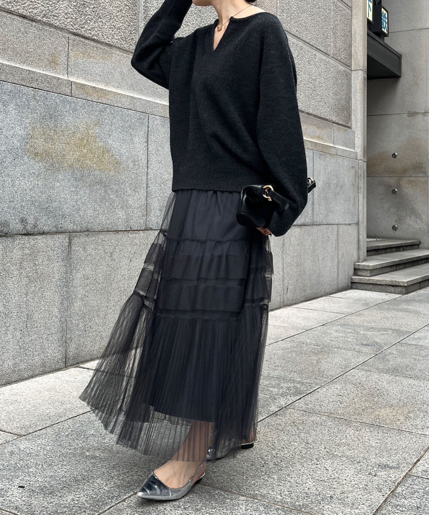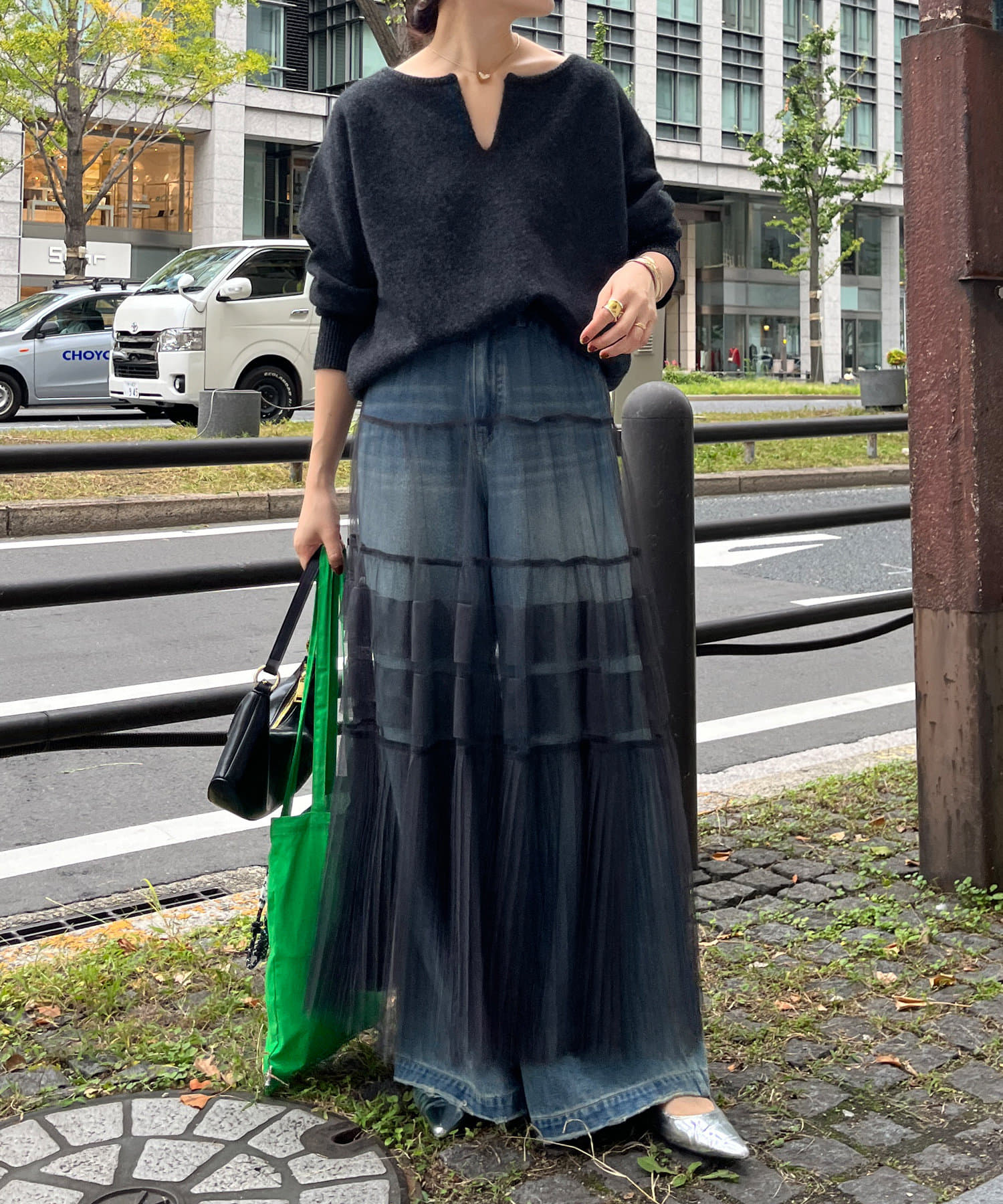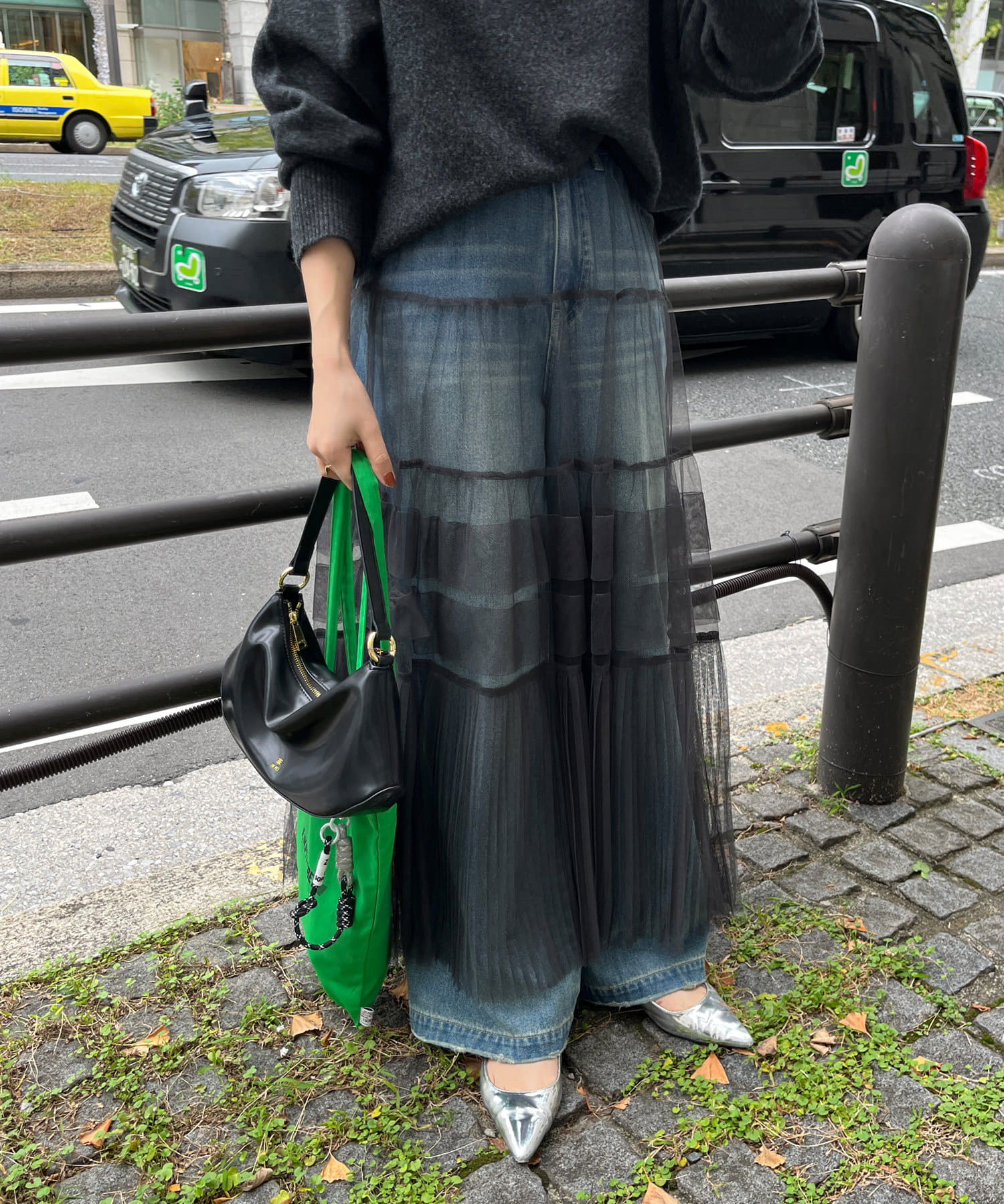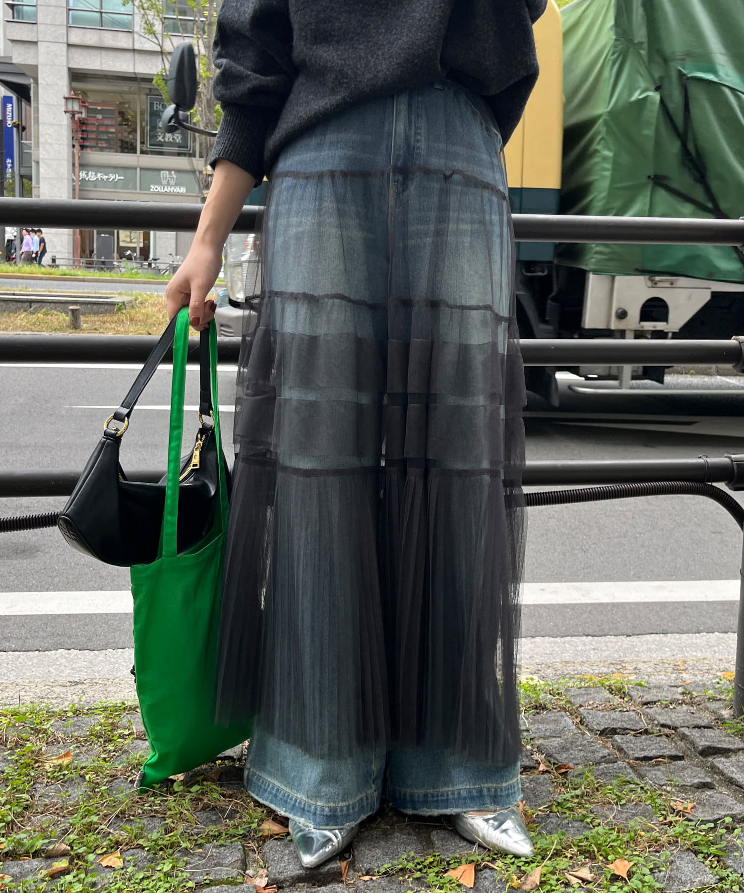 敢えて裏地を外して、今季トレンドのパンツとスカートのレイヤードスタイルも素敵です。