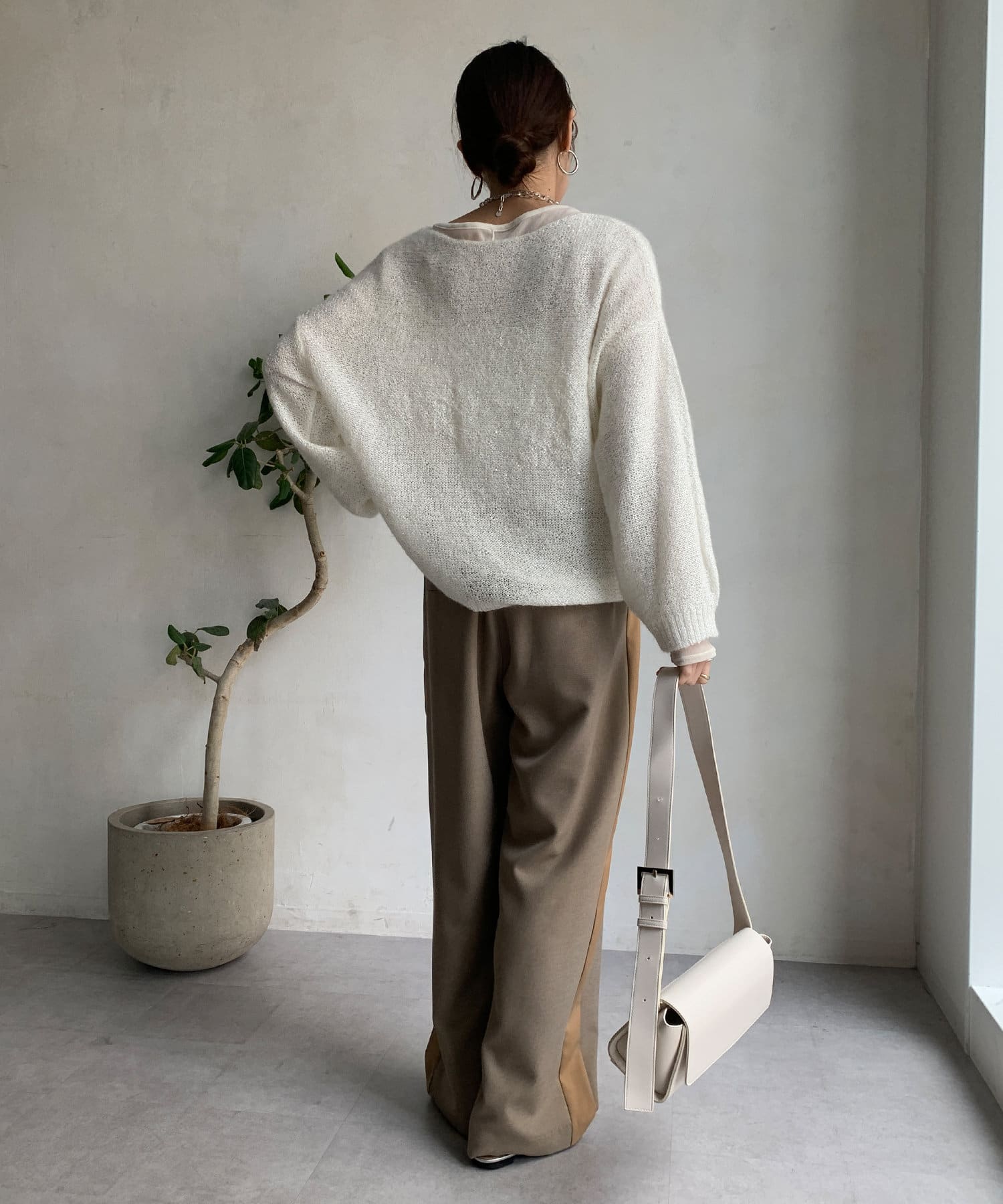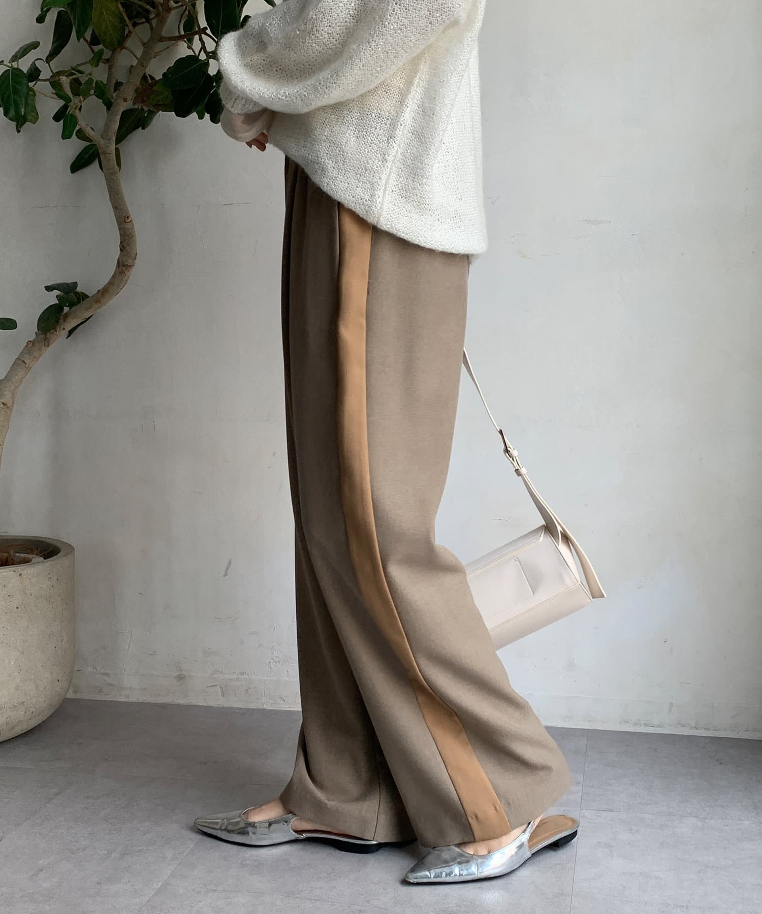 ラインパンツなどカジュアル見えしてしまいがちなアイテムを普段手に取ることがない方にもお勧めしたい1着です。