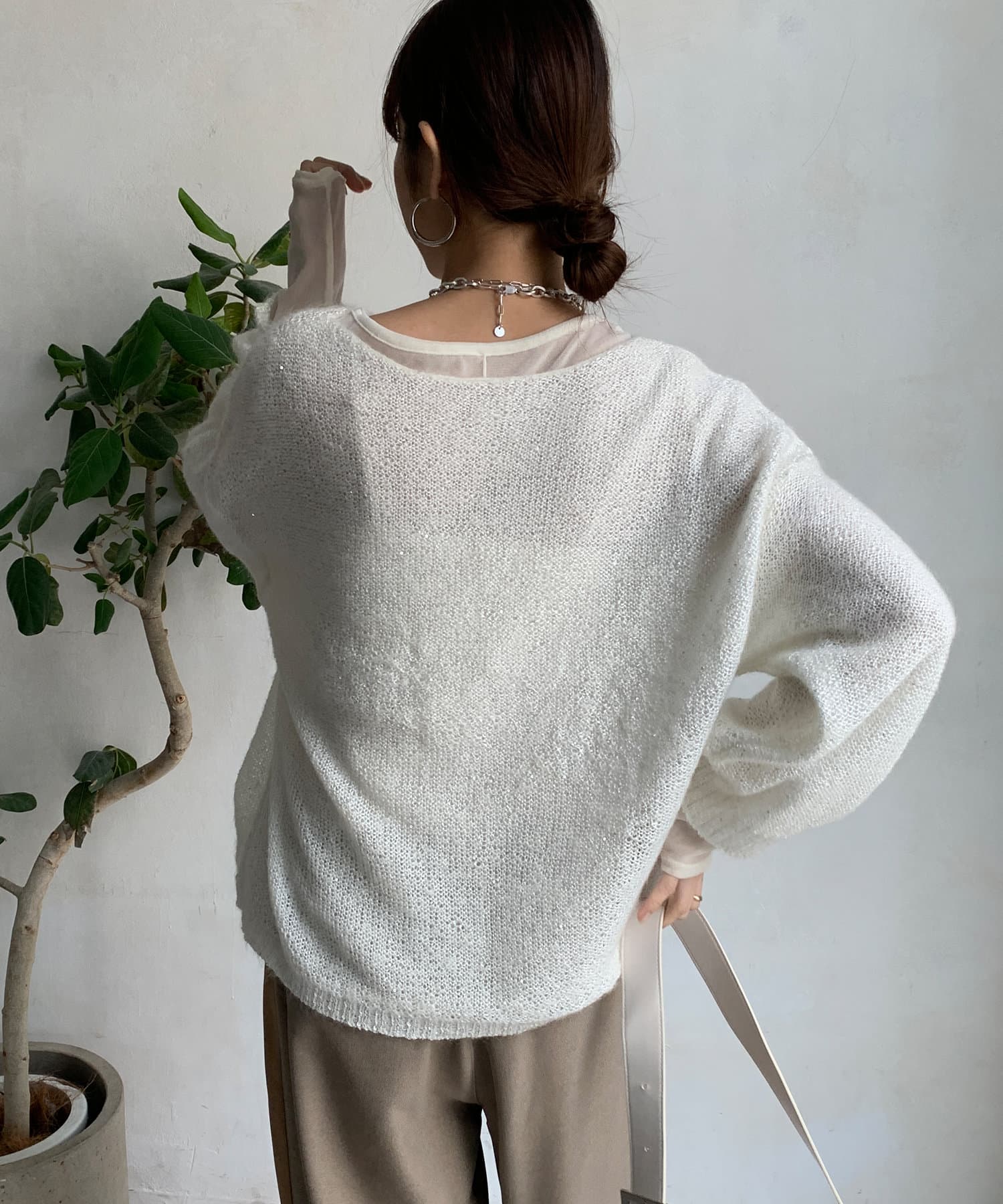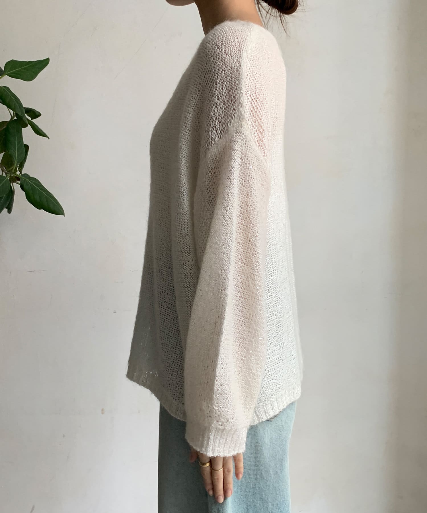 スパンコールを散りばめた、モヘヤプルオーバー。