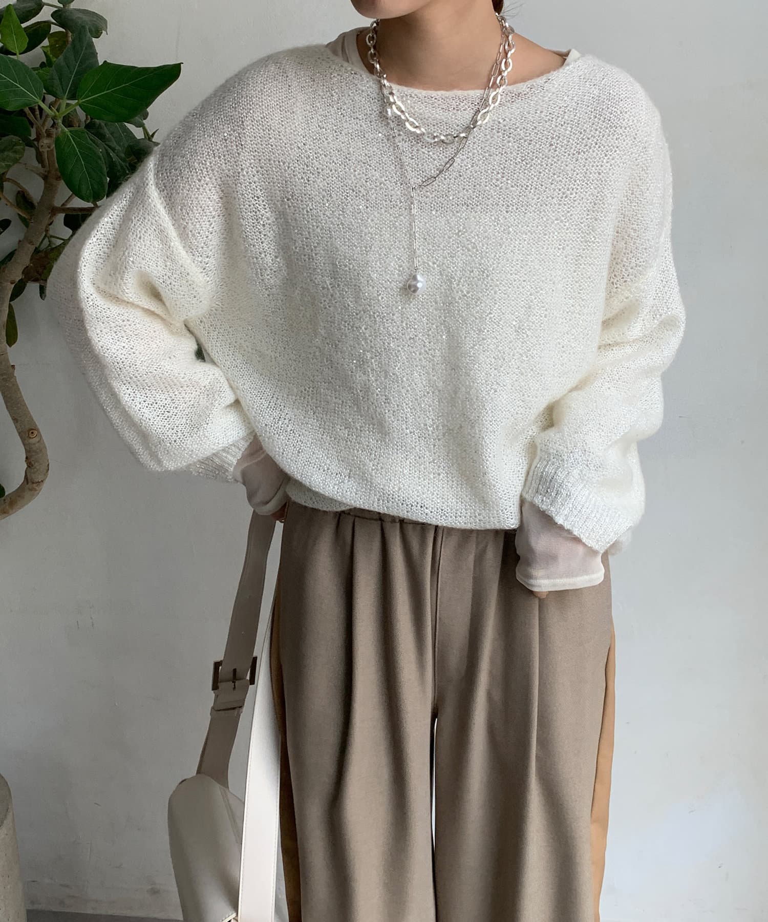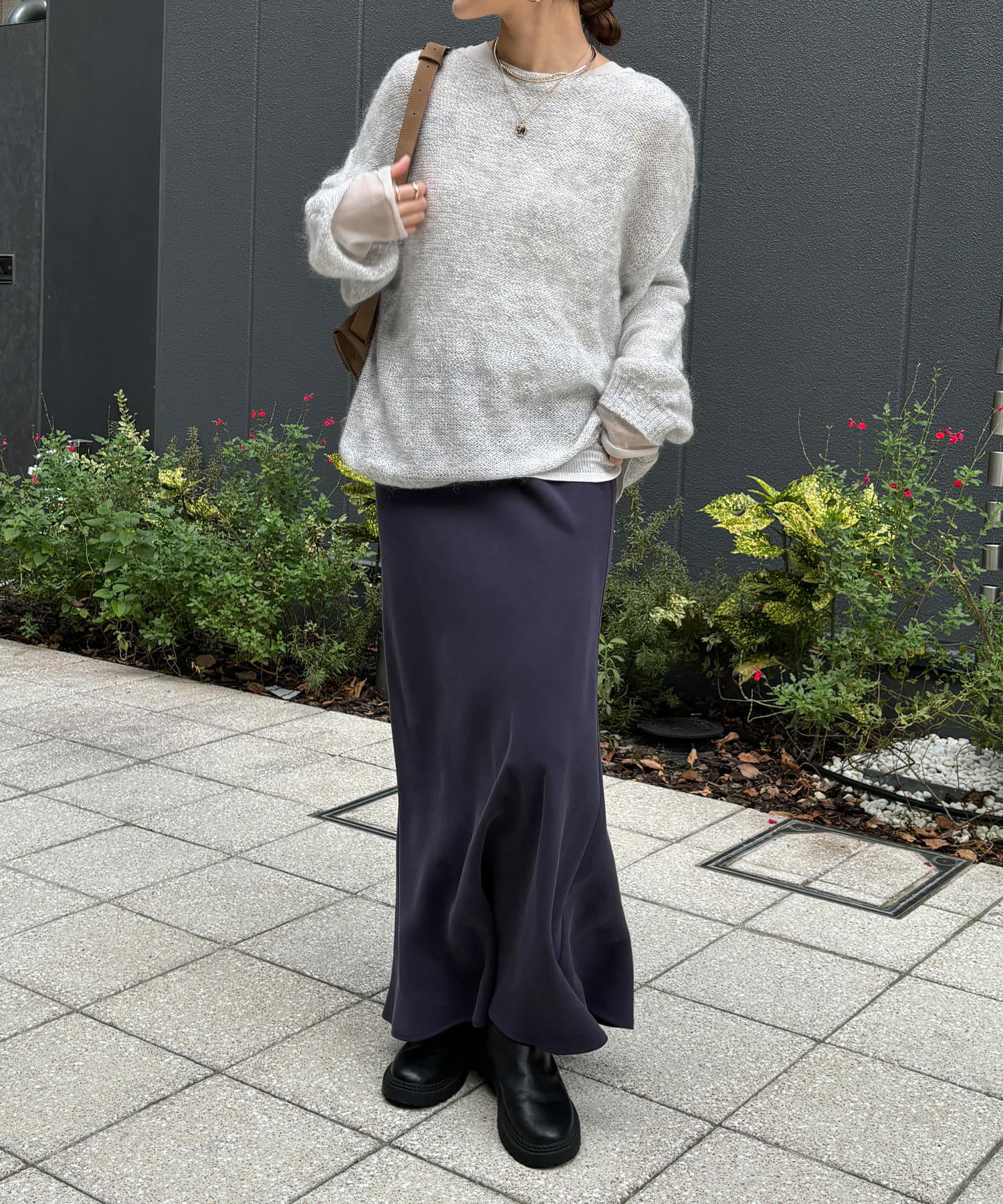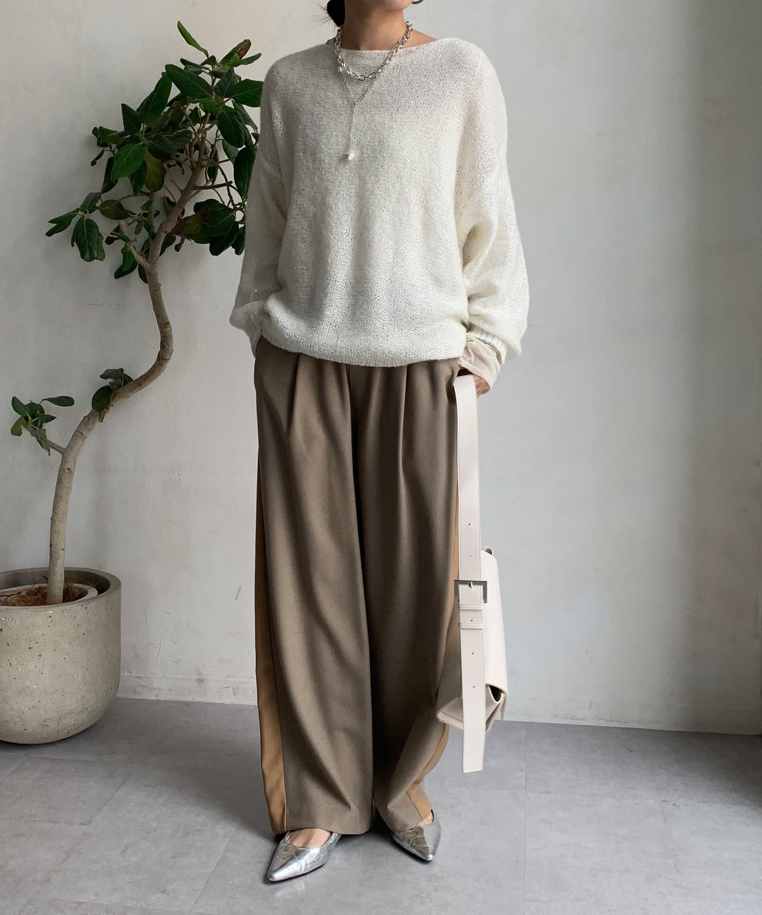 そして、上品に透ける素材感とゆるっとシルエットが抜け感のあるポイントになってくれます。