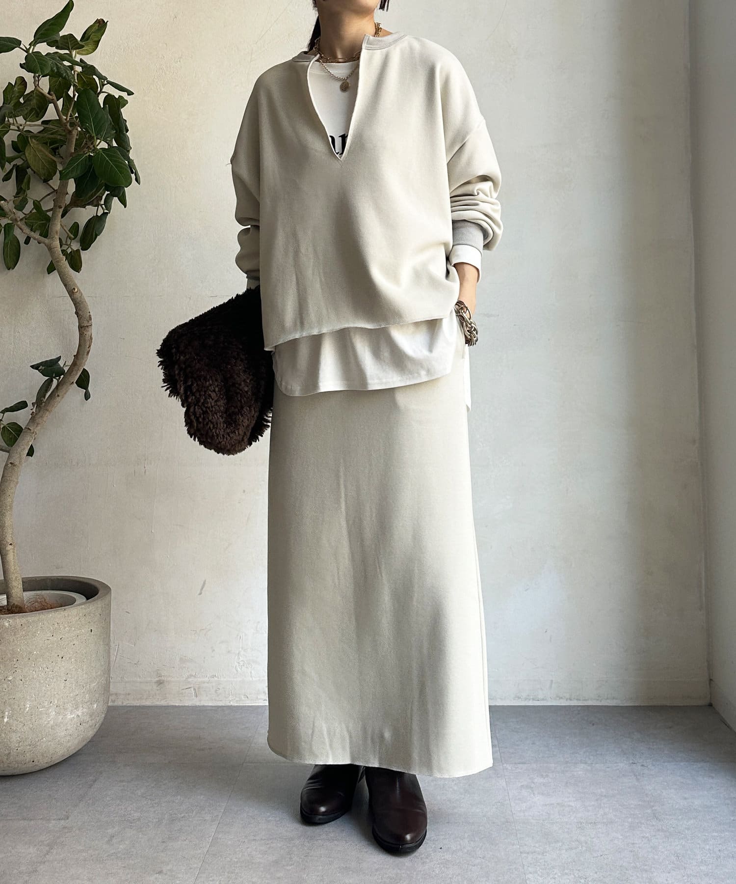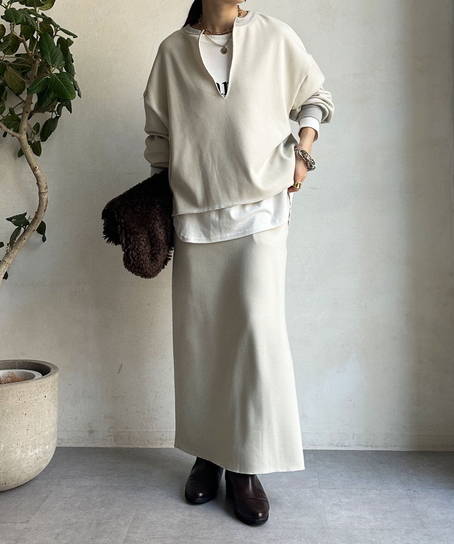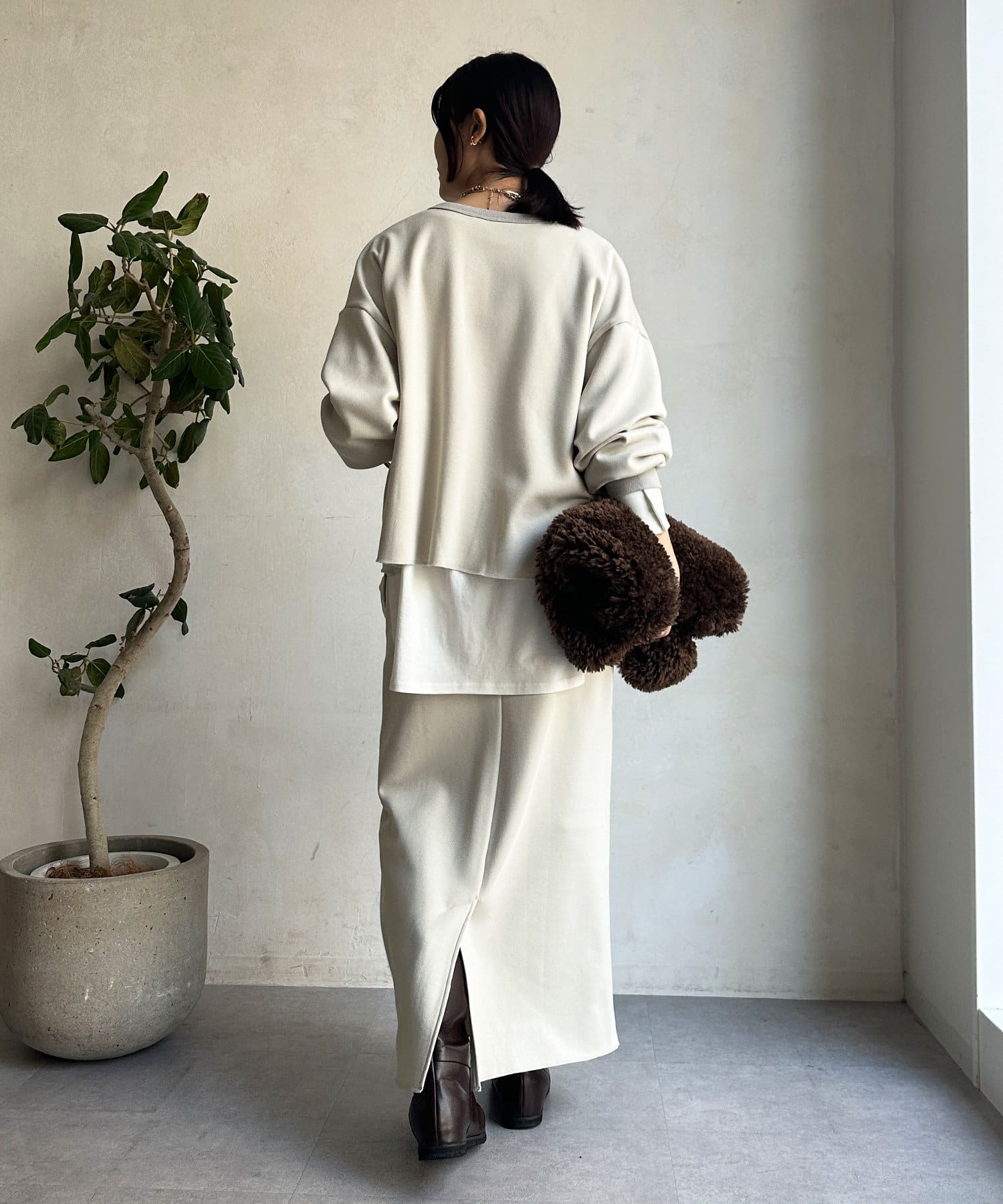 優しい肌当たりと、あたたかい着心地で着ると癖になる、そんな1着です。