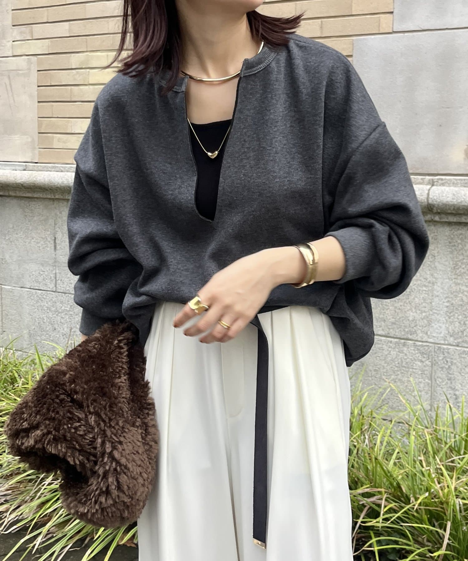 (リブ部分/チャコールグレー)綿 98% , ポリウレタン 2%原産国 日本 サイズ F カテゴリ トップス > スウェット/ポンチ タイプ レディース ギフト ラッピング 可 取り扱い - アイテムサイズ