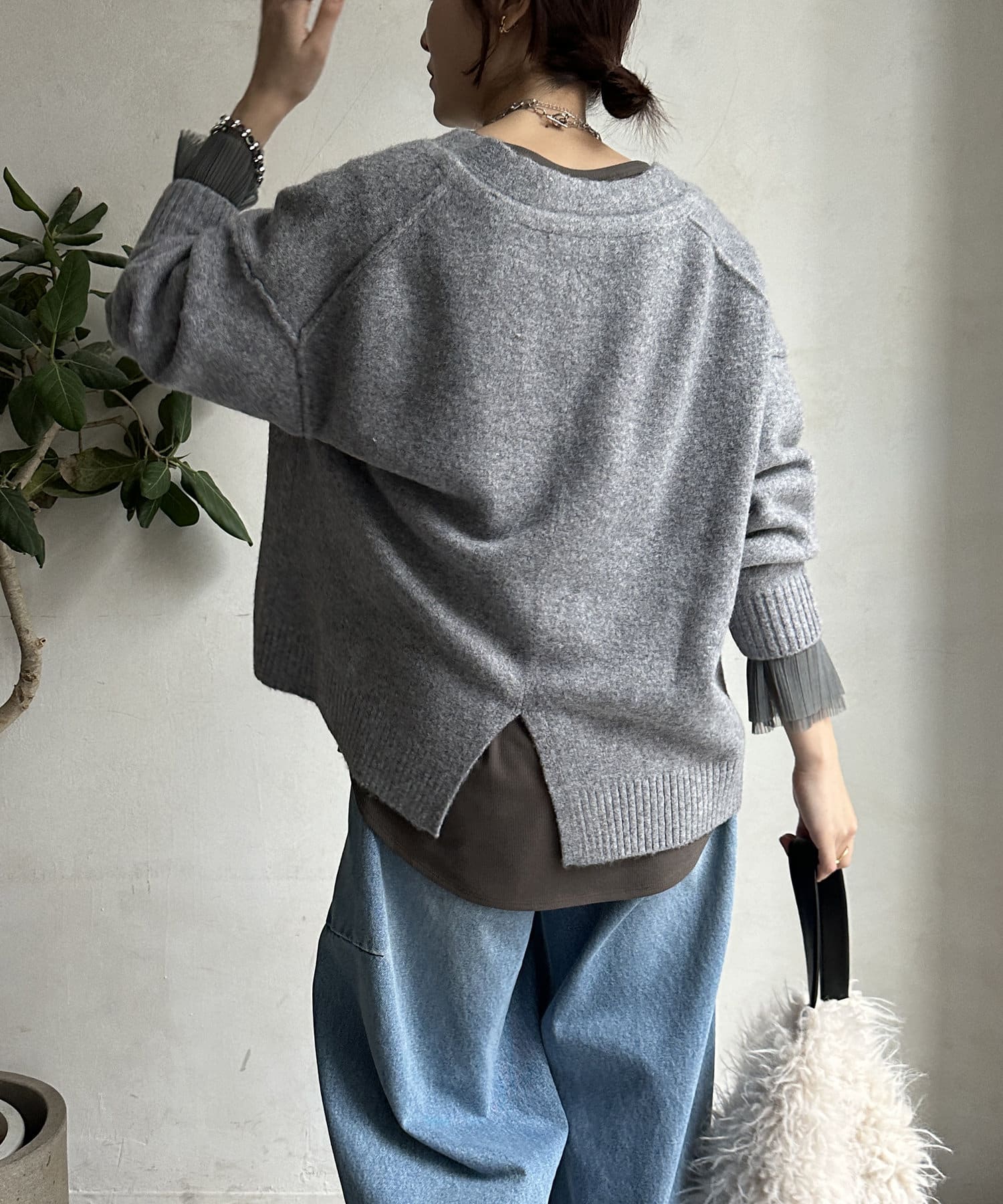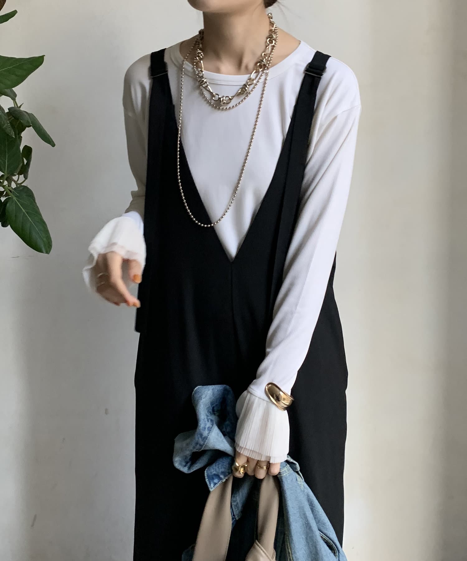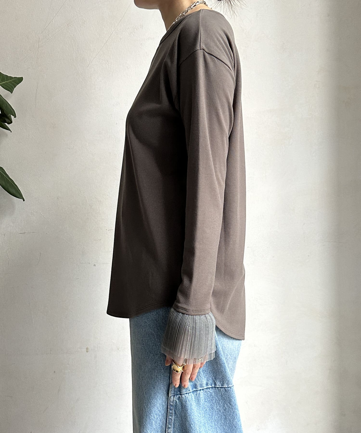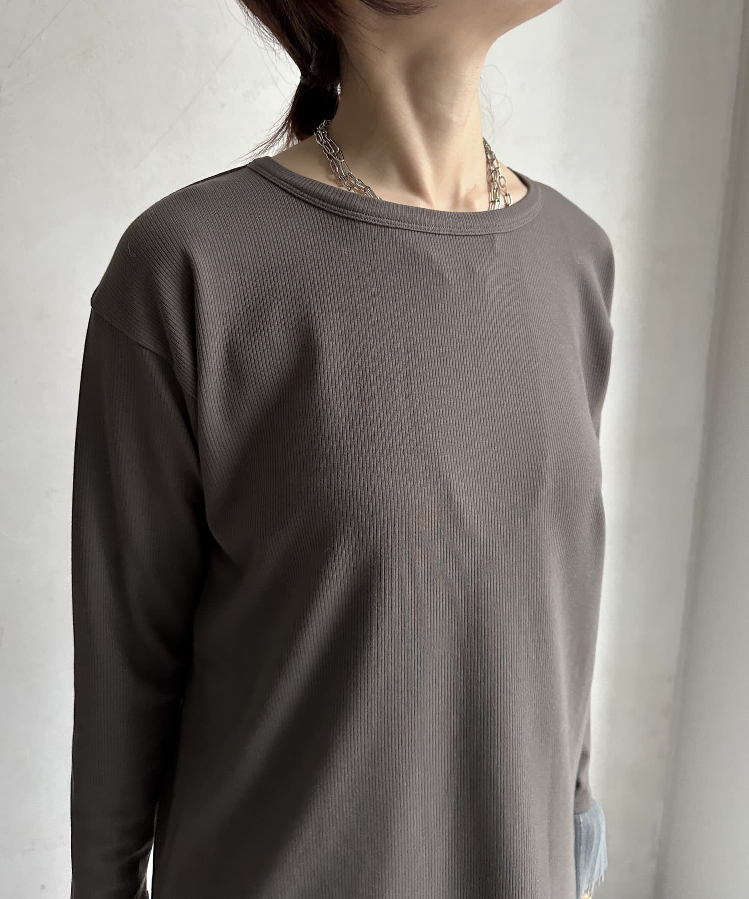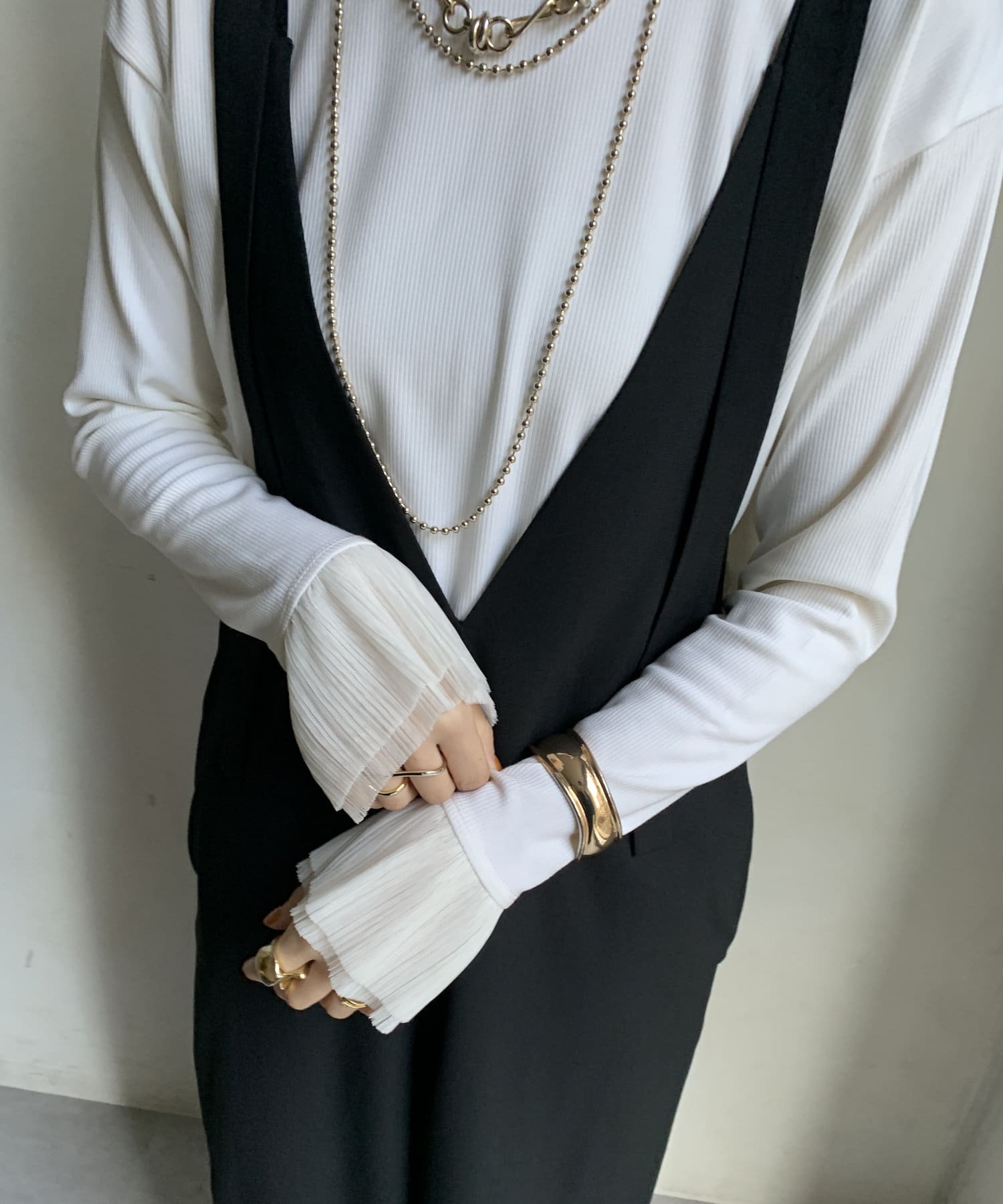 インナーとしてレイヤードをすると、袖口から見えるチュールが