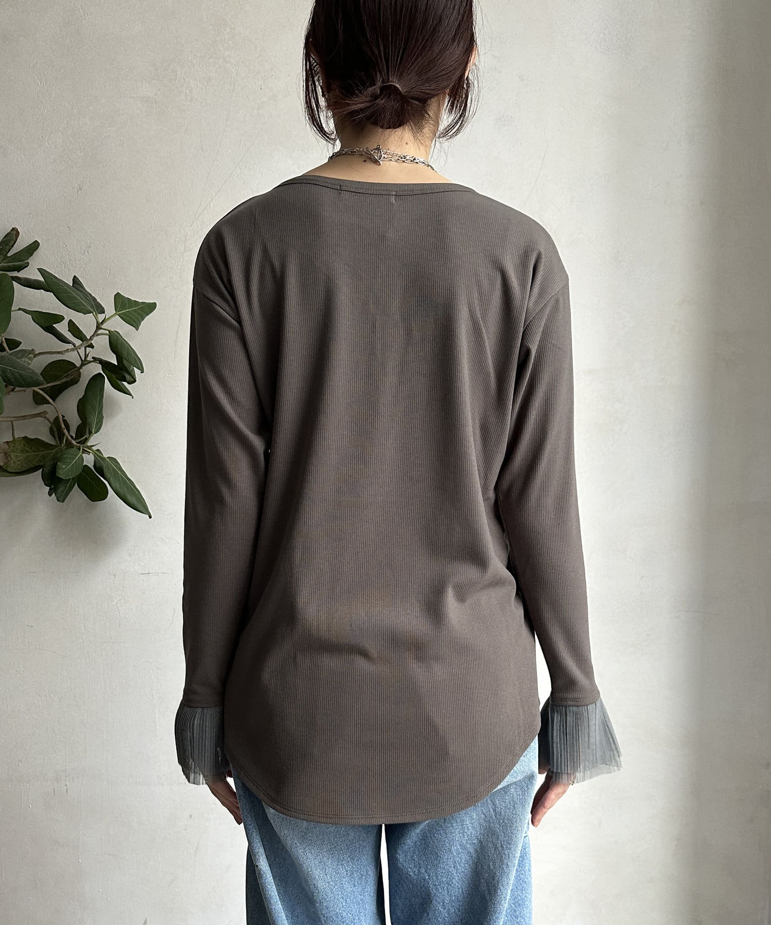 袖チュールがコーデにポイントを作り出してくれる1着!