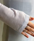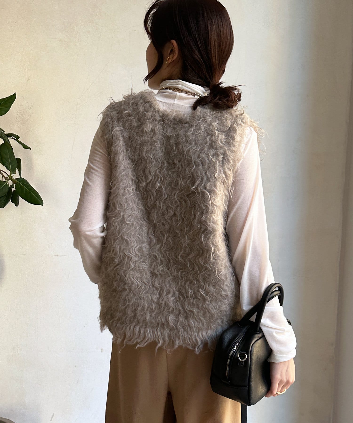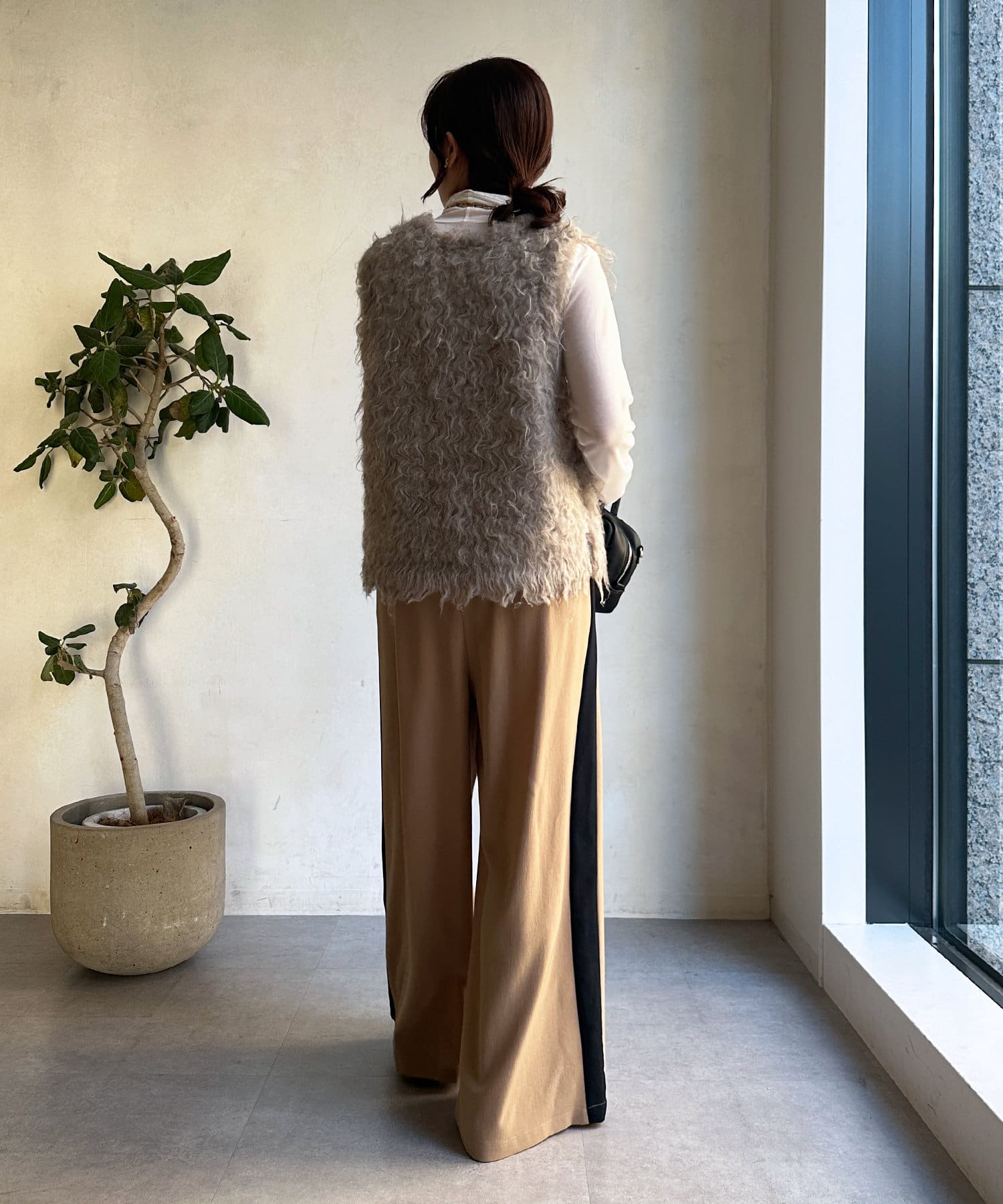ややシアーの素材ながらカシミヤのぬくもりがあり、暖かく着ていただけます。