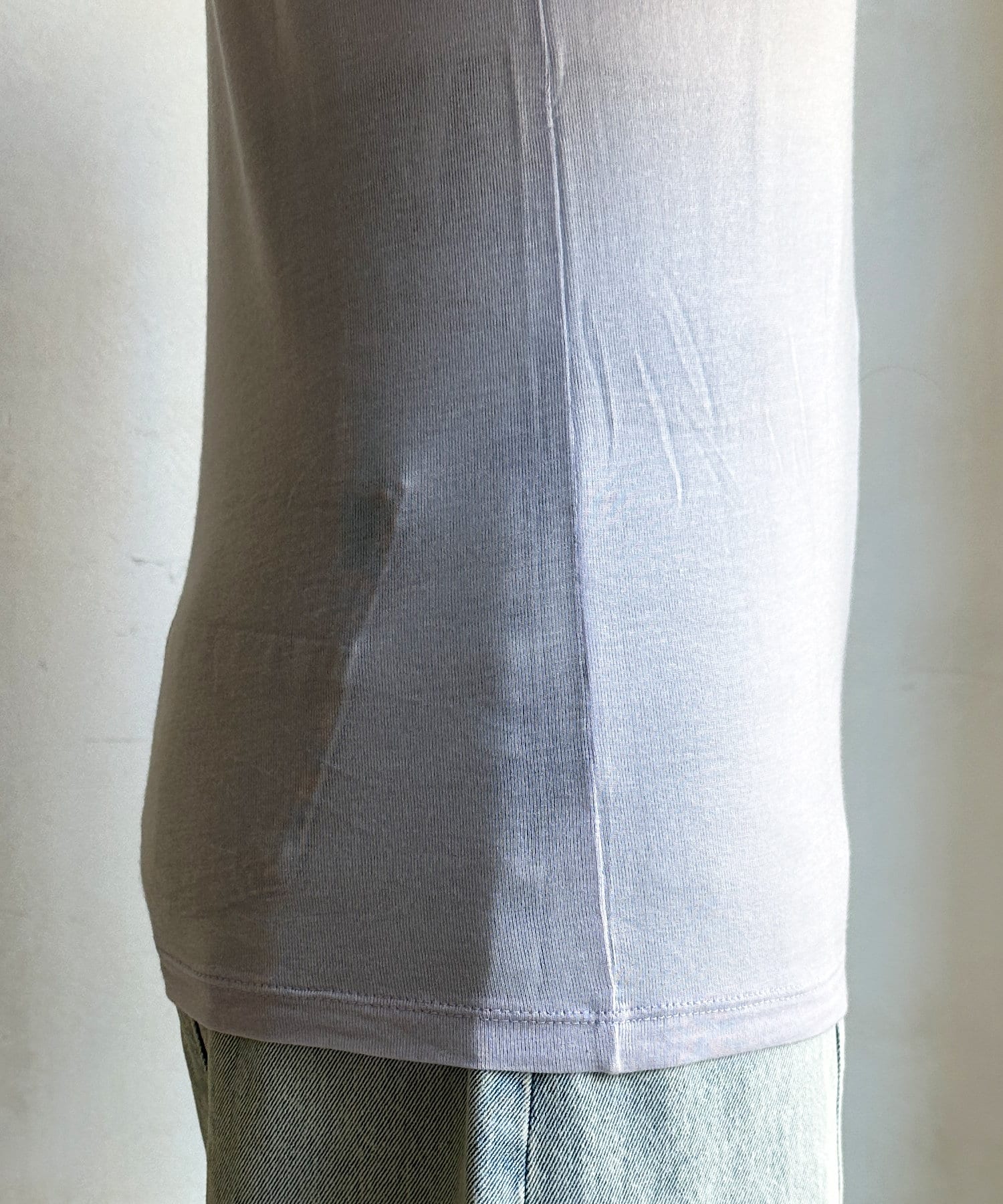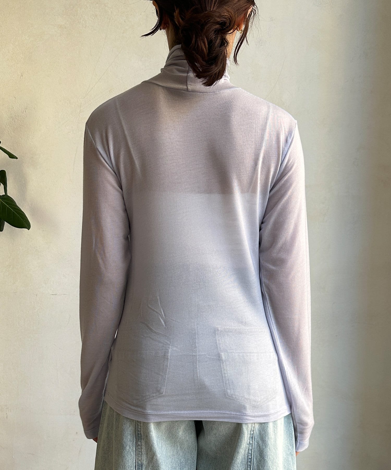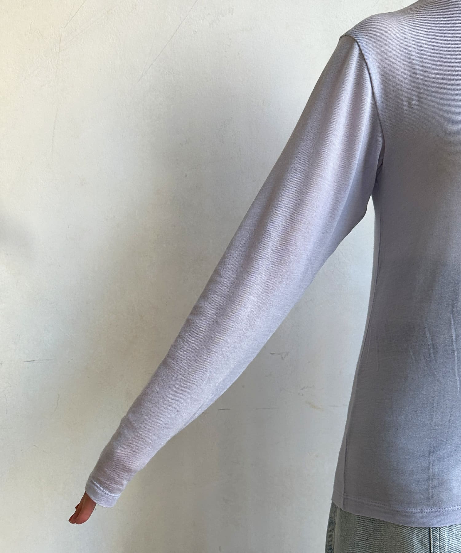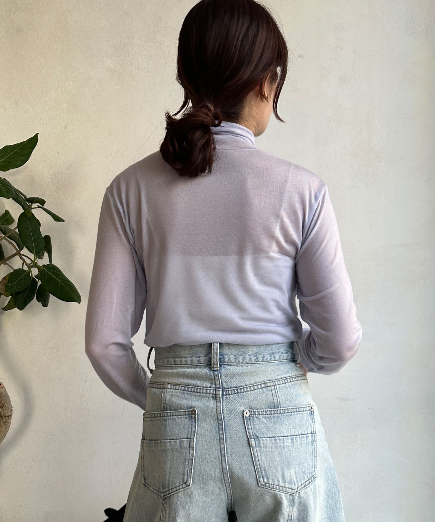 ピタッとしないサイズ感で、程よいゆとりがあり、肌触りも相まって大人に着られるシアーインナーですよ。