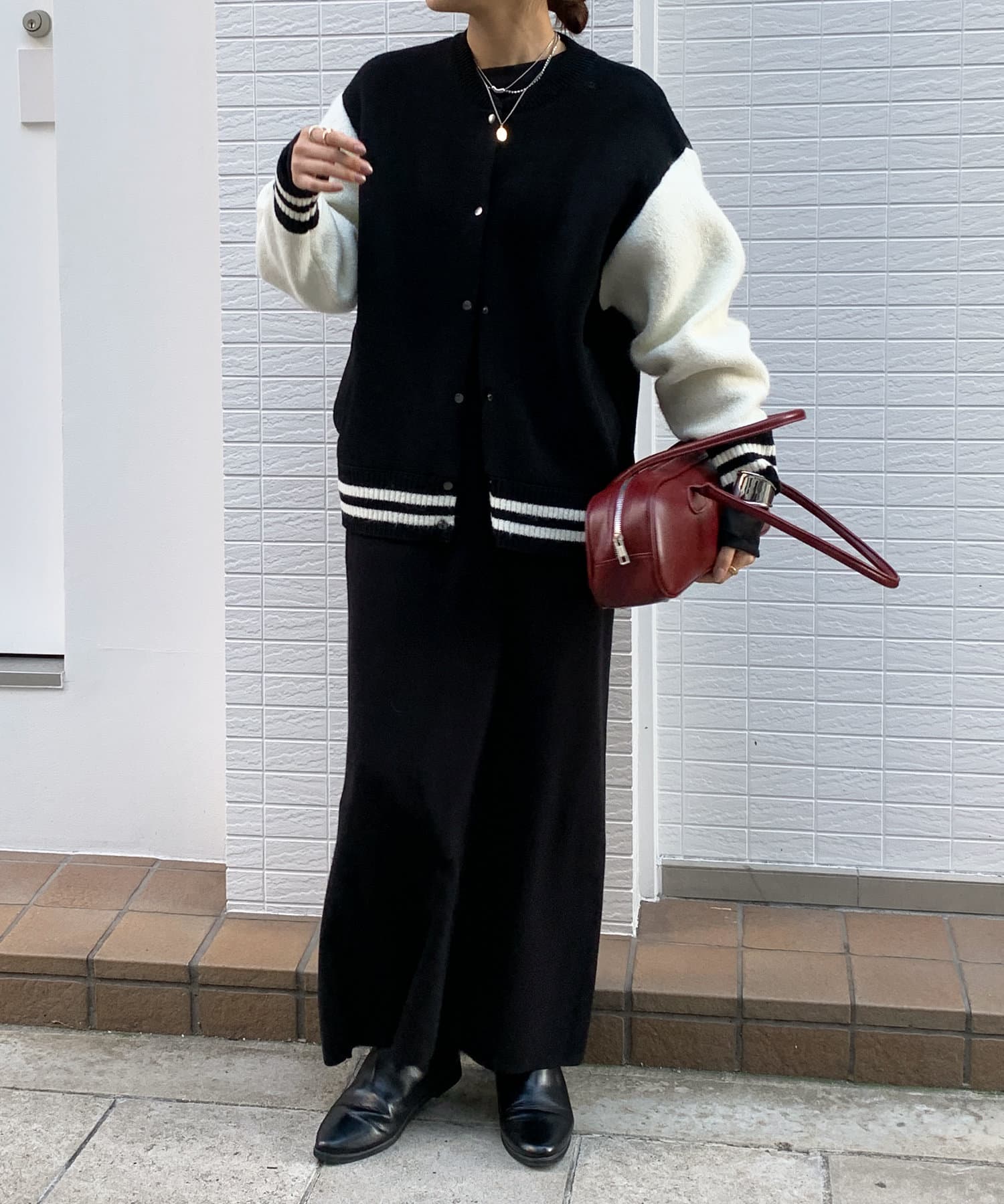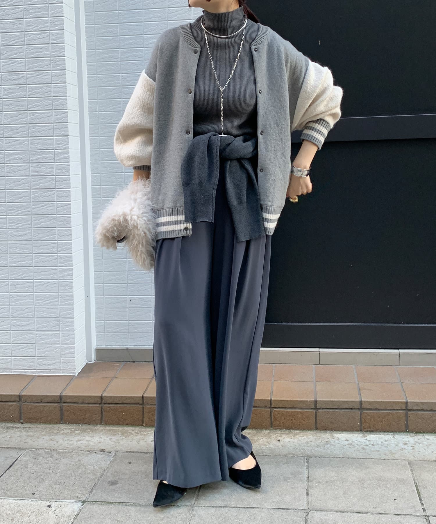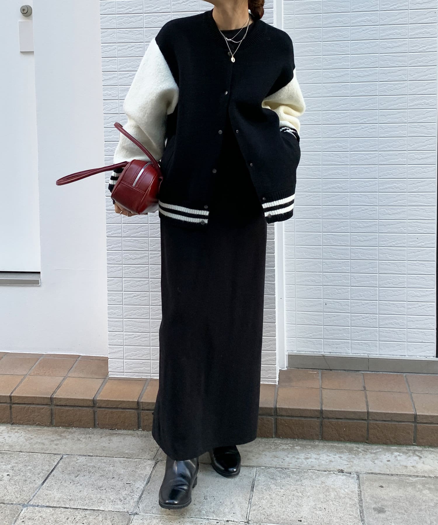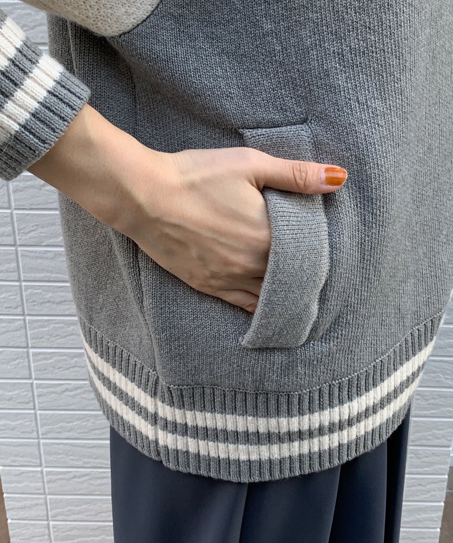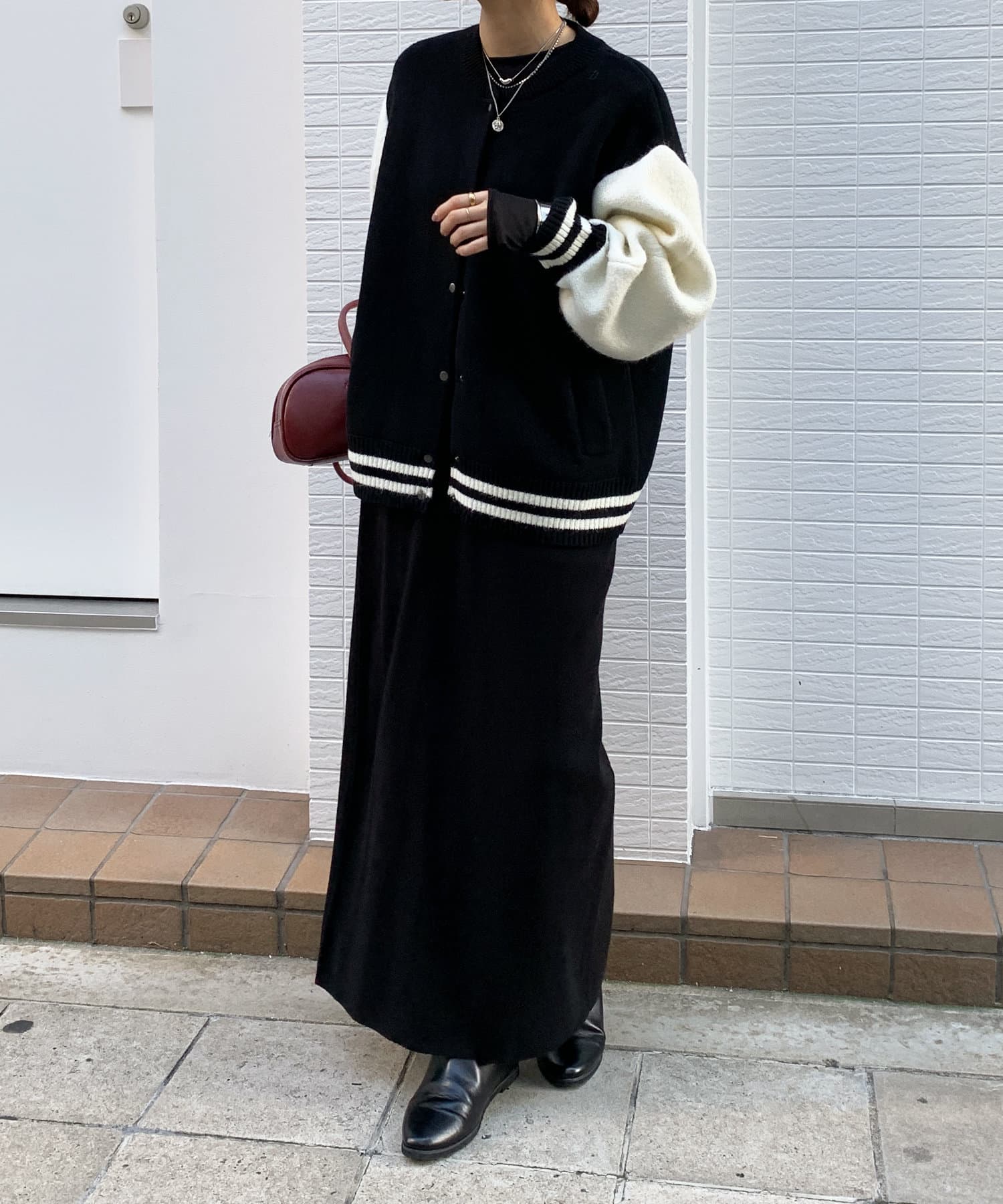 メンズライクなアイテムをニット素材で仕上げることで、スタジャンほどカジュアルすぎず、ニットほどラフ過ぎない絶妙なバランスが完成。コーディネートを大人カジュアルに仕上げてくれます。