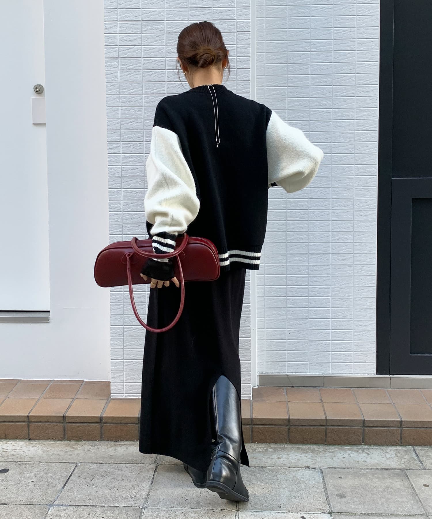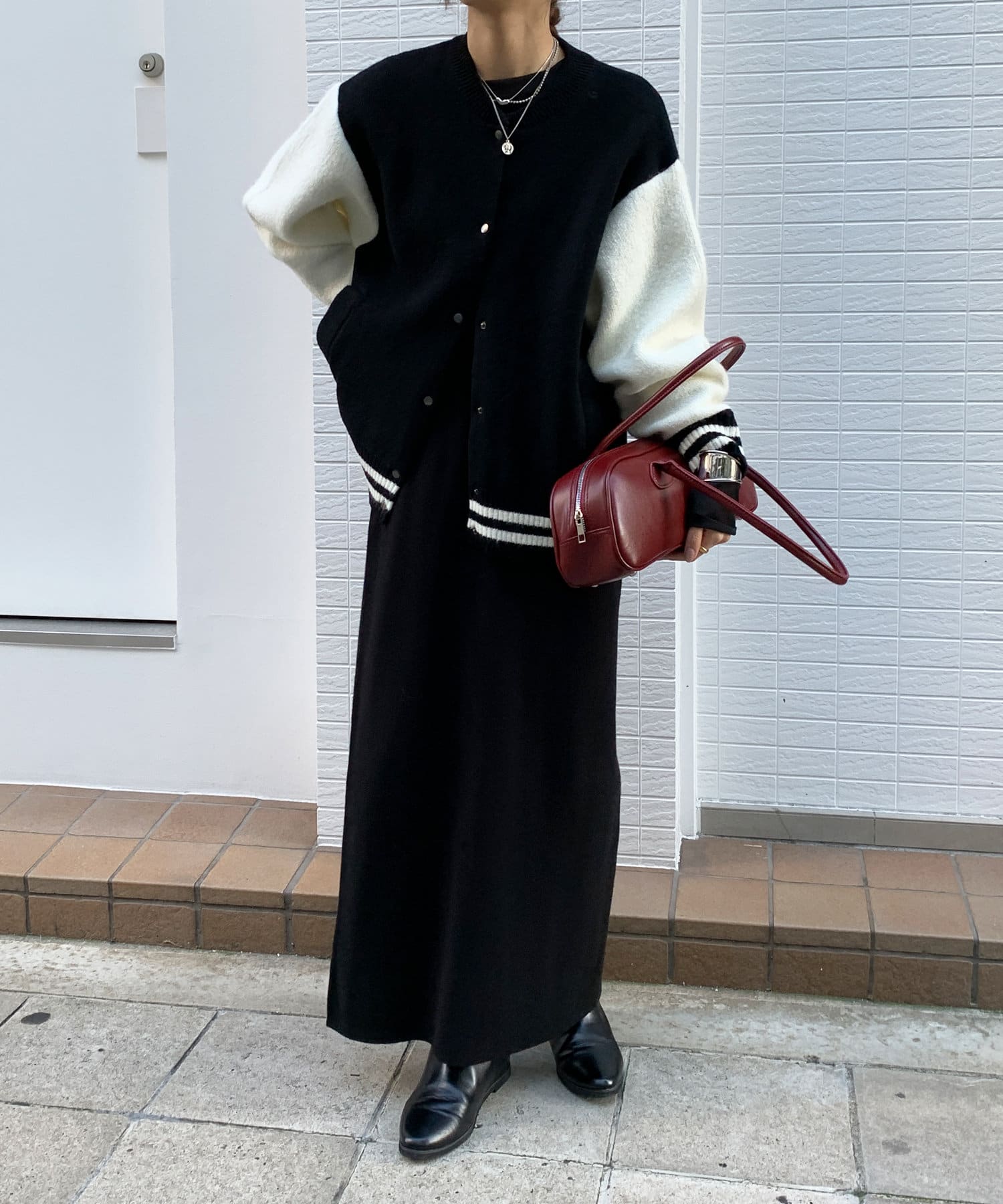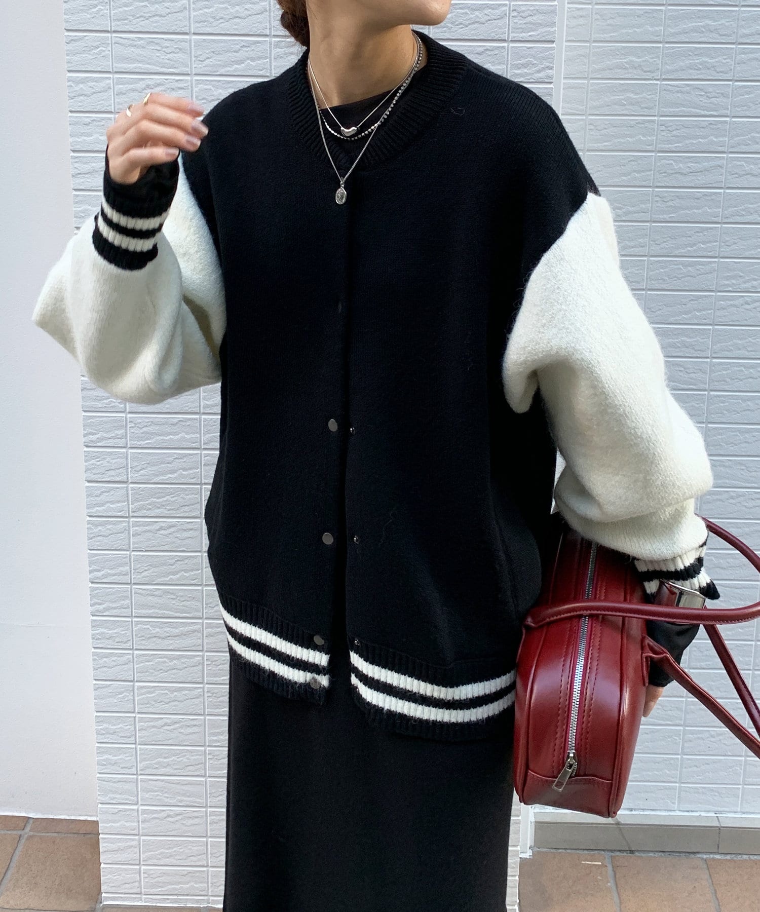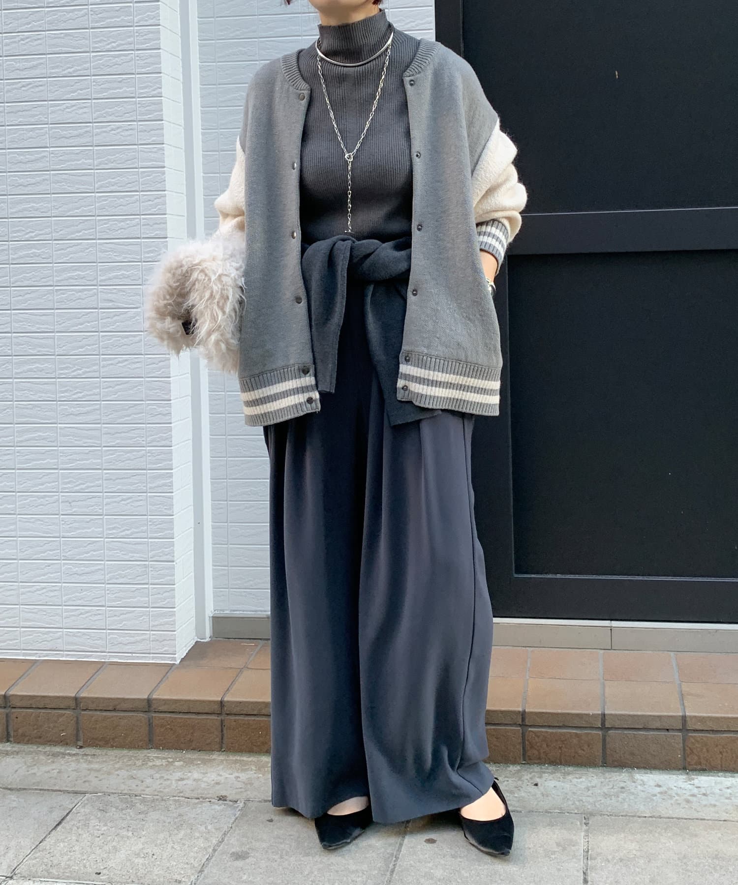 メンズライクなアイテムをニット素材で仕上げることで、スタジャンほどカジュアルすぎず、ニットほどラフ過ぎない絶妙なバランスが完成。コーディネートを大人カジュアルに仕上げてくれます。