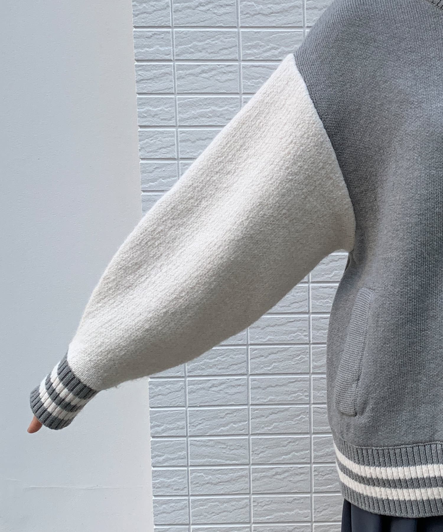 ハイゲージで編立たニット素材のスタジャン。